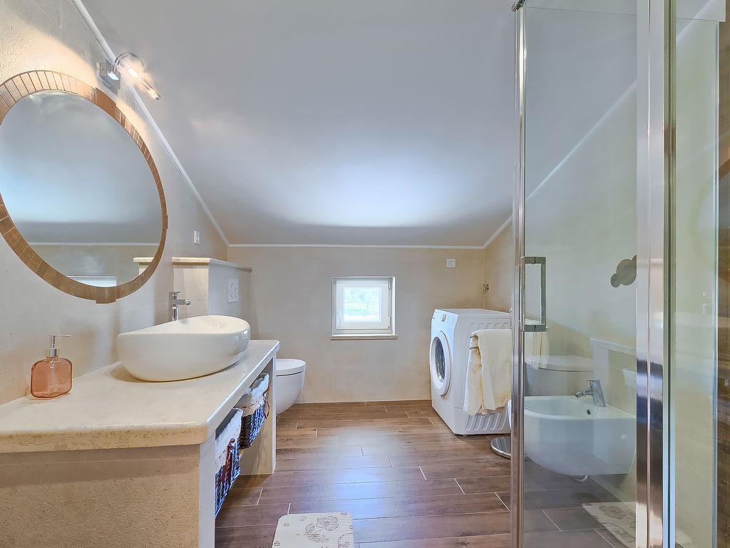 Zweifamilienhaus "Majda". Im Weiler Barboj, 5 km vom Zentrum von Umag, ruhige, sonnige Lage, 1.5 km vom Meer, 1.5 km vom Strand, in einer Sackgasse. Zur Mitbenutzung: Grundstück 1'000 m2 (eingezäunt), schöner Garten mit Rasen. Zur Alleinbenutzung: Schwimmbad eckig (8 x 4 m, 140 cm tief, 27.04.-28.09.) mit Innentreppe. Aussendusche, Tischtennis, Terrasse (40 m2), Gartenmöbel, Grill. Im Hause: Internetzugang. Parkplatz beim Haus auf dem Grundstück. Einkaufsgeschäft 1 km, Supermarkt 5 km, Restaurant 1 km, Kieselstrand 1.5 km, Felsstrand 1.5 km, Strandbad 1.5 km. Golfplatz 1.5 km, Tennis 1.5 km, Wanderwege ab Haus 150 m, Radweg 200 m. Bitte beachten: Der Besitzer wohnt im selben Haus. Keine Vermietung an Jugendgruppen.