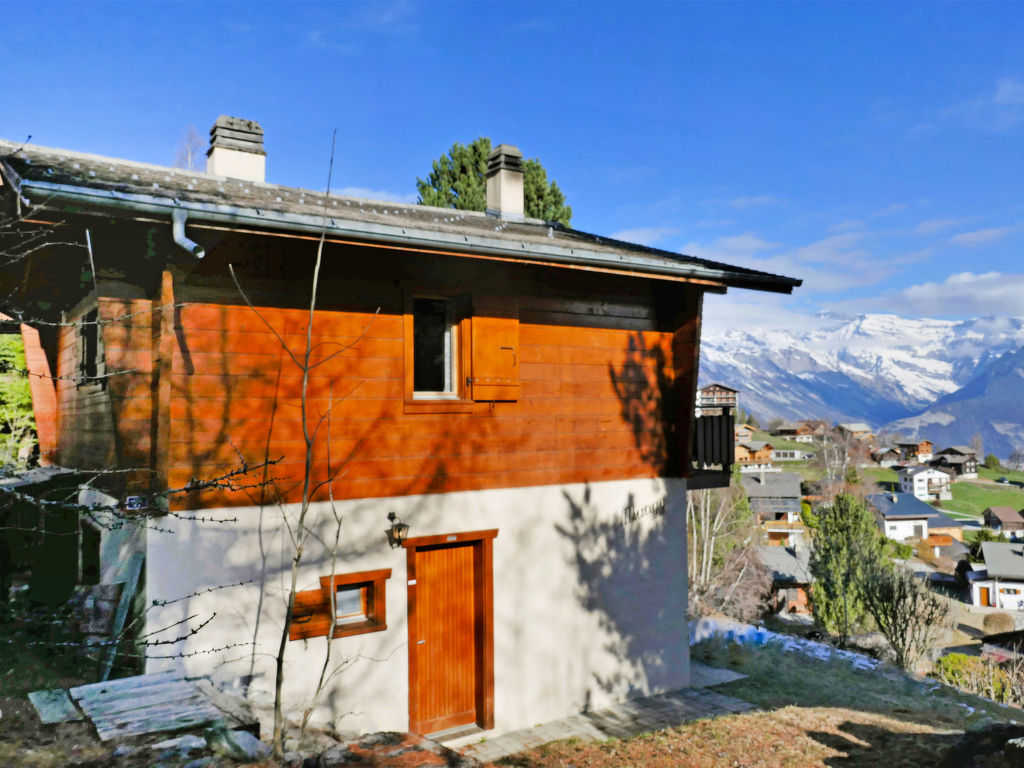 "Mungg", 4-Zimmer-Chalet 84 m2 auf 2 Stockwerken. Einfach eingerichtet: Wohn-/Esszimmer mit offenem Kamin, sep. WC und Sat-TV. Küche (4 Kochplatten, Backofen, Geschirrspüler, Fondue Set (Käse)). Obergeschoss: 2 Zimmer, jedes Zimmer mit 2 Betten (90 cm, Länge 190 cm). 1 Zimmer mit 2 x 2 Etagenbetten (90 cm, Länge 180 cm). Bad/WC. Balkon, Nordlage, Terrasse 20 m2, Nordlage und Westlage, Rasen 45 m2. Terrassenmöbel, Gartengrill. Sicht auf das Tal. Zur Verfügung: Waschmaschine, Wäschetrockner, Kinderhochstuhl, Babybett. Parkplatz (2 Autos) in 200 m. Bitte beachten: Nichtraucher-Unterkunft. Maximal 1 Haustier/Hund erlaubt. TV nur DE.