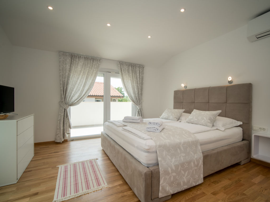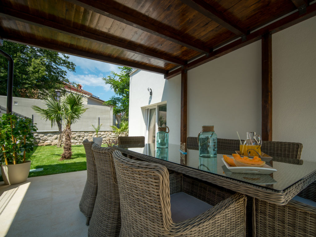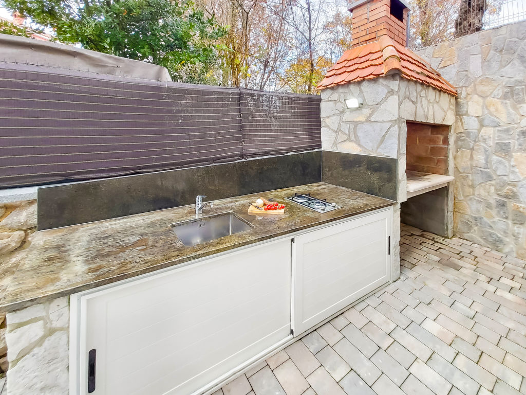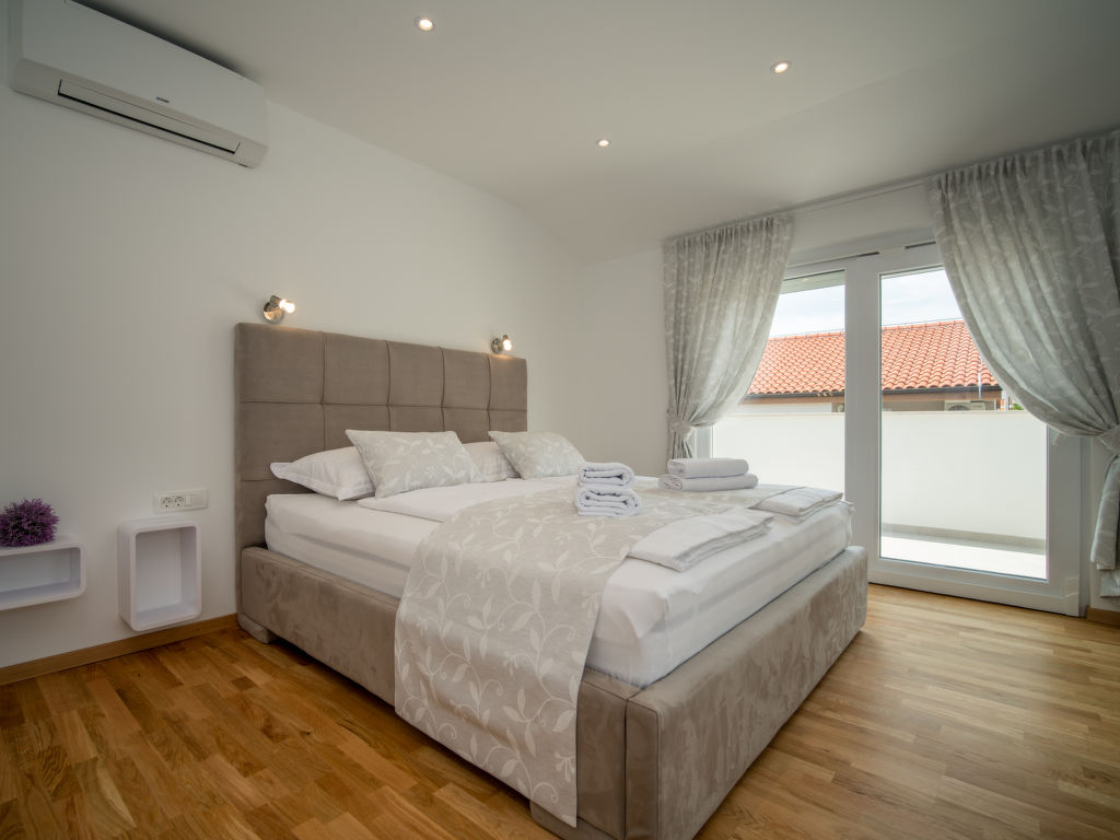 Gornja Hlapa 2 km von Dobrinj: Einfamilienhaus "Anđela", auf 3 Stockwerken, Baujahr 2018. 3 km vom Zentrum von Solin, 4 km vom Zentrum von Klimno, 12.5 km vom Zentrum von Malinska, ruhige, sonnige Lage, 2.5 km vom Meer, 2.5 km vom Strand, in einer Sackgasse. Zur Alleinbenutzung: Grundstück 570 m2 (eingezäunt) mit Rasen 22 m2, Pflanzen, Schwimmbad eckig (9 x 4 m, 140 cm tief, 01.05.-15.10.) mit Innentreppe. Aussendusche, Sprudelbad, Grill. Im Hause: Internetzugang, Sauna, Fitnessraum, Alarmanlage, Waschmaschine. Parkplatz (für 3 Autos) beim Haus auf dem Grundstück. Einkaufsgeschäft 950 m, Supermarkt 11 km, Restaurant 950 m, Kieselstrand 2.5 km, betonierter Strand 2.5 km. Jugendgruppen nur auf Anfrage. Videoüberwachung der Immobilie. Von Gruppen junger Leute wird ein doppeltes Pfand verlangt bei der Ankunft.