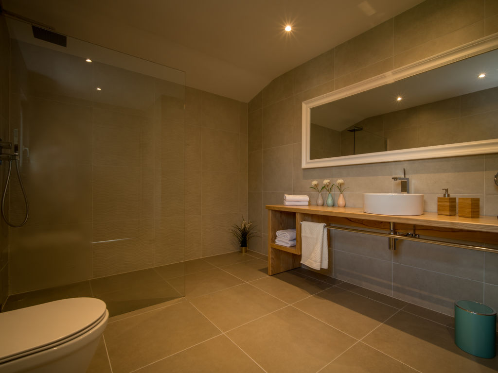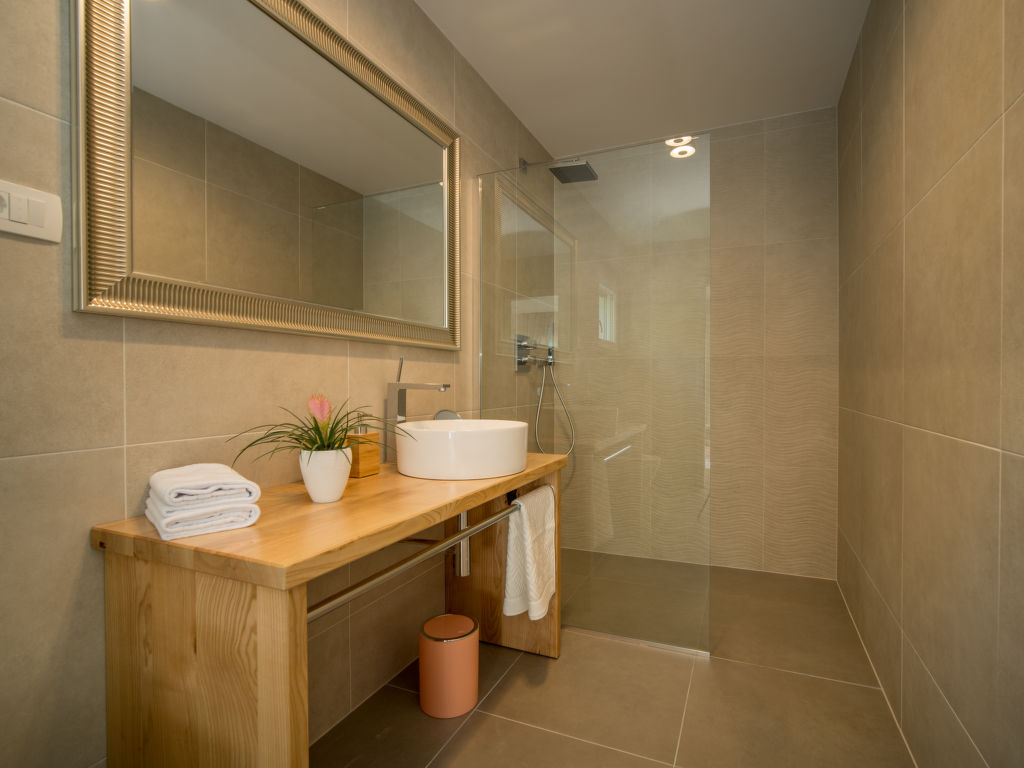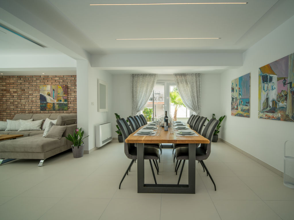 5-Zimmer-Haus 280 m2 auf 3 Stockwerken. Wohn-/Esszimmer 60 m2 mit Sat-TV (Flachbildschirm), Klimaanlage. Ausgang zur Terrasse. Offene Küche (Backofen, Geschirrspüler, 4 Glaskeramikherd Platten, Mikrowelle, Tiefkühler, elektrische Kaffeemaschine). Dusche/WC. Obergeschoss: 2 Zimmer, jedes Zimmer mit 1 franz. Bett (180 cm, Länge 200 cm), Dusche/WC und Sat-TV (Flachbildschirm), Klimaanlage. Ausgang zum Balkon. 2. Obergeschoss: 2 Zimmer, jedes Zimmer mit 1 franz. Bett (180 cm, Länge 200 cm), Dusche/Bidet/WC und Sat-TV (Flachbildschirm), Klimaanlage. Ausgang zur Terrasse. Bodenheizung (extra). 2 Balkone 5 m2, Terrasse 80 m2 teilweise überdacht, 2 Terrassen 7 m2. Terrassenmöbel, Balkonmöbel, Liegestühle. Sicht auf das Schwimmbad. Zur Verfügung: Internet (Wireless LAN, gratis).