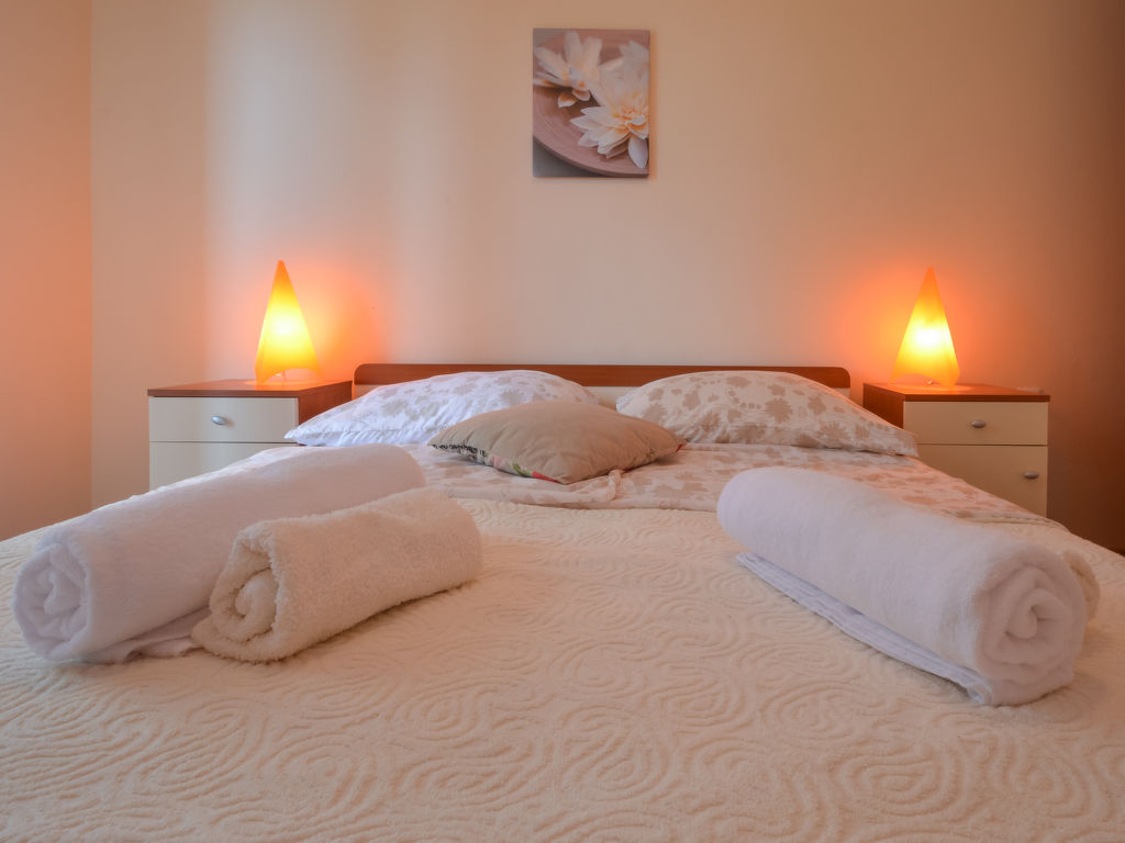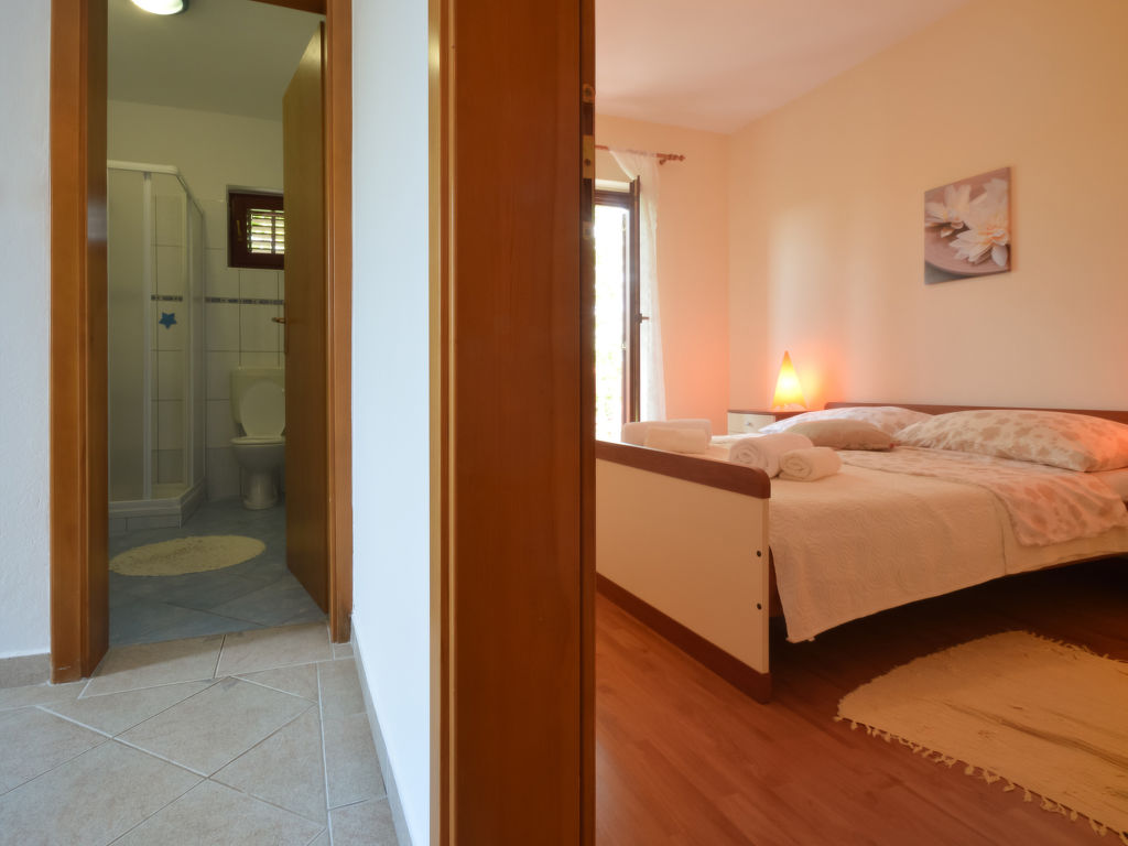 2-Zimmer-Wohnung 45 m2 im 1. Stock, Südlage. Schön und modern eingerichtet: Wohn-/Esszimmer 20 m2 mit 1 Doppeldiwanbett und Sat-TV (Flachbildschirm), Klimaanlage. Ausgang zum Balkon. 1 Zimmer mit 1 Doppelbett (160 cm). Ausgang zum Balkon. Offene Küche (4 Kochplatten, Backofen, elektrische Kaffeemaschine). Dusche/WC. Balkon 8 m2, Südlage. Terrassenmöbel. Herrliche Sicht auf das Meer. Zur Verfügung: Internet (Wireless LAN, gratis). Bitte beachten: Private Bootsanlegestelle (extra). Zugang zur Wohnung über 5 Stufen vom Parkplatz.