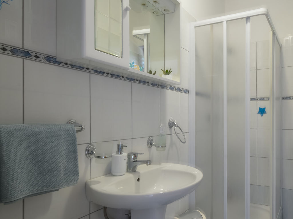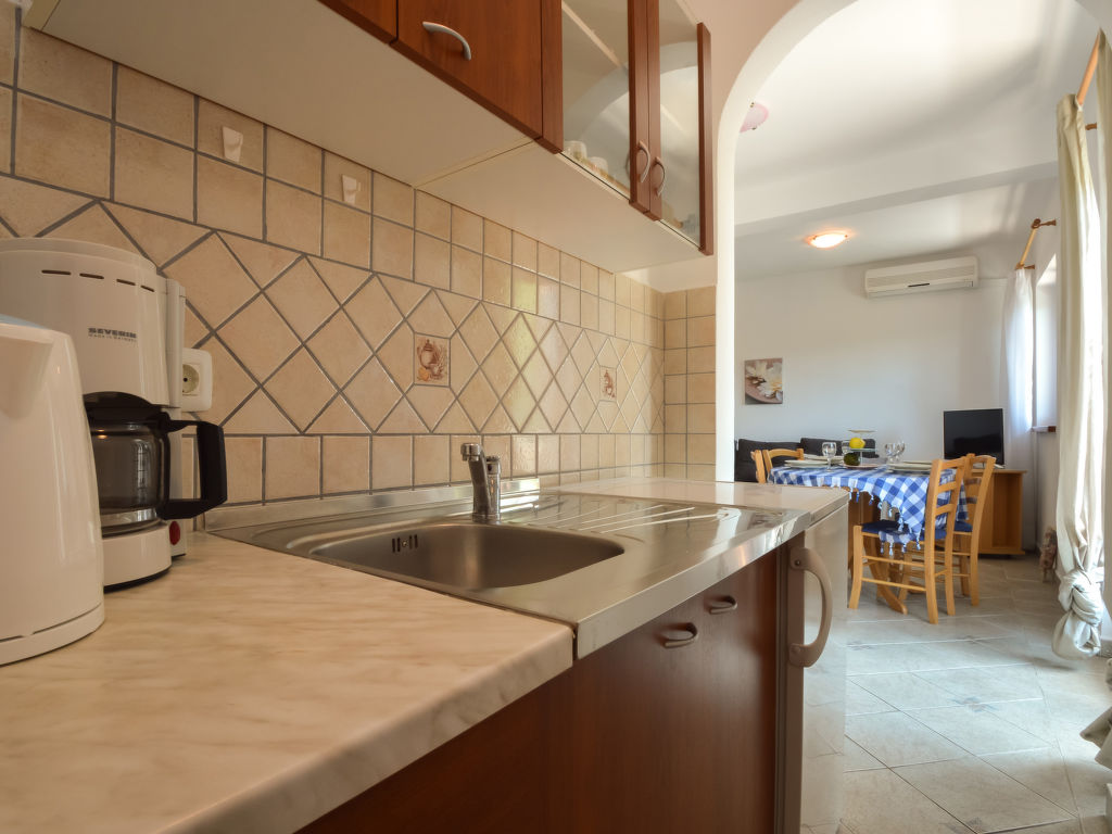 RIBNICA 15 km von Novigrad: Schönes Appartementhaus "Mara". 8 km vom Zentrum von Obrovac, ruhige, sonnige, erhöhte Lage, 10 m vom Meer, 10 m vom Strand. Im Hause: Internetzugang. Parkplatz beim Haus auf dem Grundstück. Einkaufsgeschäft 400 m, Restaurant 200 m, Kieselstrand 20 m, Felsstrand 10 m. Bitte beachten: In diesem Haus sind weitere Ferienwohnungen mietbar.