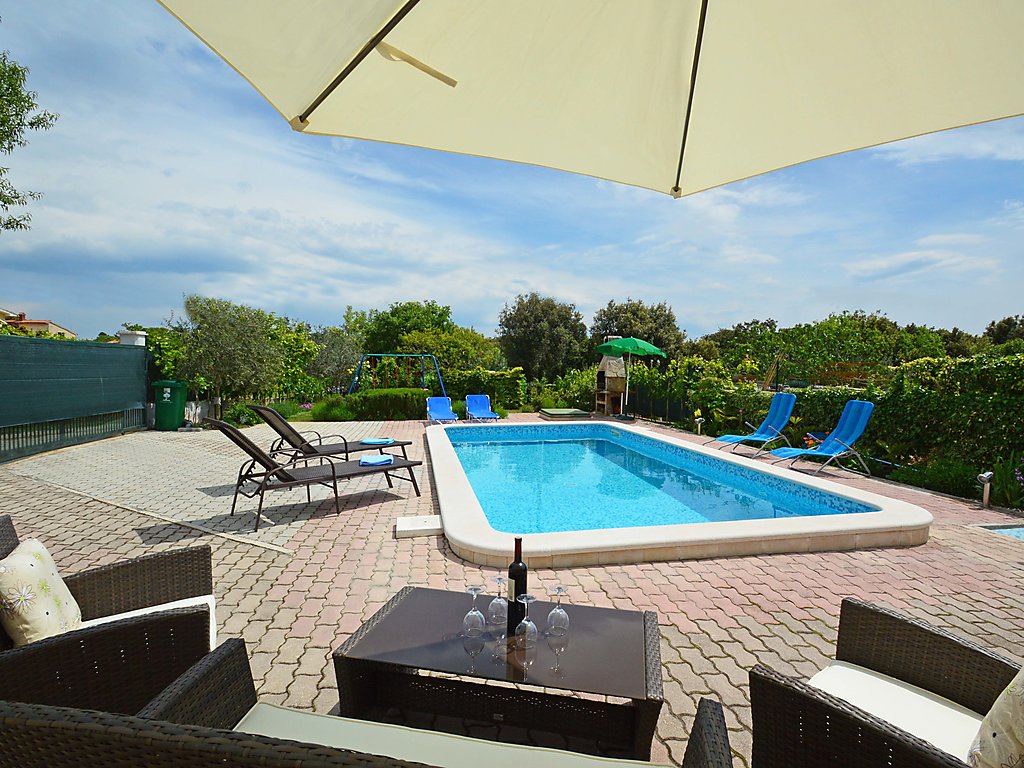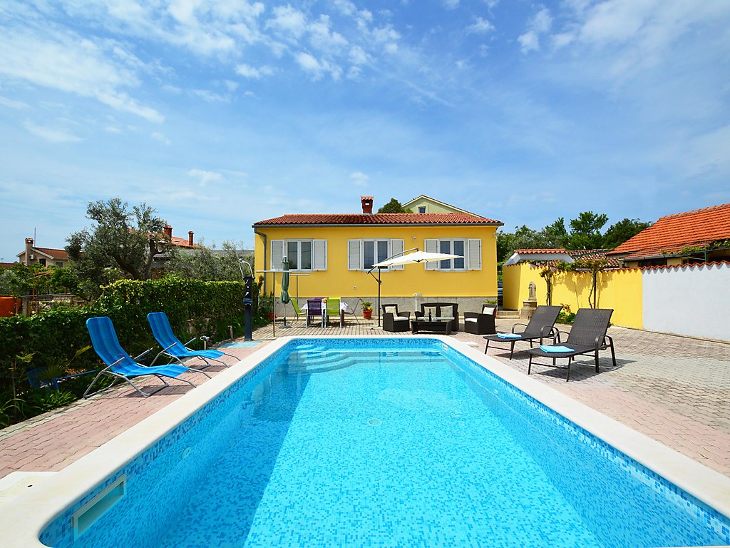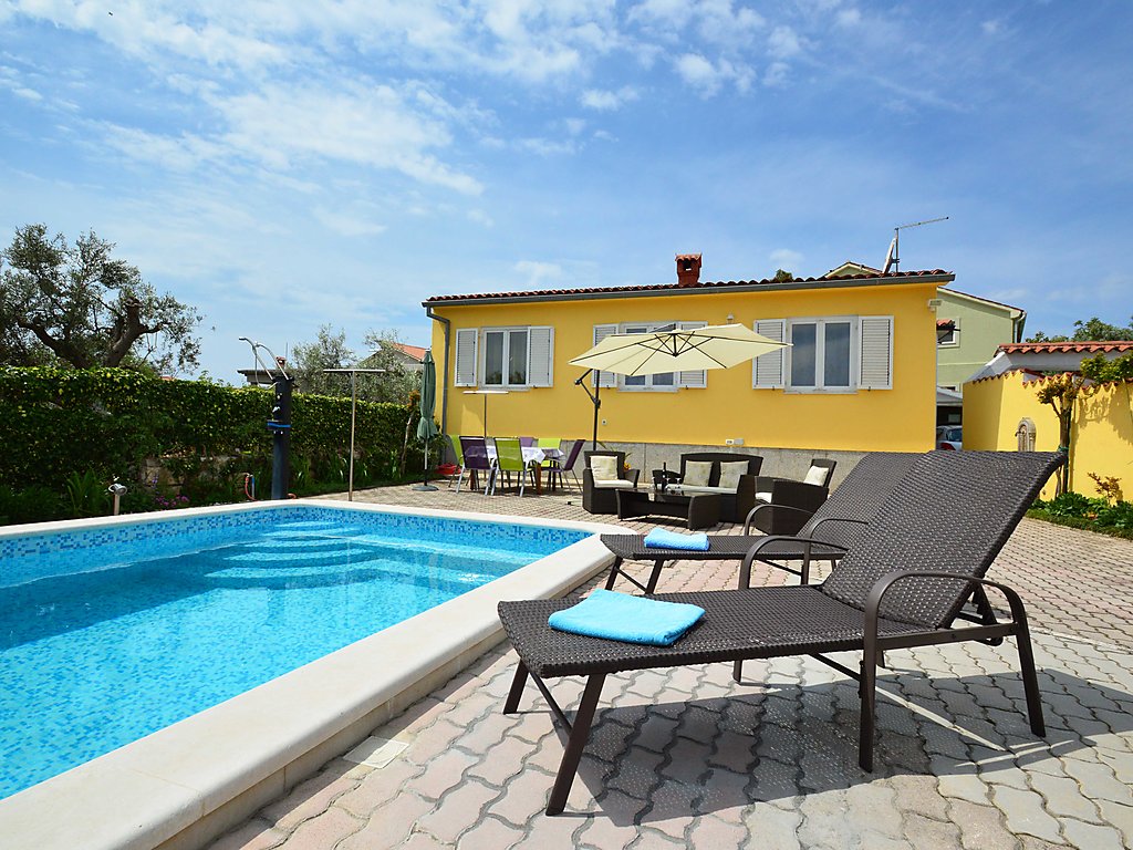 Schönes Einfamilienhaus "Slavko". Im Ortsteil Veli Vrh, 3 km vom Zentrum von Pula, 5 km vom Zentrum von Fažana, ruhige, sonnige Lage, 2 km vom Meer, 3.2 km vom Strand, im Grünen. Zur Alleinbenutzung: Grundstück 700 m2 (eingezäunt), schöner Garten mit Rasen und Pflanzen, Schwimmbad eckig (24 m2, 140 cm tief, 18.05.-28.09.) mit Innentreppe. Aussendusche, Pergola (25 m2), Gartenmöbel, Grill, Kinderspielplatz (Schaukel). Im Hause: Internetzugang, Waschmaschine. Zufahrt bis zum Haus (200 m Naturweg). Parkplatz (für 2 Autos) beim Haus auf dem Grundstück. Einkaufsgeschäft 500 m, Supermarkt 3 km, Restaurant 500 m, Kieselstrand 3.2 km, Felsstrand 3.2 km. Jacht-Hafen 8.5 km, Golfplatz 5 km, Surfschule 3.5 km, Tennis 1.8 km, Reitstall 1.8 km, Wanderwege ab Haus 200 m, Radweg 250 m. Nahe gelegene Sehenswürdigkeiten: Amphitheater 3 km.
