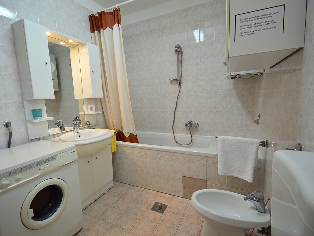 4-Zimmer-Haus 110 m2. Wohn-/Esszimmer mit Sat-TV (Flachbildschirm), Klimaanlage. Ausgang zur Terrasse. 1 Zimmer mit 1 Doppelbett (2 x 90 cm, Länge 200 cm). 1 Zimmer mit 1 franz. Bett (140 cm, Länge 200 cm). 1 Zimmer mit 2 Betten (90 cm, Länge 200 cm). Offene Küche (4 Kochplatten, Backofen, Geschirrspüler, Mikrowelle, Tiefkühler, elektrische Kaffeemaschine). Bad/Bidet/WC, sep. WC. Terrasse 25 m2. Terrassenmöbel, Liegestühle. Sicht auf den Garten. Zur Verfügung: Haartrockner. Internet (Wireless LAN, gratis).