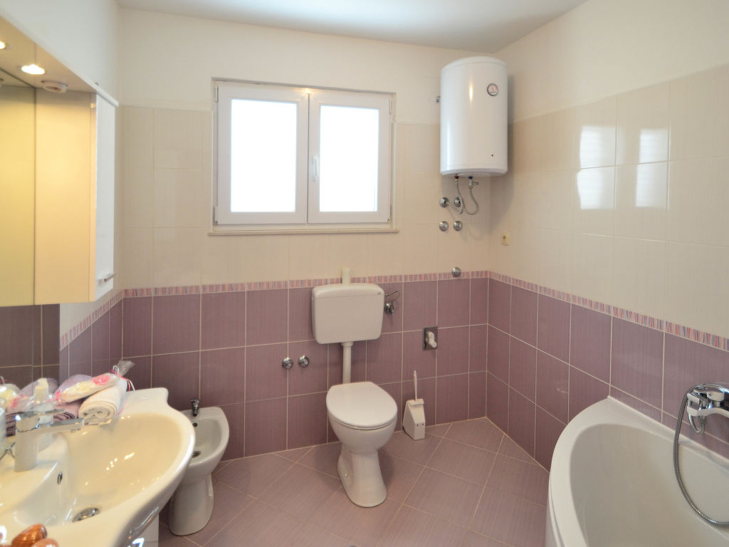 3-Zimmer-Wohnung 70 m2 im 1. Stock, Südwestlage. Wohn-/Esszimmer 24 m2 mit 1 Doppeldiwanbett (130 cm, Länge 190 cm), Sat-TV (Flachbildschirm), Klimaanlage. Ausgang zur Terrasse. 1 Zimmer mit 1 Doppelbett (2 x 80 cm, Länge 200 cm). Ausgang zur Terrasse. 1 Zimmer mit 1 Doppelbett (2 x 80 cm, Länge 200 cm), Dusche/WC. Ausgang zur Terrasse. Offene Küche (Backofen, Geschirrspüler, 4 Glaskeramikherd Platten). Ausgang zur Terrasse. Bad/Bidet/WC. Klimaanlage (extra). Terrasse 12 m2, überdacht, Terrasse 12 m2 teilweise überdacht. Terrassenmöbel. Zur Verfügung: Internet (Wireless LAN, gratis).