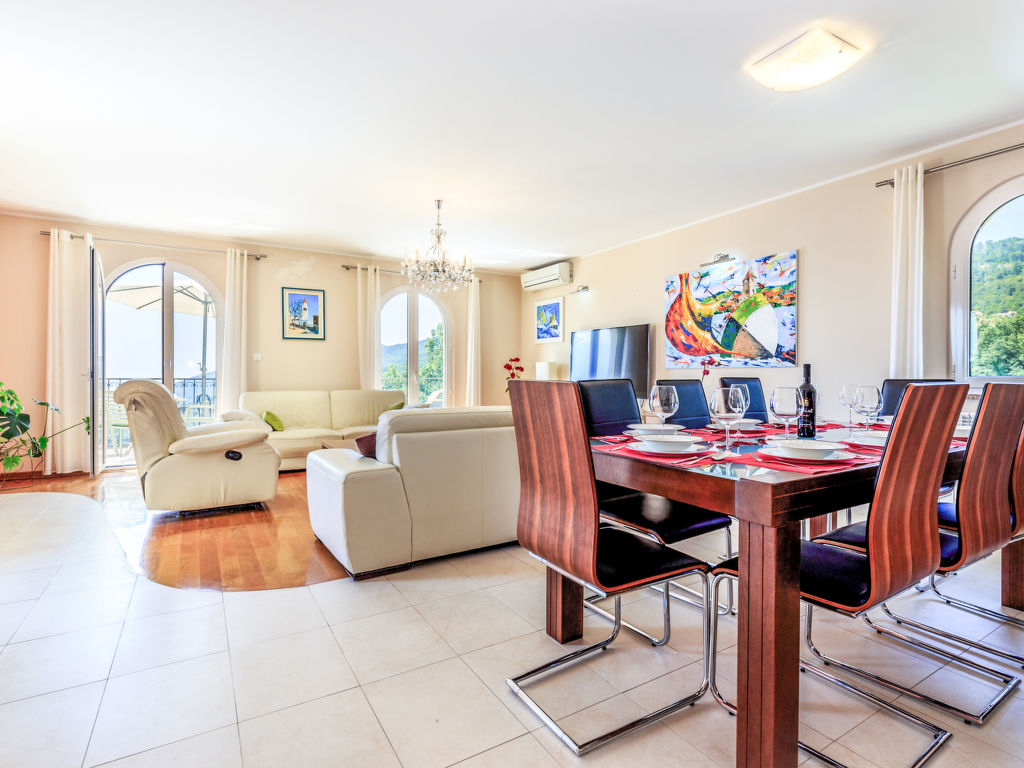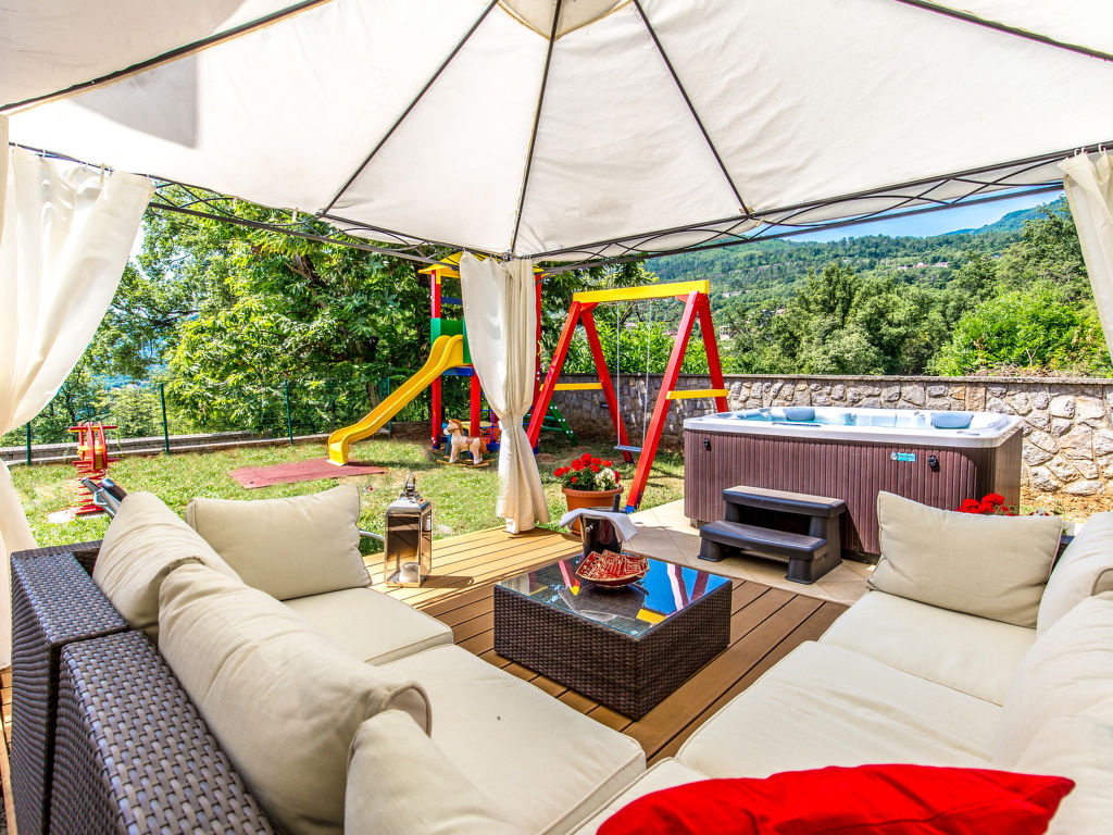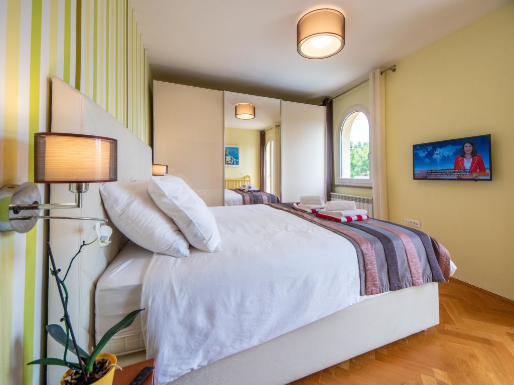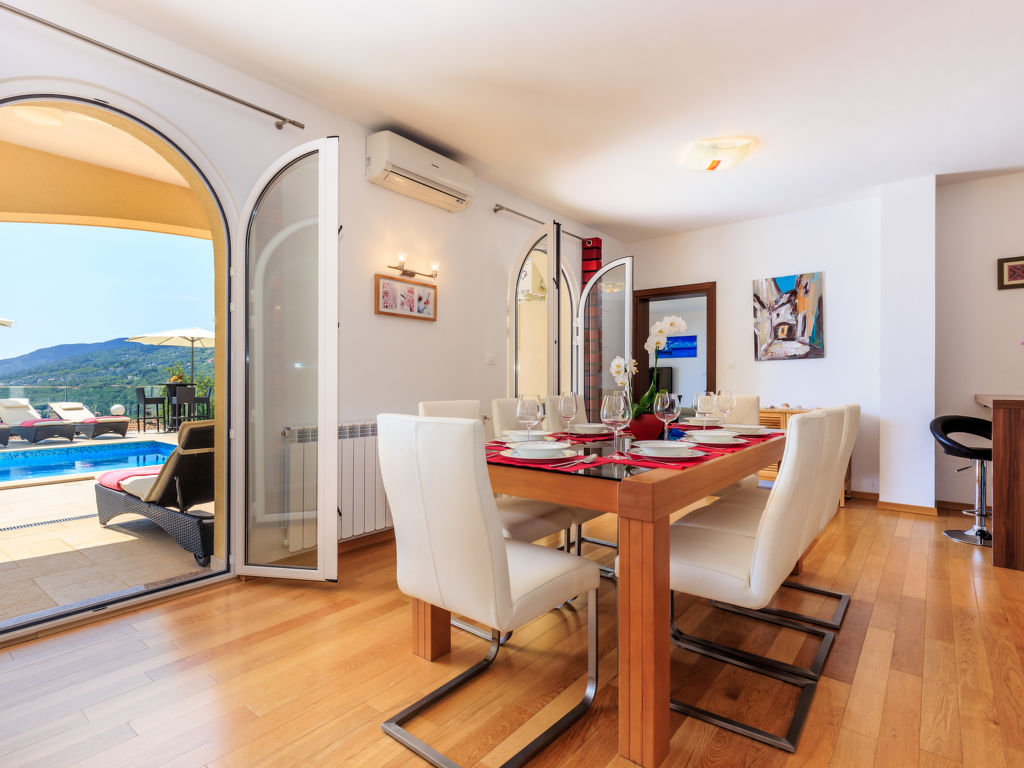 Poljane (Ičići) 8 km von Opatija: Kinderfreundliches, schönes Doppelhaus "Villa Orhidea", auf 2 Stockwerken. 5.5 km vom Zentrum von Ičići, sonnige, erhöhte Lage, 5.5 km vom Meer, im Grünen. Zur Alleinbenutzung: Rasen 110 m2, Schwimmbad eckig (7 x 3 m, 24 m2, 140 cm tief, 20.04.-12.10.) mit Innentreppe. Aussendusche, Sprudelbad, Tischtennis, Gartenmöbel, Grill, Kinderspielplatz (Rutschbahn, Schaukel). Im Hause: Internetzugang, Billard, Waschmaschine, Wäschetrockner. Parkplatz (für 6 Autos) beim Haus auf dem Grundstück. Einkaufsgeschäft 600 m, Restaurant 1.4 km, Bushaltestelle 100 m, Steinstrand 5.5 km, Strandbad 5.5 km, betonierter Strand 5.5 km. Tennis 4 km. Nahe gelegene Sehenswürdigkeiten: Nature park Učka 8 km. Jugendgruppen nur auf Anfrage. Sprudelbad im Freien, mit Wassertemperatur bis 40 °C.