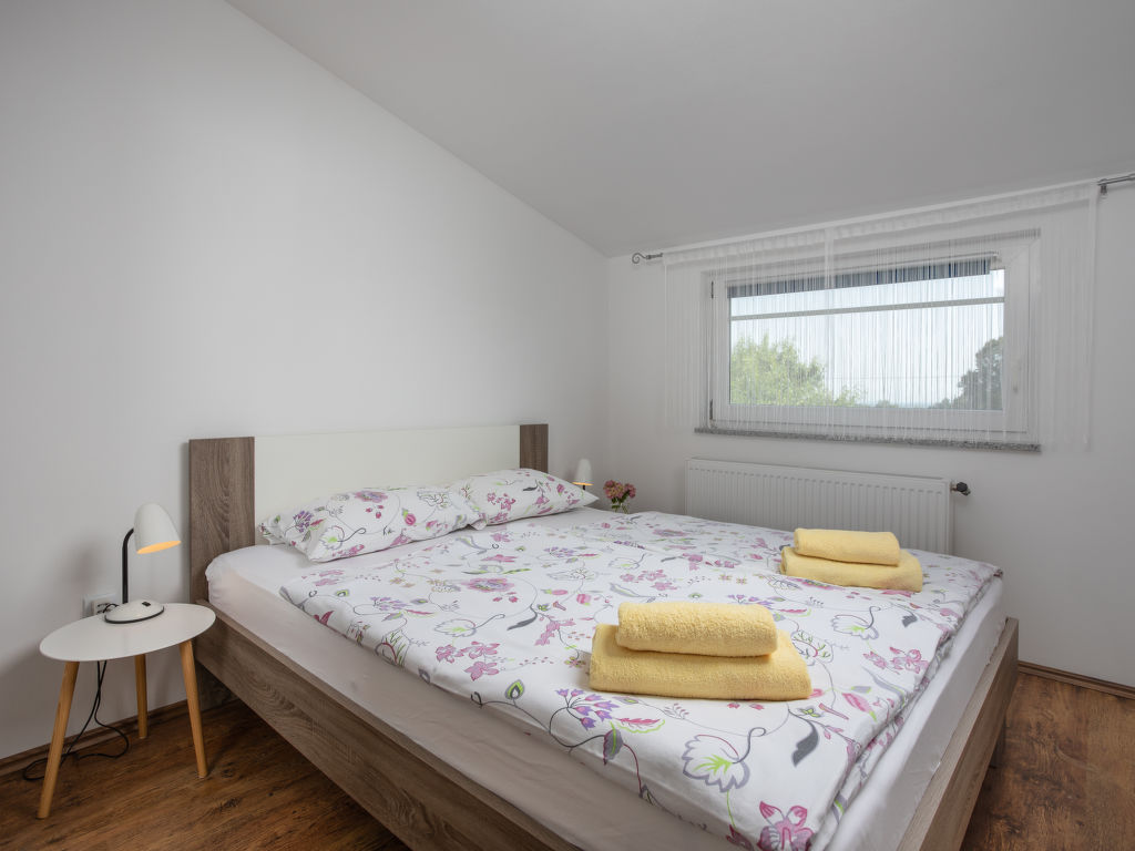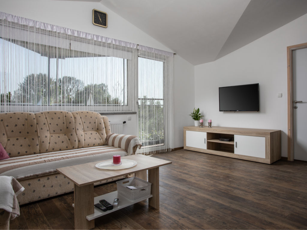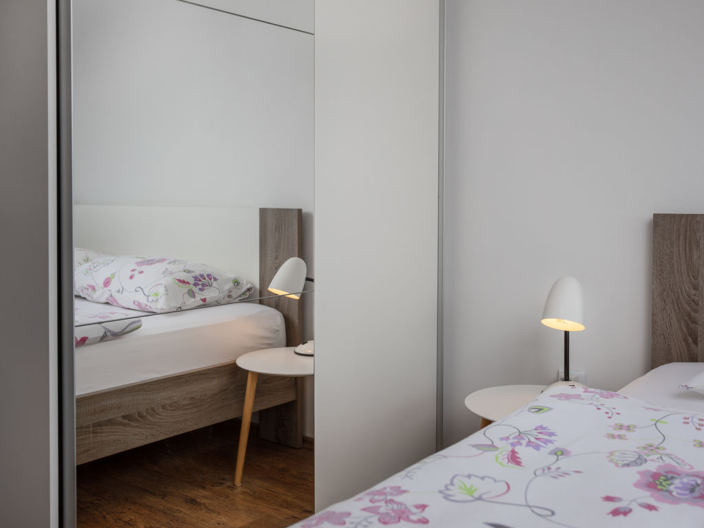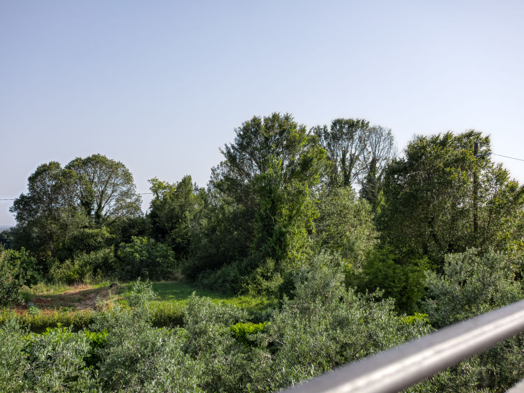 3-Zimmer-Wohnung 60 m2 im 1. Stock. Schön eingerichtet: Wohn-/Esszimmer mit 1 Diwanbett (160 cm, Länge 200 cm), Sat-TV (Flachbildschirm), Klimaanlage. Ausgang zur Terrasse. 1 Zimmer mit 1 franz. Bett (160 cm, Länge 200 cm). 1 Zimmer mit 2 Betten (90 cm, Länge 200 cm). Offene Küche (2 Kochplatten, Backofen, Mikrowelle, Tiefkühler, elektrische Kaffeemaschine). Dusche/WC. Terrasse 8 m2. Terrassenmöbel. Sicht auf den Garten und die Landschaft. Zur Verfügung: Haartrockner. Internet (Wireless LAN, gratis). 1 Haustier/Hund erlaubt.
