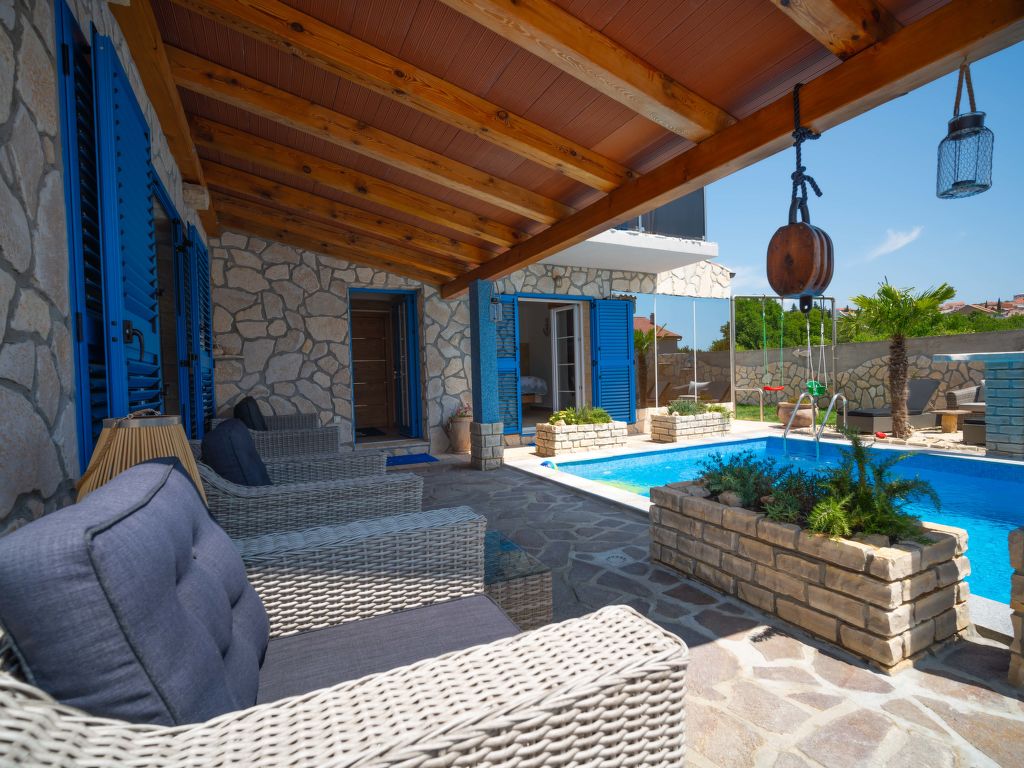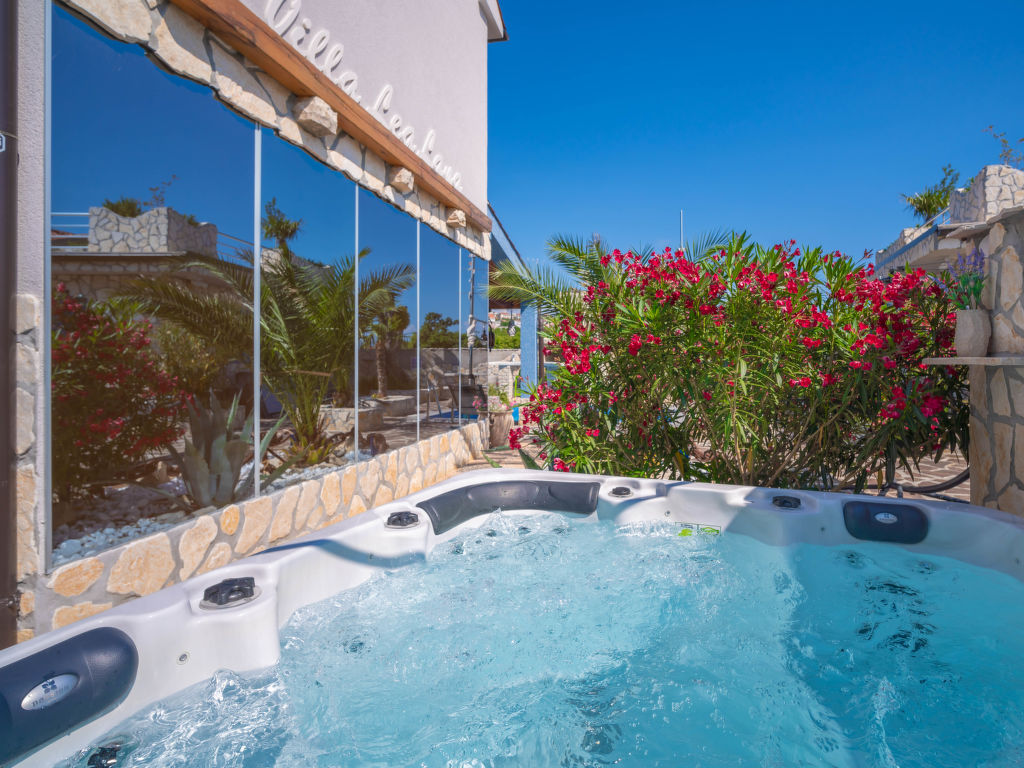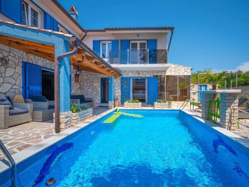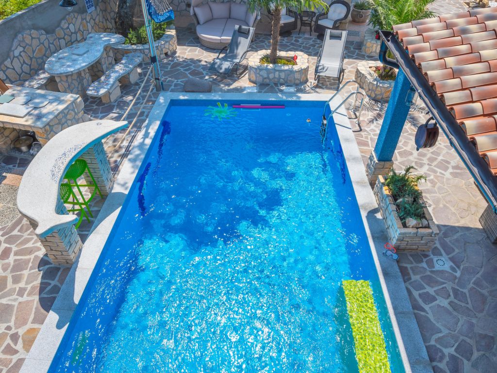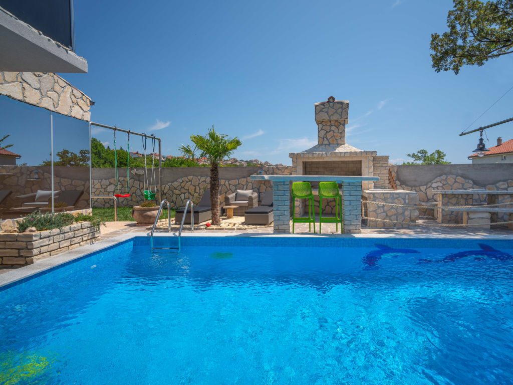 Villa "Lea Lana", auf 2 Stockwerken, Baujahr 2019. 500 m vom Zentrum von Novi Vinodolski, ruhige, sonnige Lage, 700 m vom Meer, 900 m vom Strand. Zur Alleinbenutzung: Grundstück 1'000 m2 (eingezäunt) mit Pflanzen, Schwimmbad eckig (7 x 4 m, 150 cm tief, 01.05.-15.10.) mit Innentreppe. WC im Poolbereich, Aussendusche, Sprudelbad, Poolhaus, Tischtennis, Terrasse (50 m2), Gartenmöbel, Grill, Kinderspielplatz (Rutschbahn, Schaukel). Im Hause: Internetzugang, Tischfussball, Alarmanlage, Waschmaschine. Parkplatz (für 3 Autos) beim Haus auf dem Grundstück. Einkaufsgeschäft, Supermarkt, Restaurant 500 m, Kieselstrand, Strandbad, betonierter Strand 900 m. Bitte beachten: geeignet für Familien. Jugendgruppen nur auf Anfrage. Von Gruppen von Jugendlichen wird bei der Ankunft eine doppelte Kaution verlangt. Poolhaus als Spielzimmer eingerichtet (Tischfussball, Darts, Playstation). Verfügbar: multifunktionales Trainigsgerät. Videoüberwachung der Immobilie. Begrüssungsgetränk und Snack bei der Ankunft.
