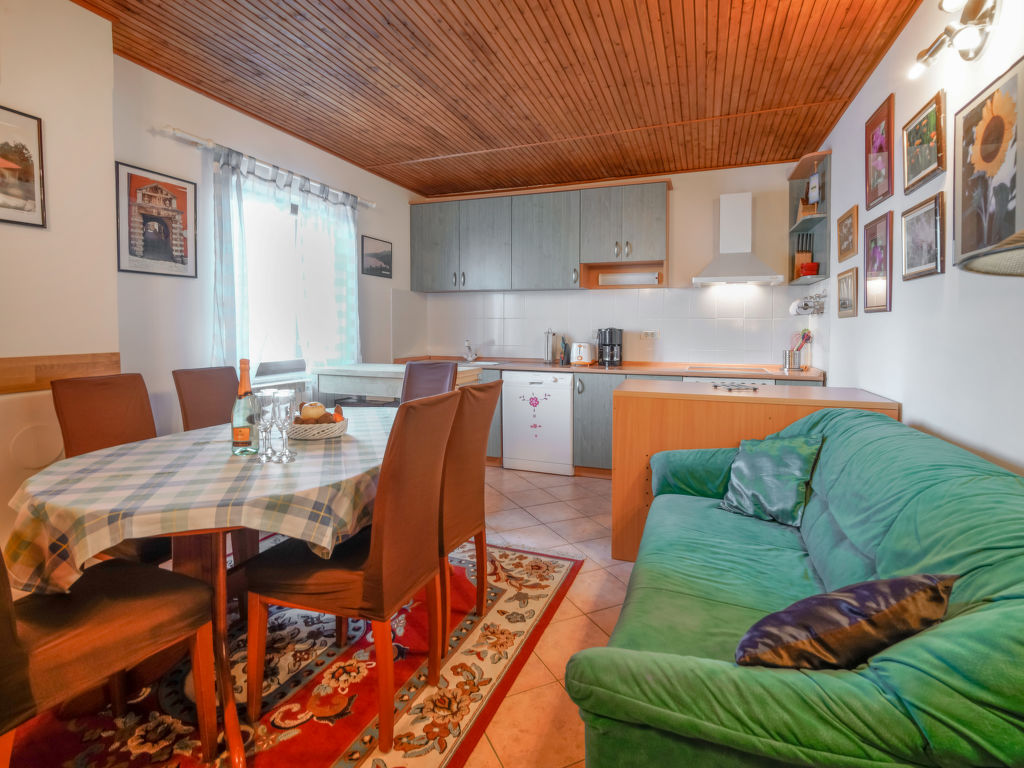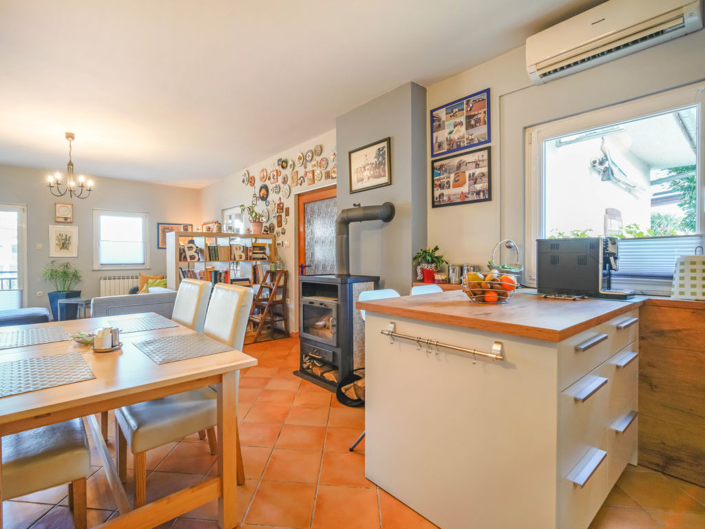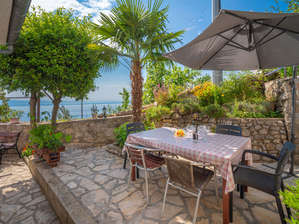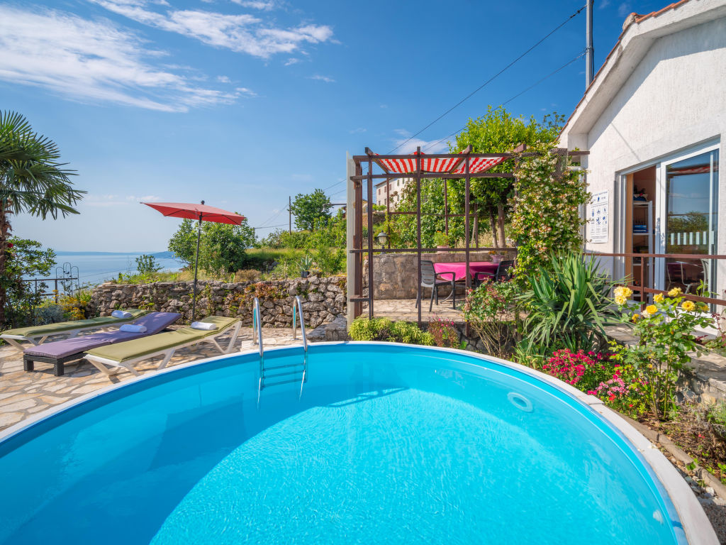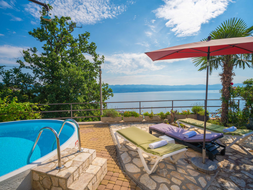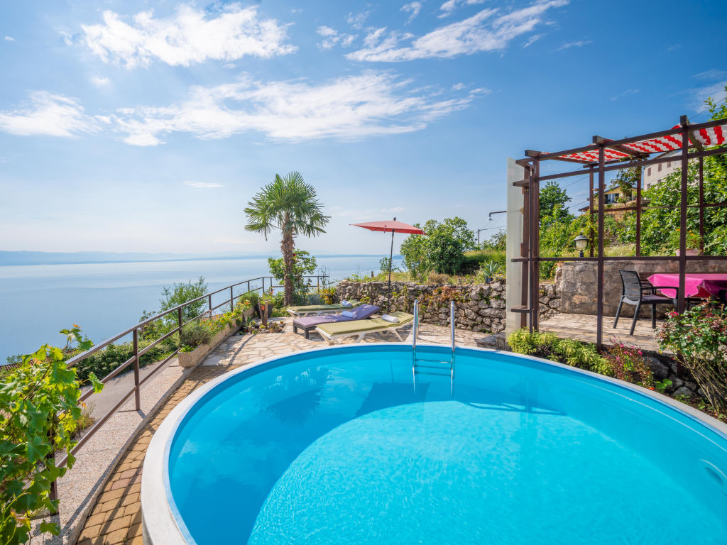 Tuliševica 5 km von Lovran: Gemütliches Doppelhaus "Villa More". Oberhalb von Lovran, im Weiler Tuliševica, 8 km vom Zentrum von Opatija, ruhige, sonnige Lage am Hang, 6 km vom Meer, 6 km vom Strand, im Grünen, Richtung Süden. Zur Alleinbenutzung: Wiese 400 m2, Liegewiese, Schwimmbad rund (4 m Durchmesser, 120 cm tief, 01.05.-15.10.). Basketball, Volleyball, Terrasse (21 m2), Gartenmöbel, Grill, Feuerstelle, Kinderspielplatz (Rutschbahn, Schaukel), Parkplatz (überdacht) beim Haus auf dem Grundstück. Einkaufsgeschäft 500 m, Supermarkt 5 km, Restaurant 1 km, Kieselstrand 6 km, Steinstrand 6 km, Felsstrand 6 km, Hallenbad 6 km, Strandbad 6 km. Tennis 6 km.