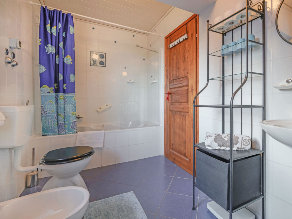 6-Zimmer-Haus 200 m2 auf 2 Stockwerken im 1. Stock. Schön und geschmackvoll eingerichtet: grosses Wohn-/Esszimmer 42 m2 mit Sat-TV (Flachbildschirm), Klimaanlage. Ausgang zum Balkon. 1 Zimmer mit 1 franz. Bett (180 cm, Länge 200 cm). 1 Zimmer mit 1 Bett (90 cm, Länge 200 cm), 1 Ausziehbett (Länge 200 cm). Ausgang zum Balkon. Offene Küche (Backofen, Geschirrspüler, 4 Glaskeramikherd Platten, Mikrowelle, Tiefkühler, elektrische Kaffeemaschine). Bad/Bidet/WC, sep. WC. Obergeschoss: 1 Zimmer mit 1 franz. Bett (160 cm, Länge 200 cm). Ausgang zum Balkon. 1 Zimmer mit 1 Bett (90 cm, Länge 200 cm), 1 franz. Bett (180 cm, Länge 200 cm). Ausgang zum Balkon. 1 Zimmer mit 1 franz. Bett (180 cm, Länge 200 cm). Esszimmer mit Sat-TV (Flachbildschirm). Offene Küche (Backofen, Geschirrspüler, 4 Glaskeramikherd Platten, elektrische Kaffeemaschine). Bad/Bidet/WC, Dusche/WC. Heizung (extra), Klimaanlage (extra). 2 Balkone 17 m2, Südlage. Terrassenmöbel, Liegestühle. Herrliche Panoramasicht auf das Meer, die Landschaft und die Ortschaft. Zur Verfügung: Waschmaschine, Kinderhochstuhl, Babybett, Haartrockner, Wickelkommode. Internet (Wireless LAN, gratis). Salon-Fläche 21 m2, mit einem offenen Kamin und einer Bar.