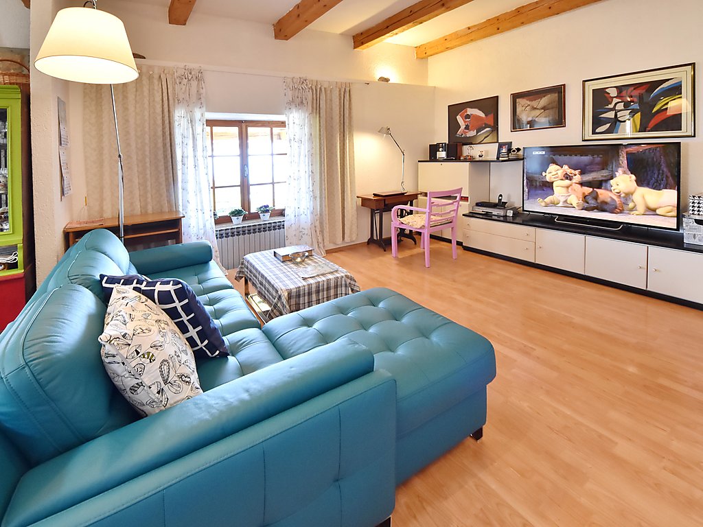 3-Zimmer-Haus 80 m2 auf 2 Stockwerken, Ostlage. Wohn-/Esszimmer 50 m2 mit Sat-TV (Flachbildschirm), DVD und Klimaanlage. Ausgang zur Terrasse. Offene Küche (4 Kochplatten, Backofen, Geschirrspüler, Mikrowelle, Tiefkühler, elektrische Kaffeemaschine). Sep. WC. Obergeschoss: 1 Zimmer mit 1 franz. Bett (180 cm, Länge 200 cm). 1 Zimmer mit 1 franz. Bett (160 cm, Länge 190 cm). Bad/Bidet/WC. Terrasse 13 m2, überdacht. Terrassenmöbel, Gartengrill (mobil), Liegestühle. Sicht auf das Meer. Zur Verfügung: Internet (Wireless LAN, gratis). 1 kleines Haustier/Hund erlaubt. Kleine, niedrig platzierte Fenster in Doppelzimmern.