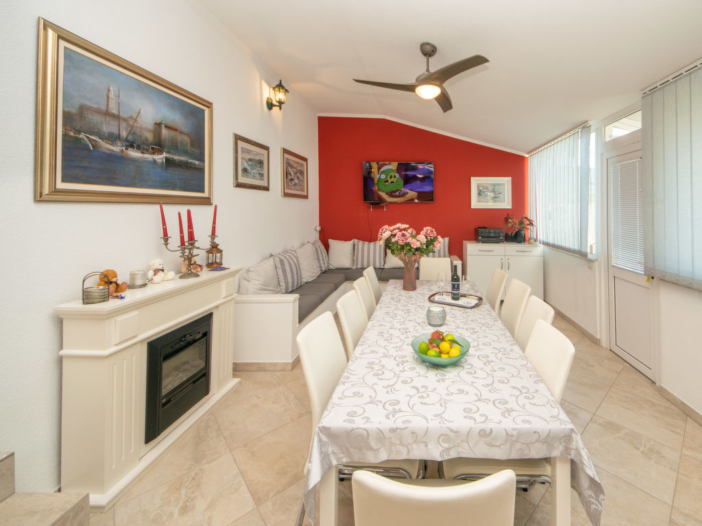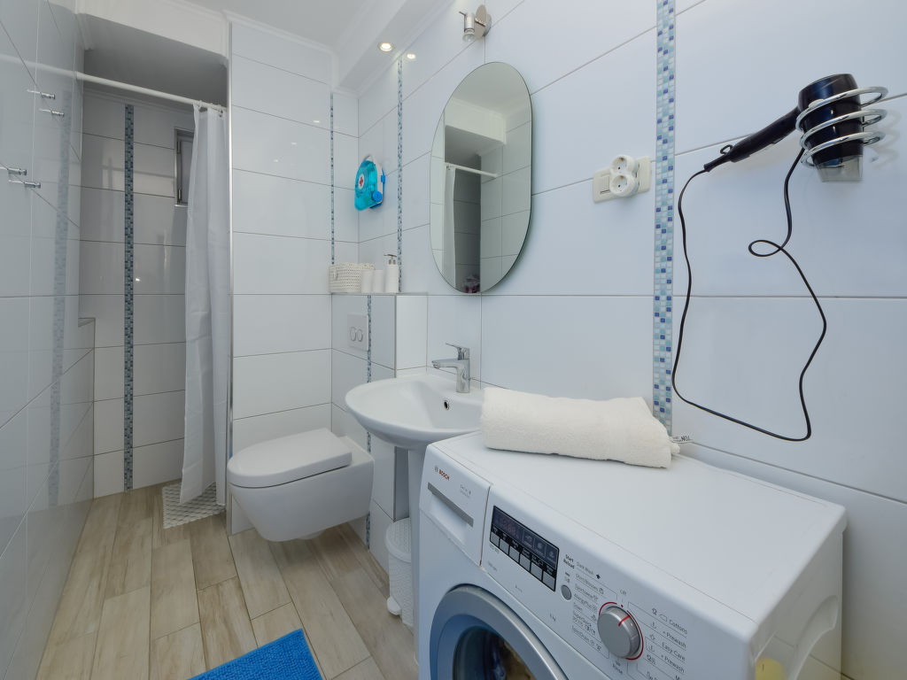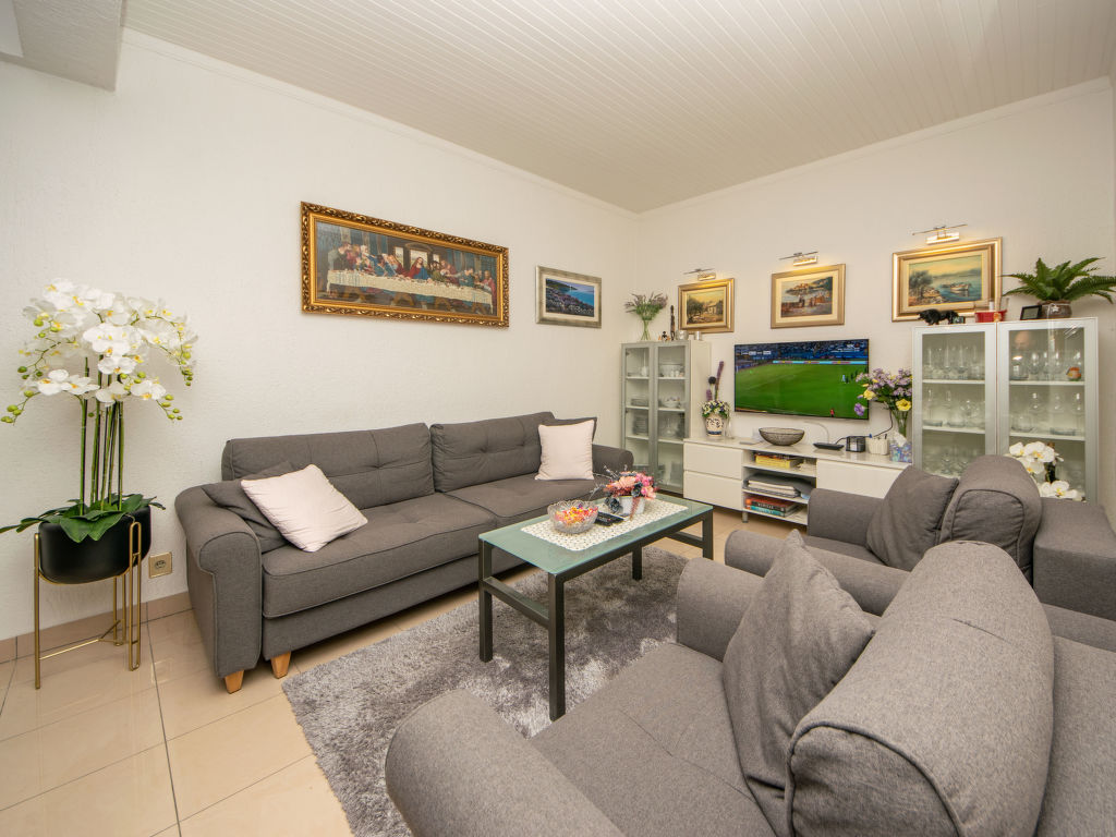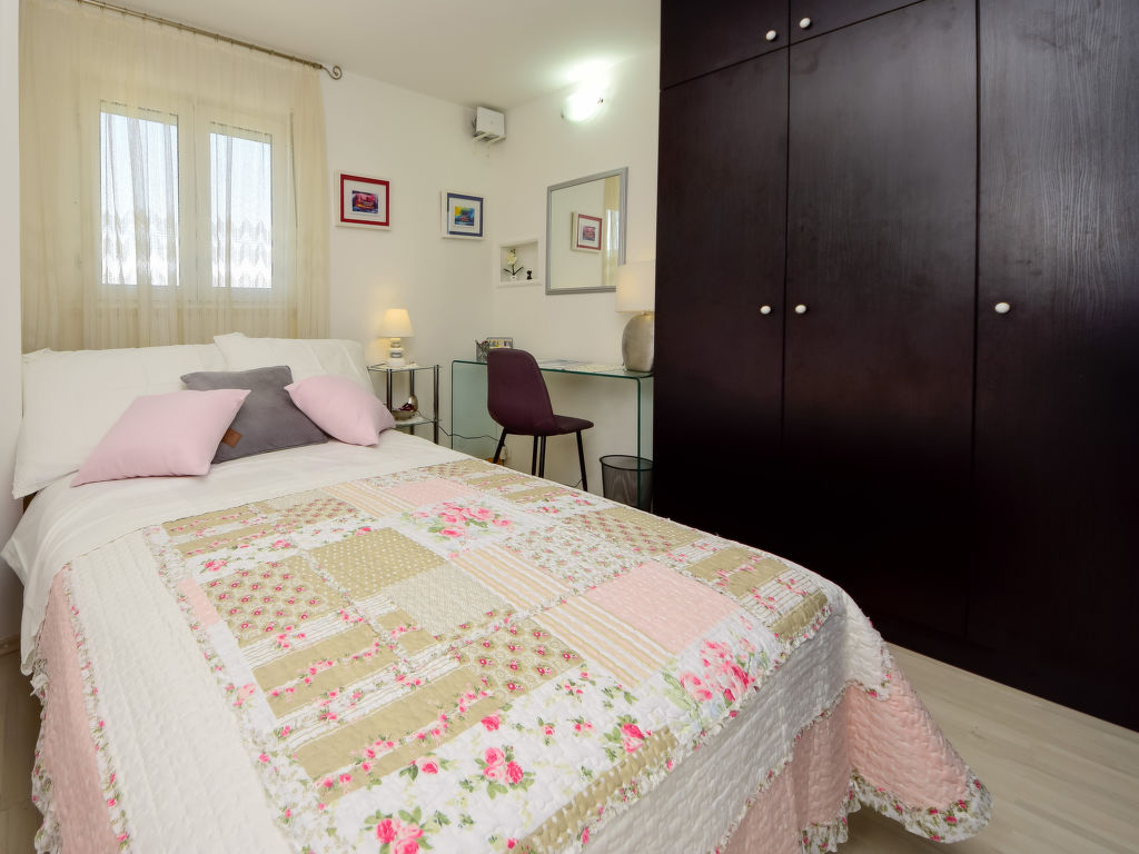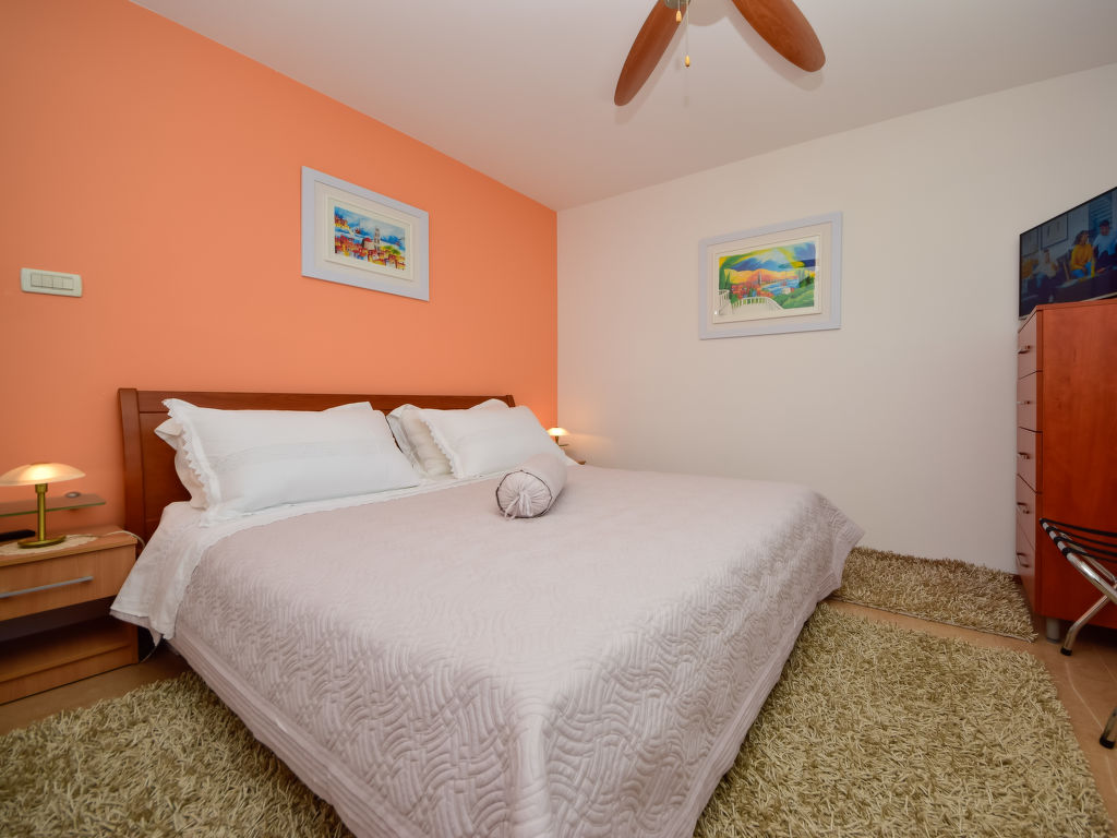 Einfamilienhaus "Ksenija", auf 2 Stockwerken. 2 km vom Zentrum von Žrnovnica, 10 km vom Zentrum von Split, ruhige, sonnige, erhöhte Lage, 4.5 km vom Meer, 4.5 km vom Strand. Zur Alleinbenutzung: Grundstück 650 m2 (eingezäunt), Garten mit Pflanzen, Hallenbad eckig, beheizt (9 x 4 m, 40 m2, 175 cm tief, 15.04.-15.10.). Aussendusche, Terrasse (12 m2), Gartenmöbel, Grill, Kinderspielplatz (Rutschbahn, Schaukel). Im Hause: Internetzugang, Trampolin, Waschmaschine. Parkplatz beim Haus auf dem Grundstück, Einzelgarage. Einkaufsgeschäft 2 km, Restaurant 2 km, Kieselstrand 4.5 km. Jacht-Hafen 5 km, Golfplatz 5 km, Tennis 7 km, Wanderwege ab Haus 100 m. Schwimmbad beheizt (extra).