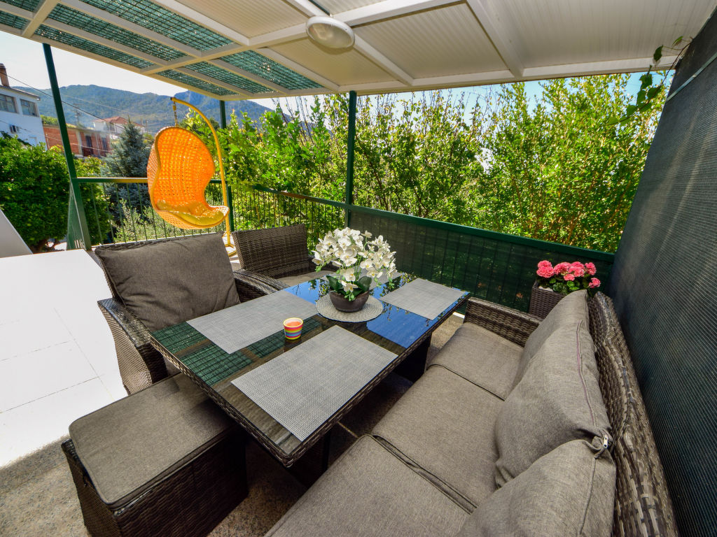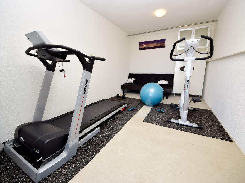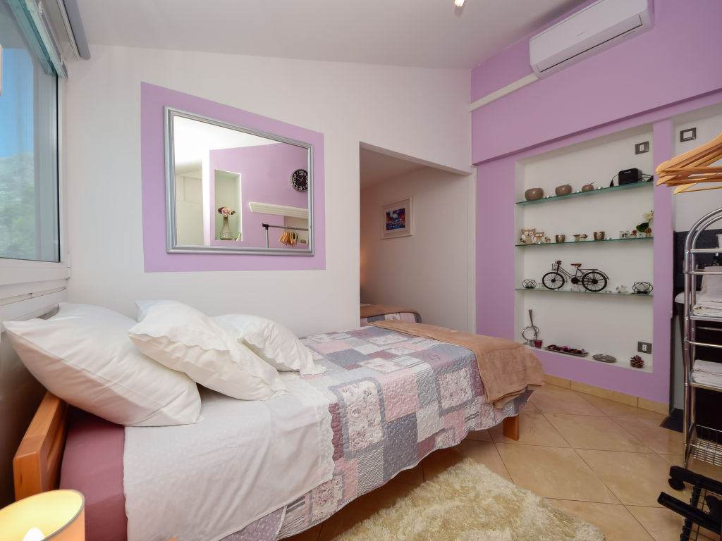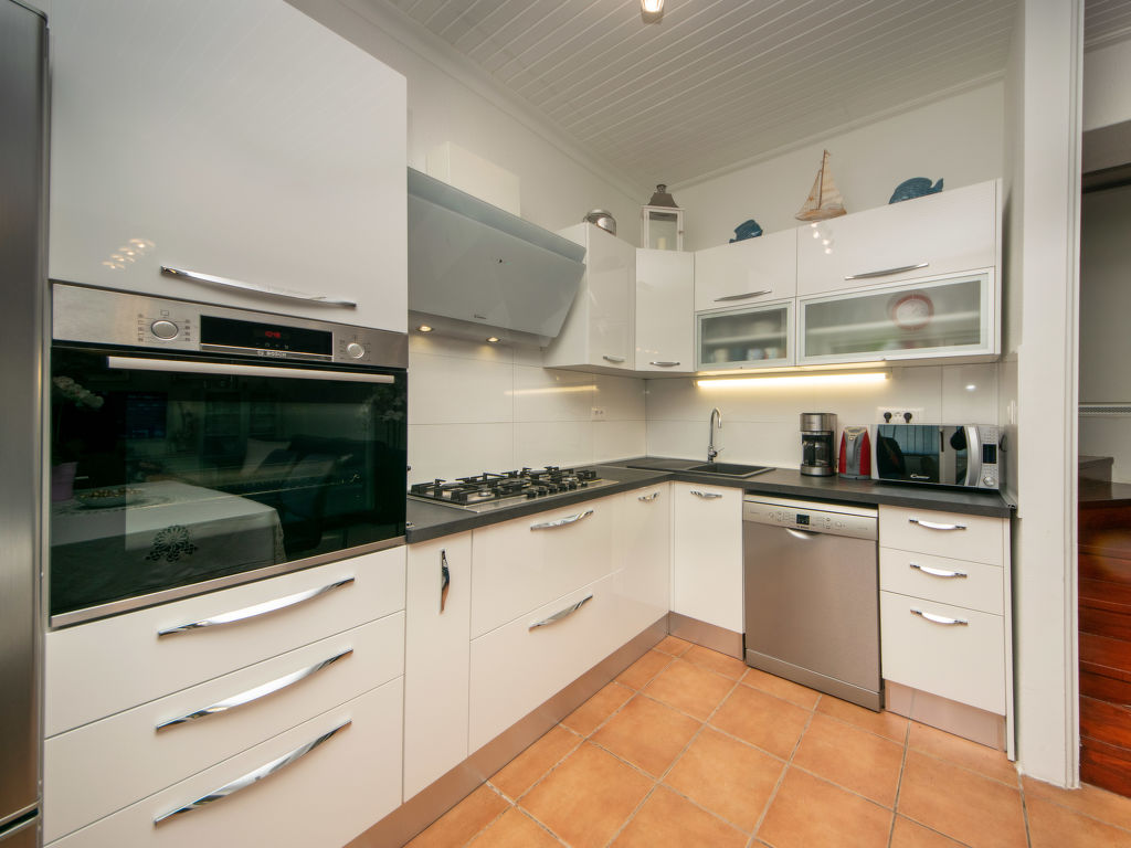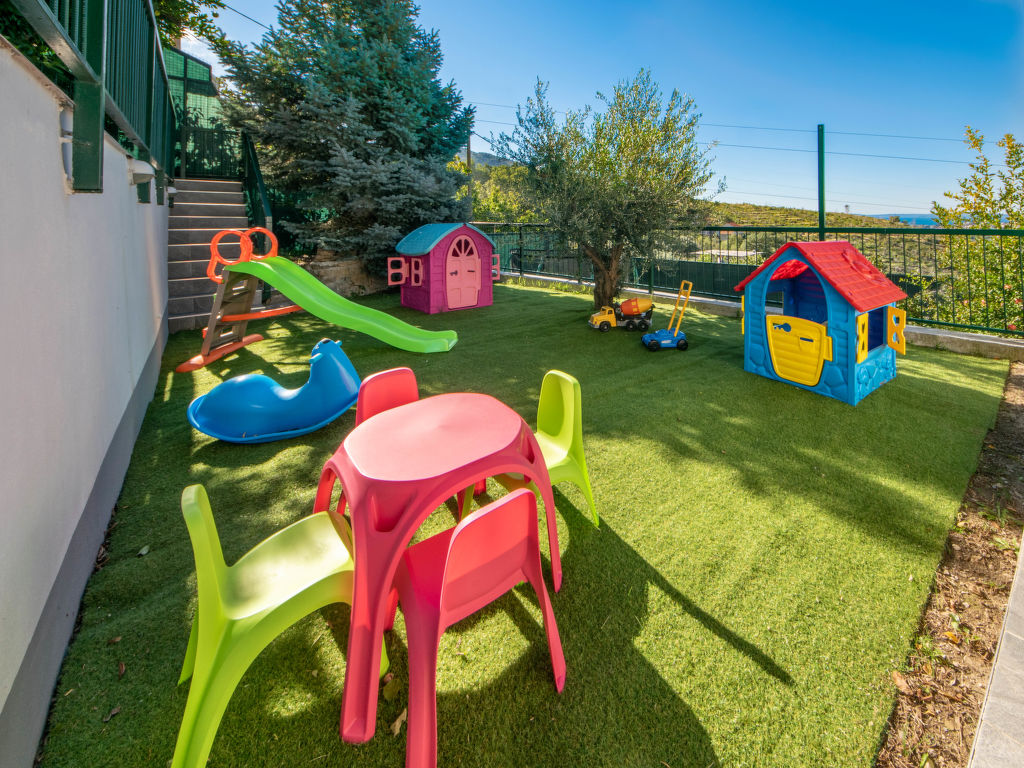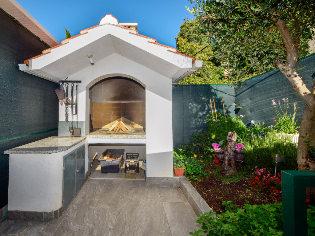 4-Zimmer-Haus 150 m2 auf 2 Stockwerken, Südwestlage. Wohn-/Esszimmer mit 1 Diwanbett (120 cm, Länge 200 cm), Kabel-TV (Flachbildschirm), Klimaanlage. Ausgang zur Loggia. Offene Küche (Backofen, Geschirrspüler, 5 Flammen, Toaster, Wasserkocher, Mikrowelle, Tiefkühler, elektrische Kaffeemaschine). Dusche/WC. Obergeschoss: Eingang mit Klimaanlage. Ausgang zum Balkon. 1 Zimmer mit 1 franz. Bett (180 cm, Länge 200 cm), Kabel-TV (Flachbildschirm), Ventilator. 1 Zimmer mit 2 Betten (90 cm, Länge 200 cm), Klimaanlage. 1 Zimmer mit 1 Bett (120 cm, Länge 200 cm). Dusche/WC. Warmluftheizung. Balkon 8 m2, Terrasse 15 m2, überdacht. Balkonmöbel, Liegestühle, Loggia. Sicht auf die Landschaft. Zur Verfügung: Safe, Babybett, Haartrockner. Internet (Wireless LAN, gratis).
