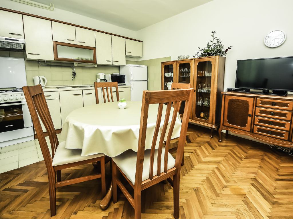 Schönes Zweifamilienhaus "Marija". 300 m vom Zentrum, ruhige, sonnige Lage, 150 m vom Meer. Zur Mitbenutzung: Garten. Zur Alleinbenutzung: Aussendusche, Grill. Im Hause: Internetzugang. Parkplatz beim Haus. Einkaufsgeschäft, Restaurant 300 m, Kieselstrand, Steinstrand 150 m. Schattiger Parkplatz im Hof.