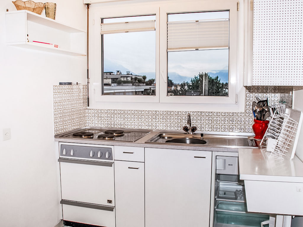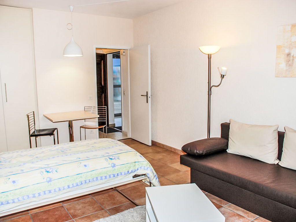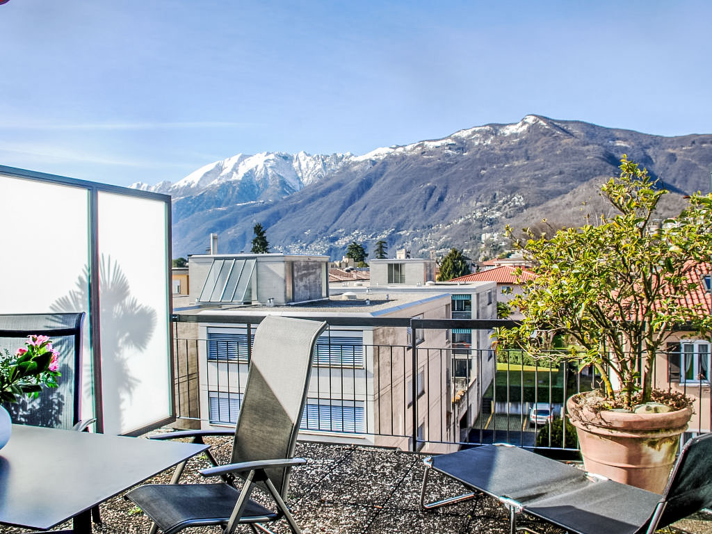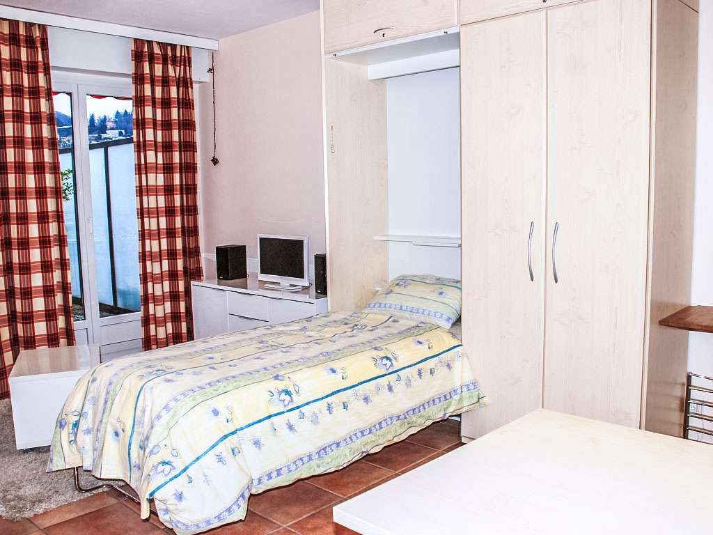 1-Zimmer-Attikawohnung 40 m2 im 3. Stock. Hell, komfortabel und gemütlich eingerichtet: grosses Wohn-/Esszimmer mit 2 Wandschrankbetten (90 cm, Länge 200 cm), Esstisch, Kabel-TV, Flachbildschirm, CD, Stereoanlage und DVD. Ausgang zur Terrasse. Küche (3 Kochplatten, Backofen). Bad/WC. Heizung. Grosse Terrasse 17 m2 teilweise überdacht, Südwestlage. Terrassenmöbel, Liegestühle (1). Schöne Sicht auf die Berge, die Landschaft und die Ortschaft. Zur Verfügung: Internet (Wireless LAN). IPod docking station. Bitte beachten: Nichtraucher-Unterkunft.