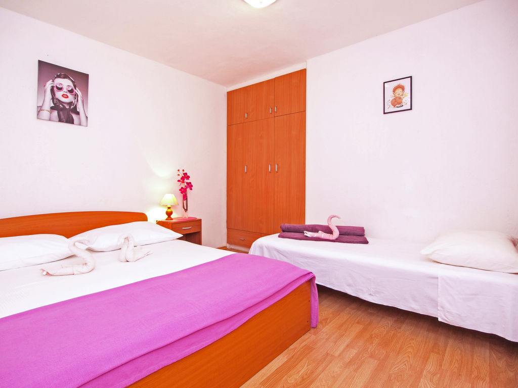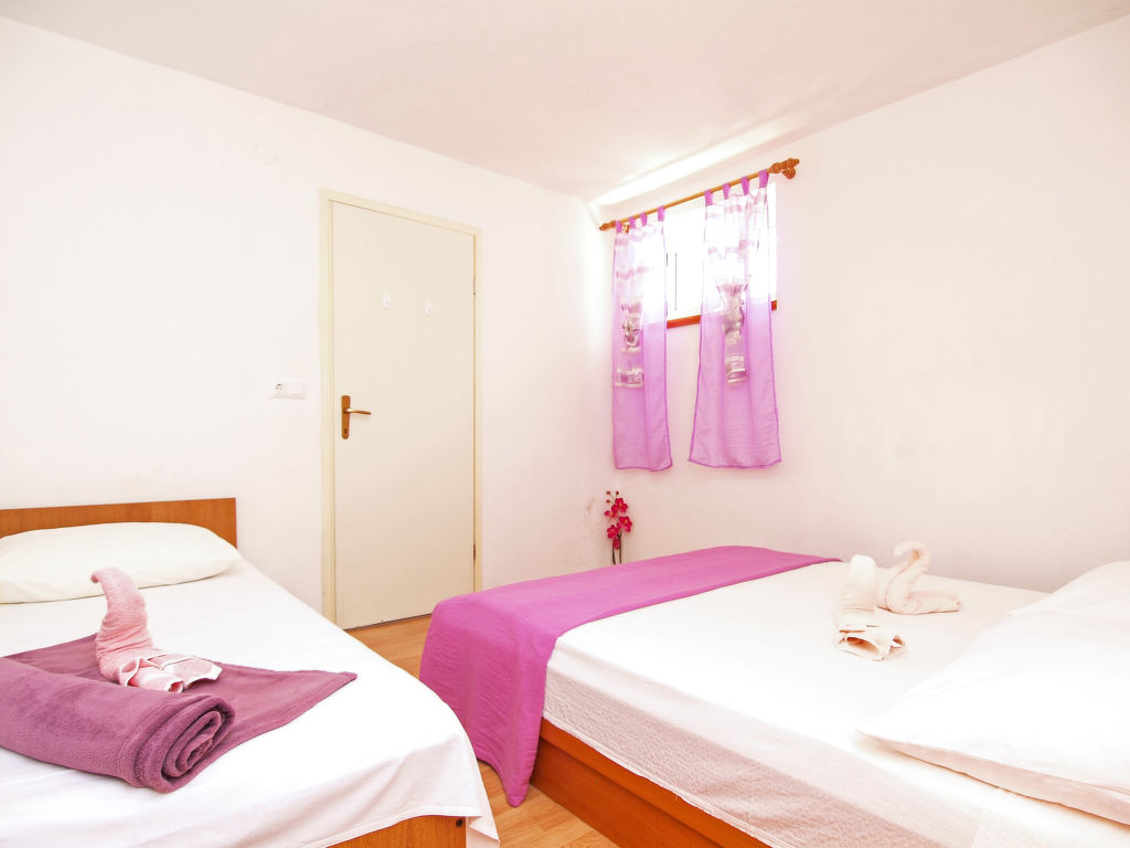 Slatine (Ciovo) 6 km von Trogir: Schönes Dreifamilienhaus "Slavica". Ruhige, erhöhte Lage, 60 m vom Meer, 60 m vom Strand. Zur Mitbenutzung: Grill. Im Hause: Internetzugang, Klimaanlage. Parkplatz (überdacht) beim Haus auf dem Grundstück. Einkaufsgeschäft 500 m, Restaurant 300 m, Steinstrand, Felsstrand 60 m. Bitte beachten: In diesem Haus sind weitere Ferienwohnungen mietbar. Schattiger Parkplatz im Hof.