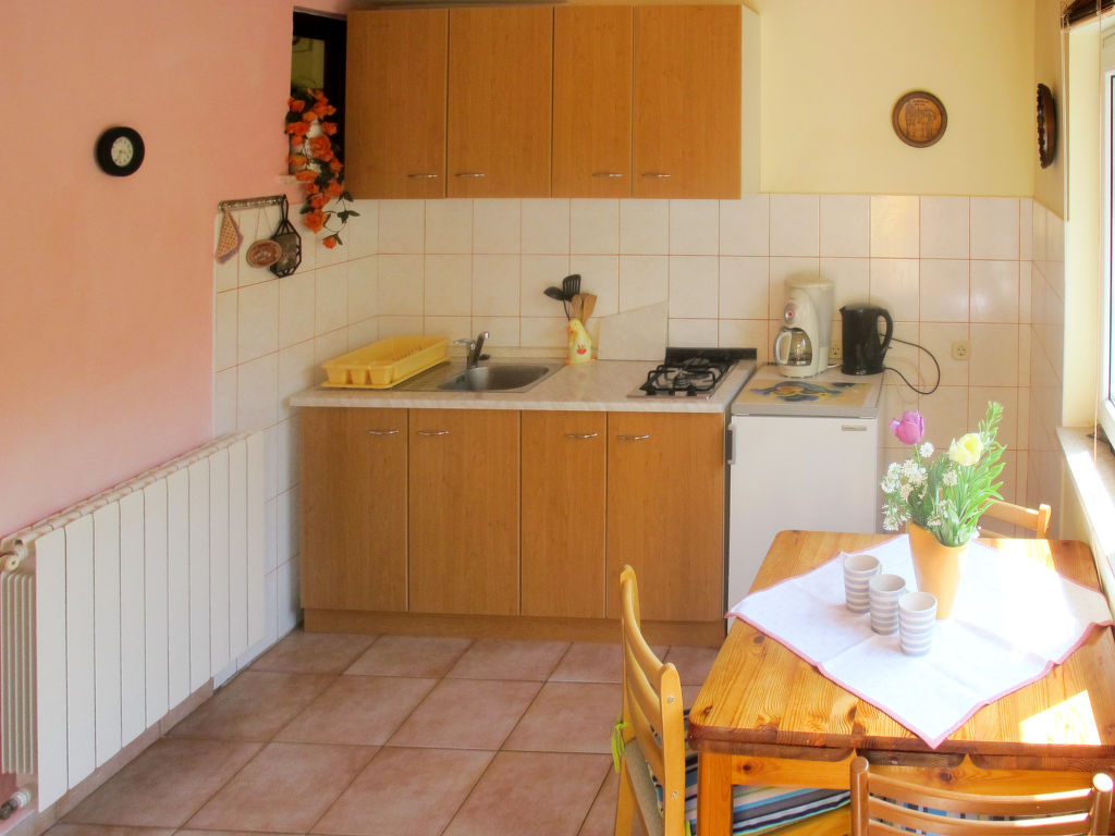 "Smilja (PRC600)", 1-Zimmer-Wohnung 40 m2, im Erdgeschoss. 1 Zimmer mit 1 Bett, 1 franz. Bett und Sat-TV. Küche (2 Flammen, Toaster, Wasserkocher, elektrische Kaffeemaschine) mit Esstisch. Dusche/WC. Gartensitzplatz. Zur Verfügung: Internet (Wireless LAN, extra). Bitte beachten: Nichtraucher-Haus. Maximal 1 Haustier/Hund erlaubt. Eigener Eingang.