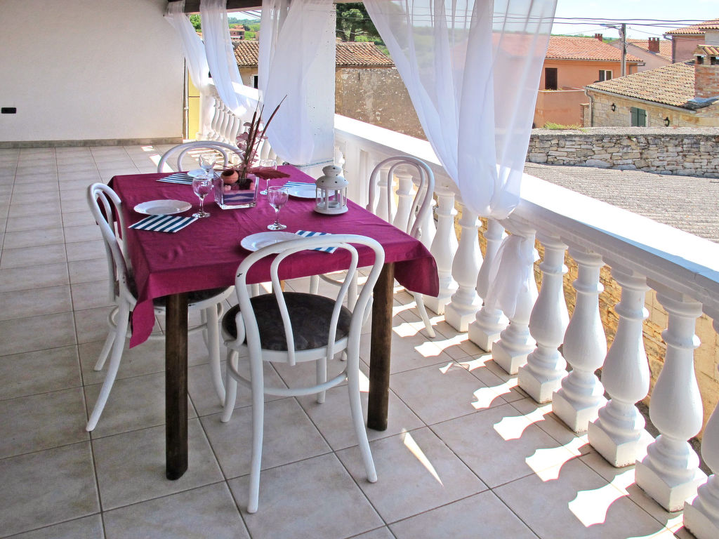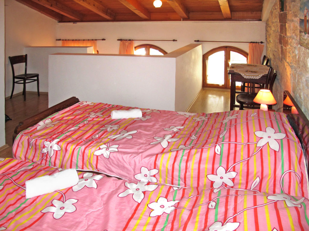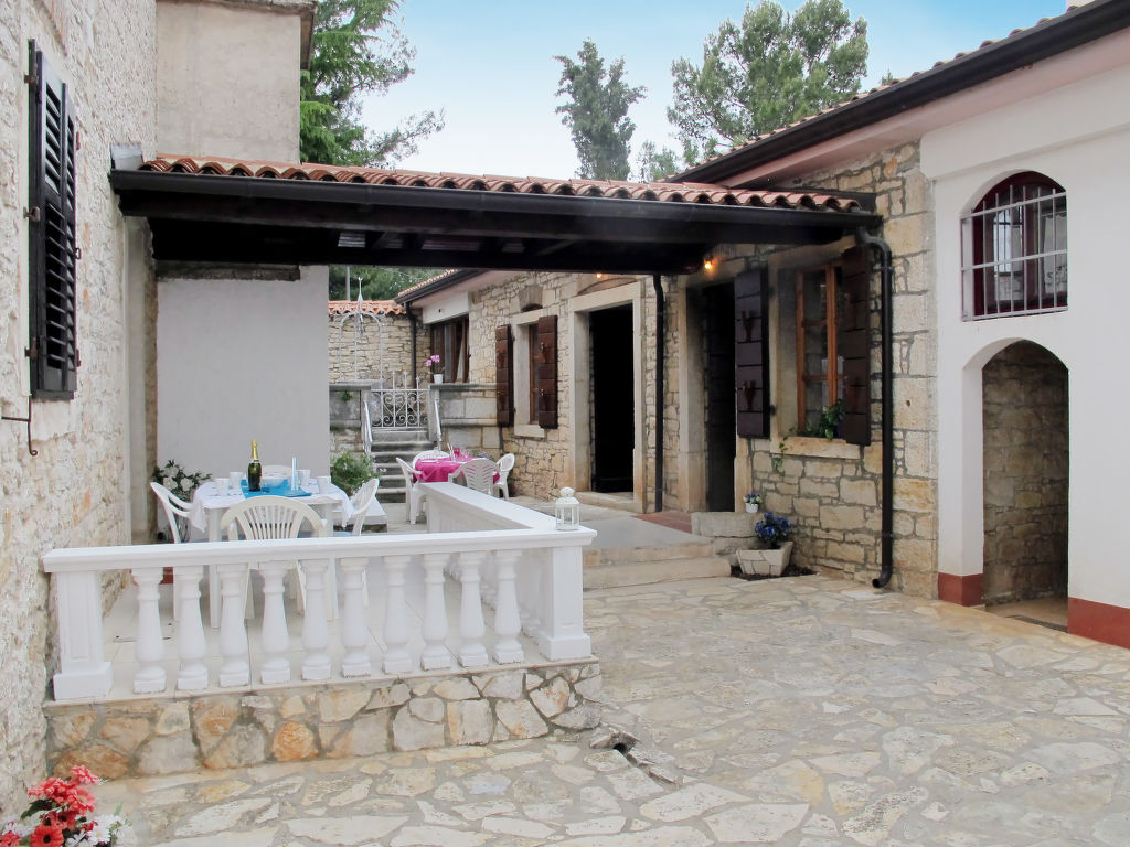 Die istrischen Steinhäuser GORTAN, ein Haus mit 3 Ferienwohnungen (KST 100-102) und ein Ferienhaus (KST 103), stehen zusammen auf einem Anwesen in der Ortsmitte von Kastelir. Restaurant ca. 100 m, Einkaufsmöglichkeit ca. 300 m, Supermarkt 1,2 km. Fels-/Kiesstrand in Lanterna 7 km. Abgeschlossenes, ca. 500 m² großes Grundstück mit Innenhof und 2 Parkmöglichkeiten. Weitere Parkmöglichkeiten sowie kleiner Kinderspielplatz mit Rutsche und Schaukel neben dem Anwesen außerhalb des Grundstücks. Im Innenhof große Konoba mit Internetzugang (WLAN, inklusive), Bartheke, Essplatz, Kamin (Grillvorrichtung) und Billardtisch zur gemeinsamen Nutzung. Die Wohnungen KST 100-102 haben jeweils einen Terrassenanteil mit Mobiliar und 1 Liegestuhl. KST 103 mit überdachtem, möblierten Balkon, Sonnenpavillon und 2 Liegestühlen. Die Häuser sind gut für befreundete Familien und Paare geeignet. Rustikale, feriengerechte Einrichtung. Teils mit Sichtsteinwänden und Holzbalkendecke. Fliesen- und Laminatboden. Sat-TV (deutsche Programme), DVD. Waschraum mit Gemeinschaftswaschmaschine. Klimaanlage mit Kühl-/Heizfunktion im Wohnraum (KST 100-102) oder im Flur (KST 103). Hinweis: Rauchen ist in den Wohnungen und im Haus nicht gestattet.