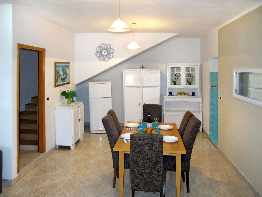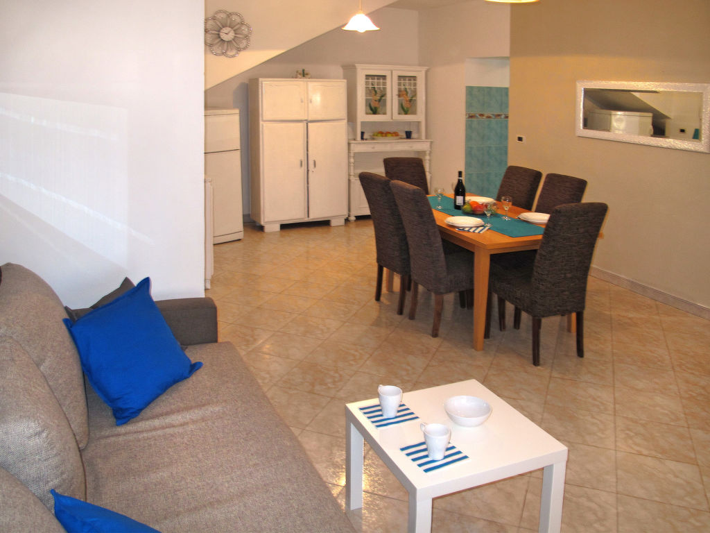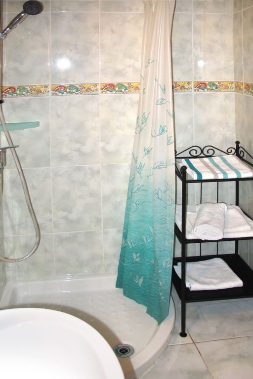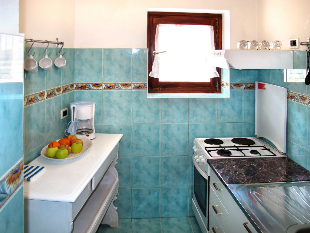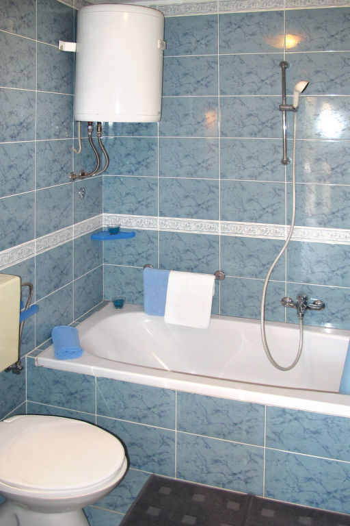 3-Zimmer-Haus, 2 Etagen, ca. 80 m². Erdgeschoss: Wohn-/Schlafraum mit Sitzgruppe, Doppelbettcouch, Essplatz, offene, kleine Küche (2 Flammen, 2 Platten, Backofen, Kühl-/Gefrierkombination, Kaffeemaschine, Wasserkocher, Toaster). Bad/WC. Vom Wohnraum Holztreppe ins Obergeschoss: Doppelzimmer mit Balkonausgang. Dusche/WC. Weitere Holztreppe vom Wohnraum ins Obergeschoss: Zweibettzimmer (offen zur Treppe). Dusche/WC.