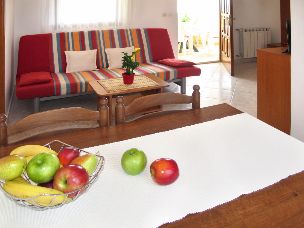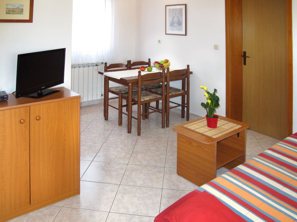 Mehrfamilienhaus "Laura". Im Ortsteil Ližnjan, 1.5 km vom Zentrum von Medulin, 10 km vom Zentrum von Pula, 1.5 km vom Meer, 2 km vom Strand. Zur Mitbenutzung: Grundstück 1'300 m2 (eingezäunt) mit Pflanzen und Bäumen, Schwimmbad eckig (8 x 4 m, 150 cm tief, saisonale Verfügbarkeit: 01.Mai.-01.Okt.). WC im Poolbereich, Aussendusche, Terrasse, Grill (Rutschbahn, Schaukel). Im Hause: Internetzugang, Trampolin. Parkplatz auf dem Grundstück. Einkaufsgeschäft 800 m, Supermarkt 1 km, Restaurant 500 m, Sandstrand 2 km. Sporthafen 2 km, Jacht-Hafen 2 km.