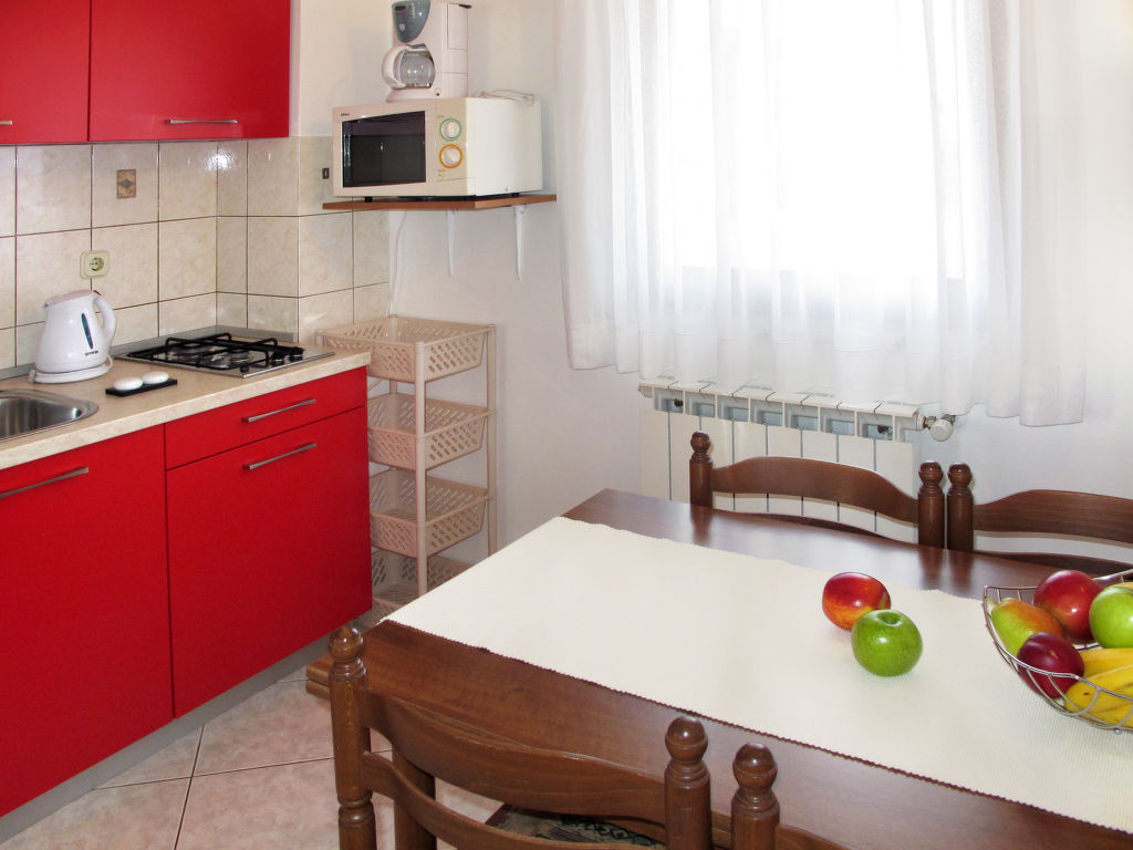 "Laura (MDN106)", 3-Zimmer-Wohnung 36 m2 im 1. Stock. Wohn-/Esszimmer mit Sat-TV und Klimaanlage. Ausgang zum Balkon. 1 Zimmer mit 1 Doppelbett. 1 Zimmer mit 1 x 2 Etagenbetten. Offene Küche (2 Flammen, Toaster, Wasserkocher, Mikrowelle, elektrische Kaffeemaschine). Dusche/WC. Balkon 10 m2. Balkonmöbel. Zur Verfügung: Safe, Bügeleisen. Internet (Wireless LAN, gratis). Bitte beachten: Nichtraucher-Haus. Eigener Eingang.