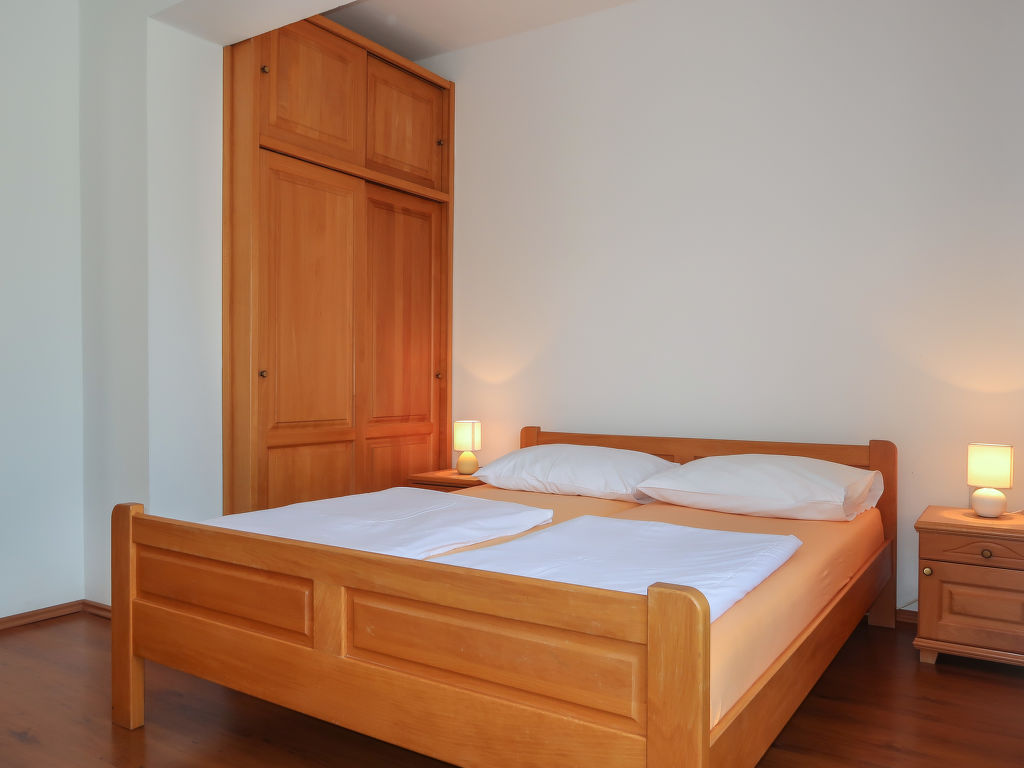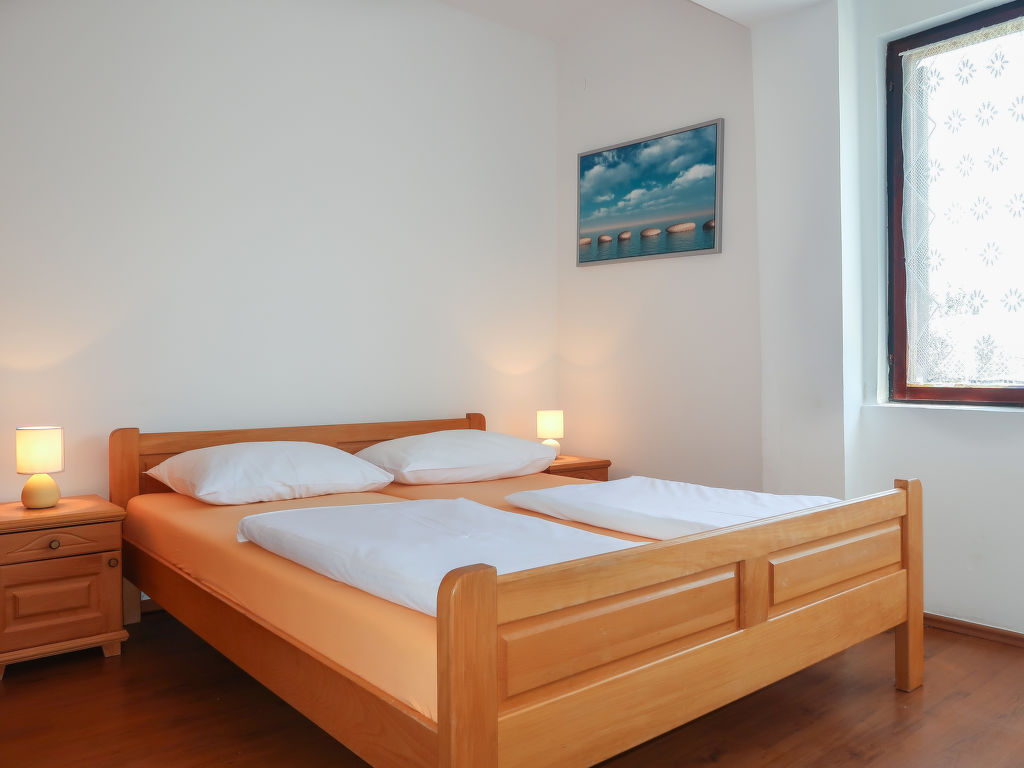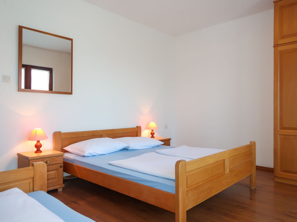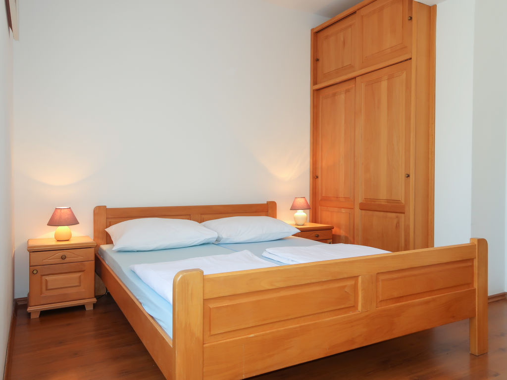 "Maravic (MLK162)", 6-Zimmer-Haus 140 m2 auf 2 Stockwerken. Wohn-/Esszimmer mit 1 Diwanbett (100 cm, Länge 185 cm), Küchenblock und Sat-TV. Ausgang zur Terrasse. Wohn-/Esszimmer mit 1 Diwanbett (100 cm, Länge 180 cm), Sat-TV. Ausgang zur Terrasse. Offene Küche (4 Kochplatten, Backofen, 4 Glaskeramikherd Platten, Toaster, Wasserkocher, Mikrowelle, Tiefkühler, elektrische Kaffeemaschine). 2 Duschen/WC. Obergeschoss: 2 Zimmer, jedes Zimmer mit 1 Bett (90 cm, Länge 200 cm), 1 Doppelbett (2 x 80 cm, Länge 200 cm). Ausgang zum Balkon. 2 Zimmer, jedes Zimmer mit 1 Doppelbett (2 x 80 cm, Länge 200 cm). Ausgang zum Balkon. 2 sep. WC's. 2 Balkone 15 m2, 2 Balkone, 2 Terrassen 15 m2, überdacht. Terrassenmöbel, Balkonmöbel, Liegestühle. Zur Verfügung: Internet (Wireless LAN, gratis). Bitte beachten: Nichtraucher-Haus. Maximal 2 Haustiere/Hunde erlaubt. Keine interne Verbindung zwischen den separaten Wohneinheiten. Die Anlage besteht aus zwei Häusern welche nur zusammen vermietet werden. .