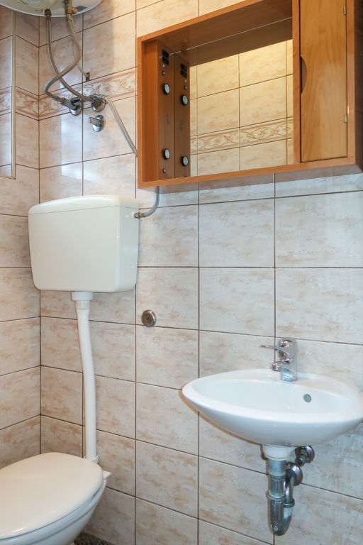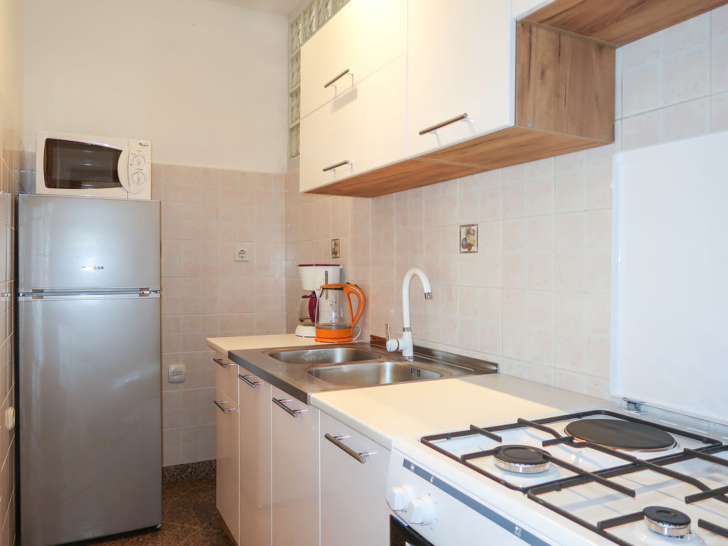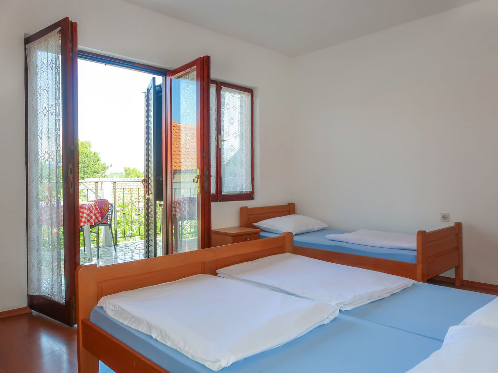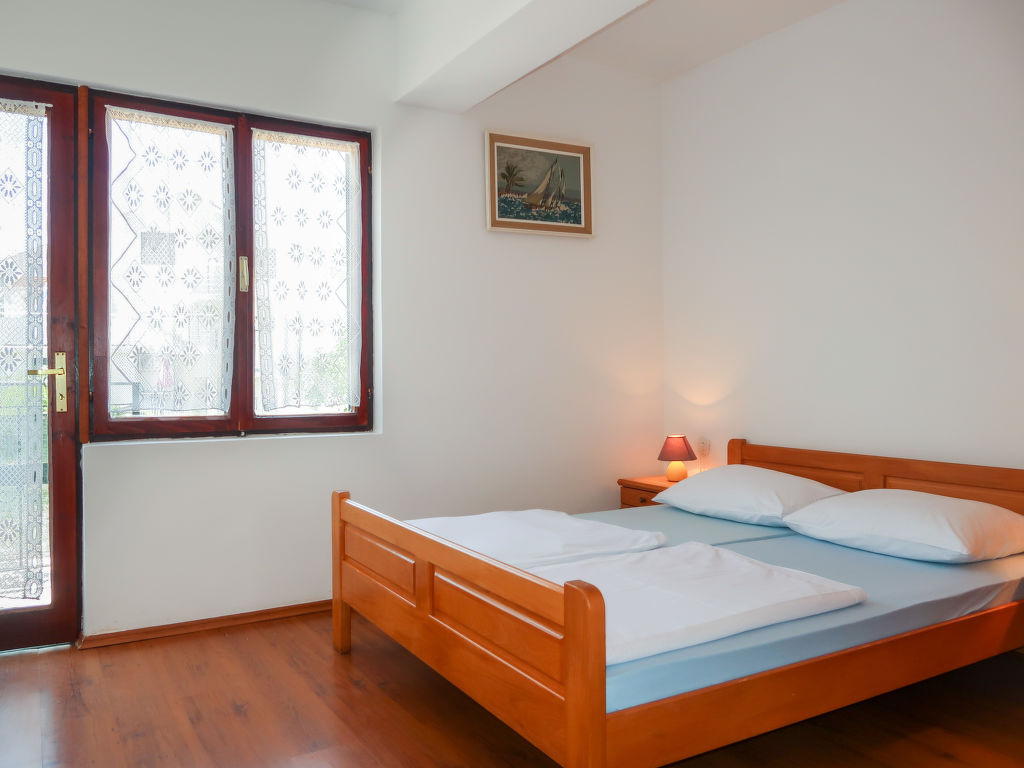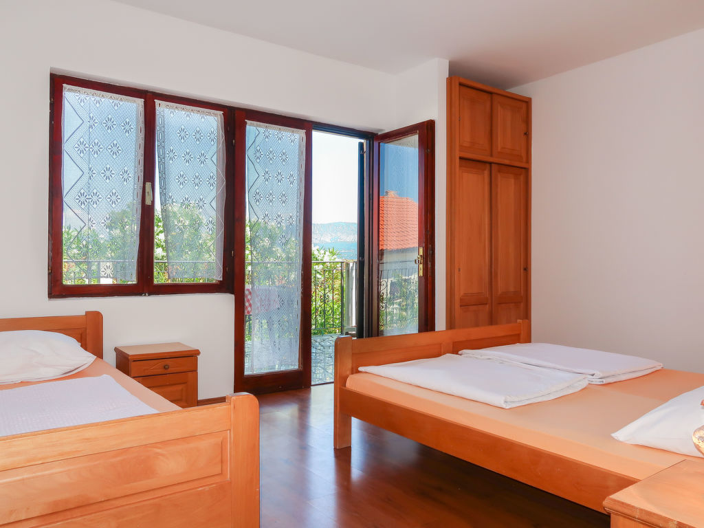 "Maravic (MLK162)", 6-Zimmer-Haus 140 m2 auf 2 Stockwerken. Wohn-/Esszimmer mit 1 Diwanbett (100 cm, Länge 185 cm), Küchenblock und Sat-TV. Ausgang zur Terrasse. Wohn-/Esszimmer mit 1 Diwanbett (100 cm, Länge 180 cm), Sat-TV. Ausgang zur Terrasse. Offene Küche (4 Kochplatten, Backofen, 4 Glaskeramikherd Platten, Toaster, Wasserkocher, Mikrowelle, Tiefkühler, elektrische Kaffeemaschine). 2 Duschen/WC. Obergeschoss: 2 Zimmer, jedes Zimmer mit 1 Bett (90 cm, Länge 200 cm), 1 Doppelbett (2 x 80 cm, Länge 200 cm). Ausgang zum Balkon. 2 Zimmer, jedes Zimmer mit 1 Doppelbett (2 x 80 cm, Länge 200 cm). Ausgang zum Balkon. 2 sep. WC's. 2 Balkone 15 m2, 2 Balkone, 2 Terrassen 15 m2, überdacht. Terrassenmöbel, Balkonmöbel, Liegestühle. Zur Verfügung: Internet (Wireless LAN, gratis). Bitte beachten: Nichtraucher-Haus. Maximal 2 Haustiere/Hunde erlaubt. Keine interne Verbindung zwischen den separaten Wohneinheiten. Die Anlage besteht aus zwei Häusern welche nur zusammen vermietet werden. .