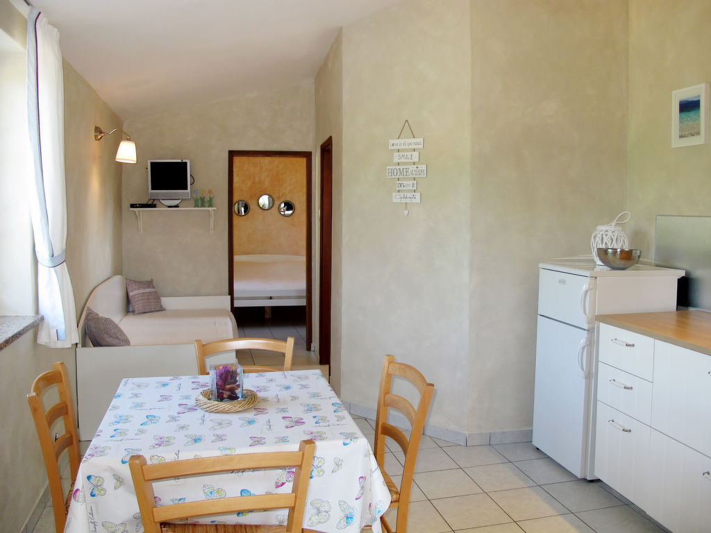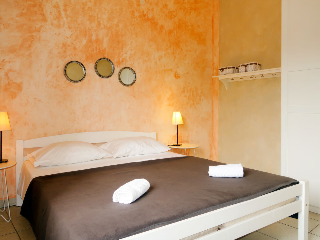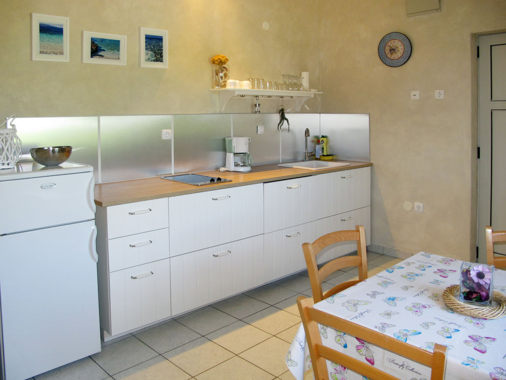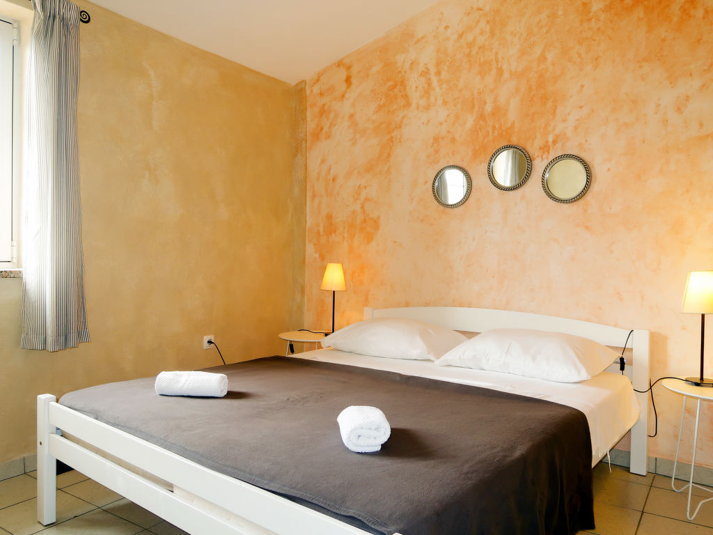 "Starcevic (MLK351)", 1-Zimmer-Wohnung 28 m2 im 1. Stock. 1 Zimmer mit 1 Doppelbett. Wohnküche (Geschirrspüler, 2 Glaskeramikherd Platten, Toaster, Wasserkocher, Tiefkühler, elektrische Kaffeemaschine) mit Esstisch, 1 Bett, Sat-TV und Klimaanlage. Ausgang zur Terrasse. Dusche/WC. Terrasse. Terrassenmöbel. Zur Verfügung: Internet (Wireless LAN, gratis). Bitte beachten: Nichtraucher-Haus. Maximal 1 Haustier/Hund erlaubt. Eigener Eingang.