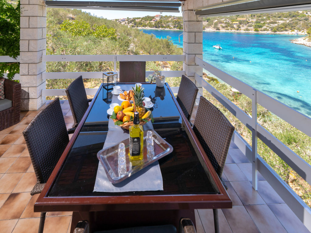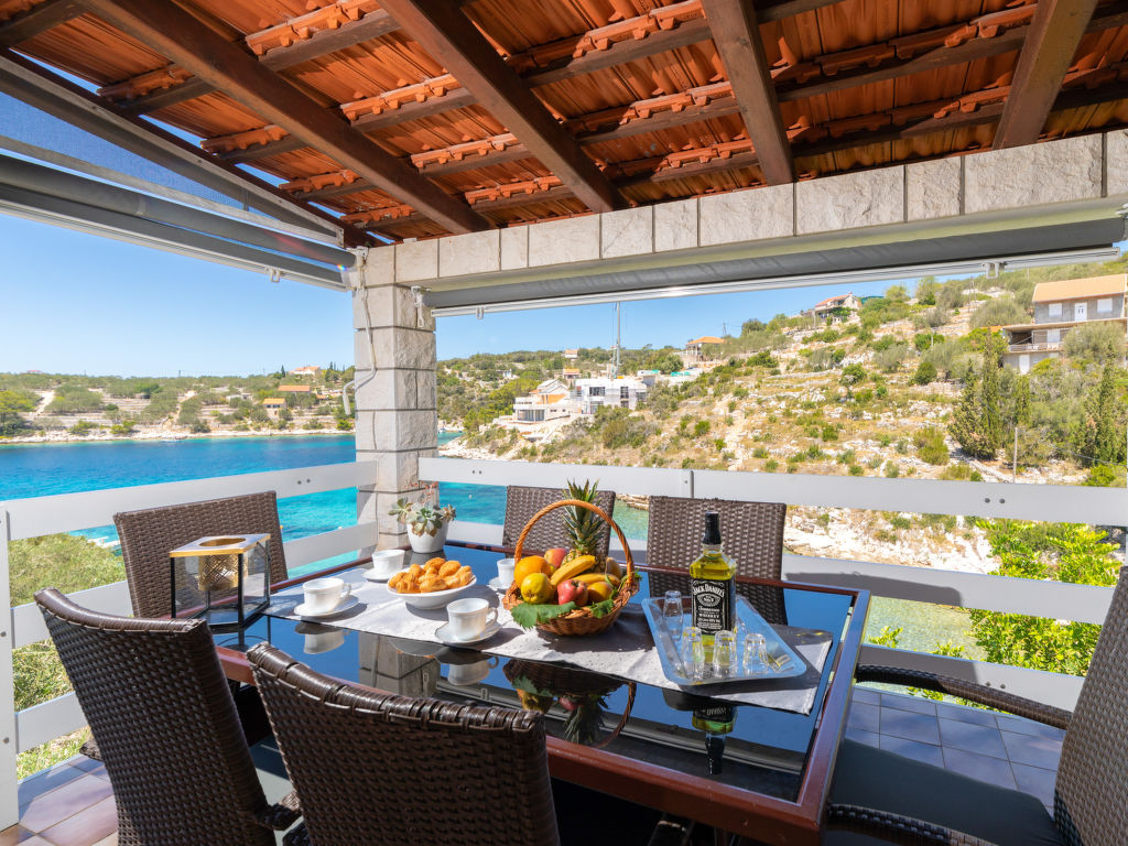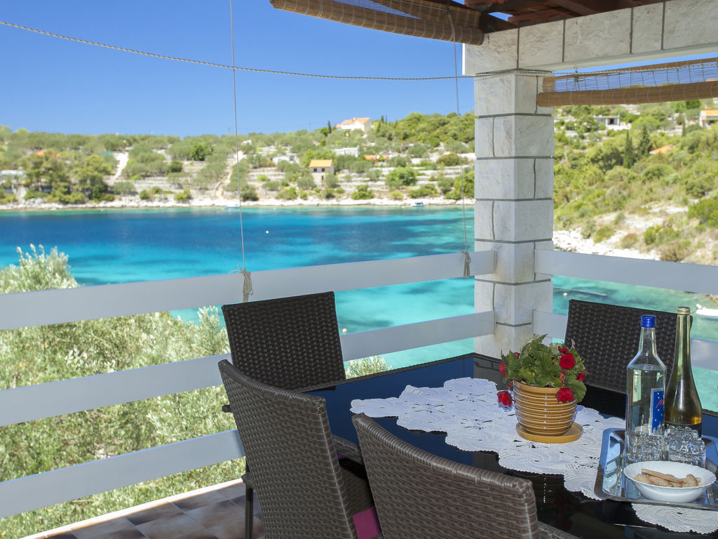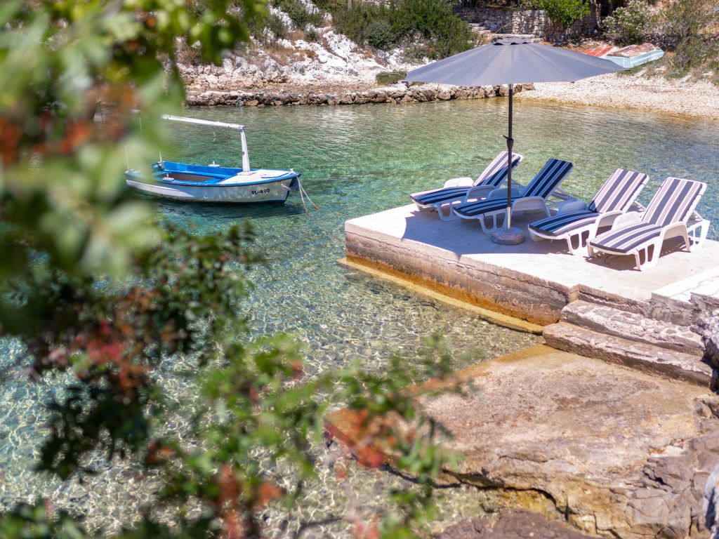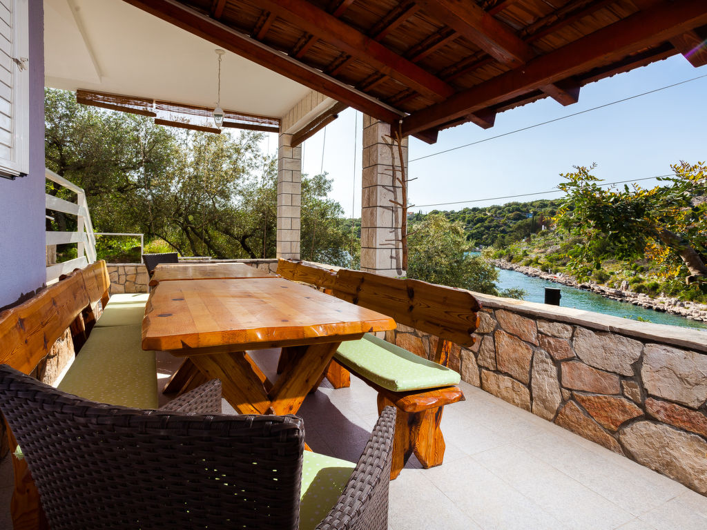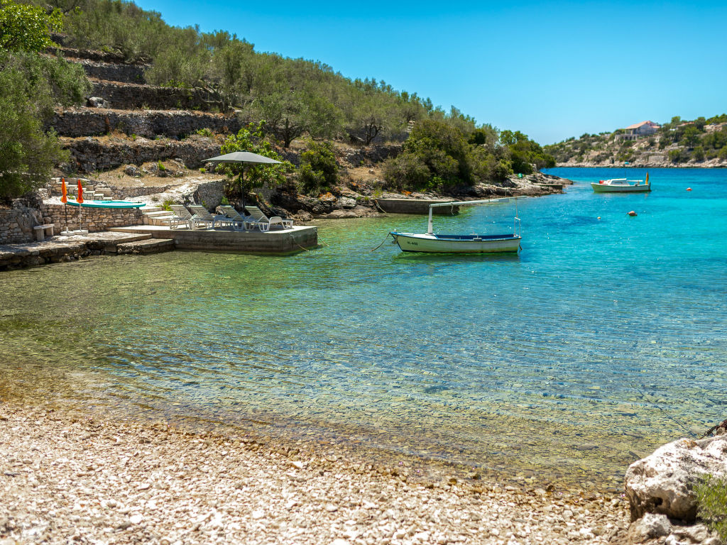 Stracincica 6 km von Vela Luka: Einfamilienhaus "Nataly", auf 2 Stockwerken. Ruhige, sonnige Lage am Hang, 20 m vom Meer, 20 m vom Strand, in einer Sackgasse, im Grünen, Richtung Westen. Zur Alleinbenutzung: Aussendusche, Sprudelbad, Grill. Im Hause: Internetzugang, Wäscherei. Holprige Zufahrt (1 km Naturweg). Parkplatz auf dem Grundstück. Einkaufsgeschäft 5 km, Restaurant 5 km, Steinstrand 50 m, Felsstrand 20 m.