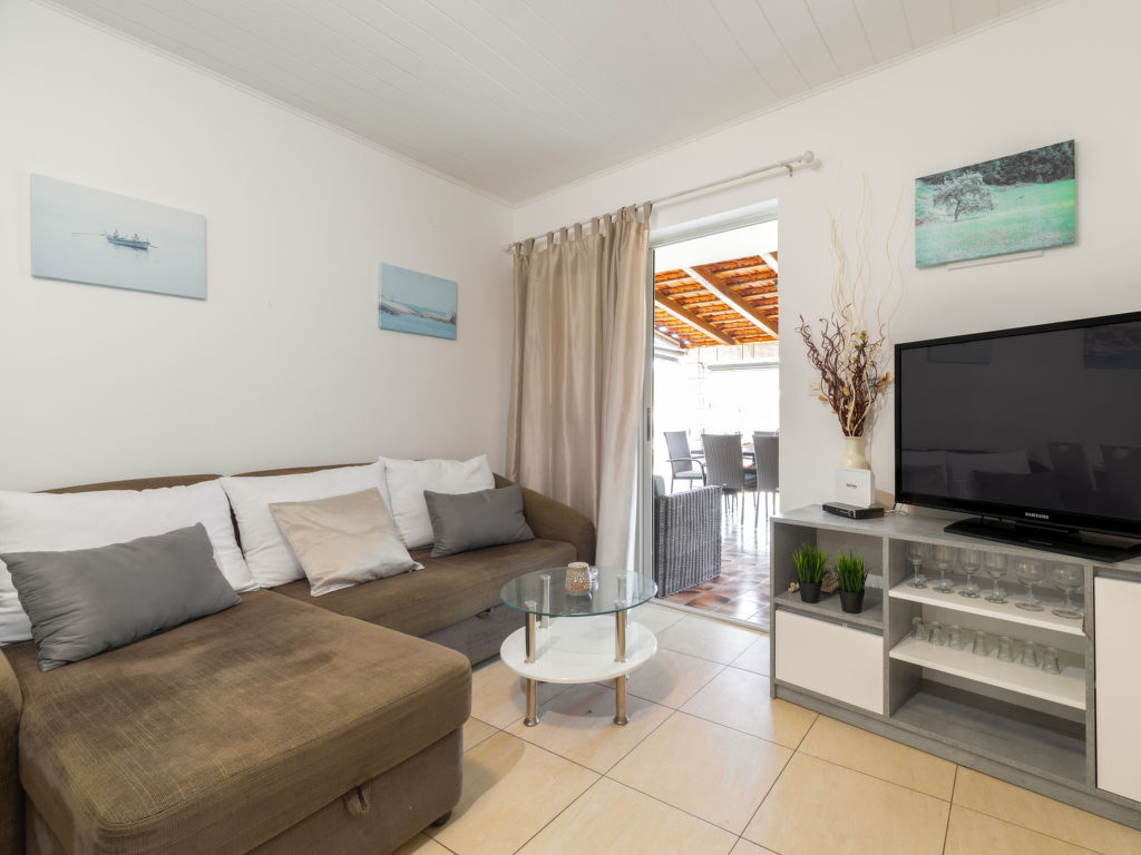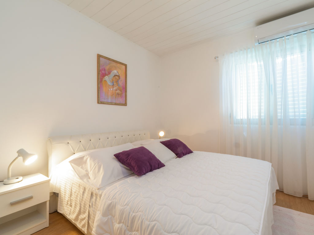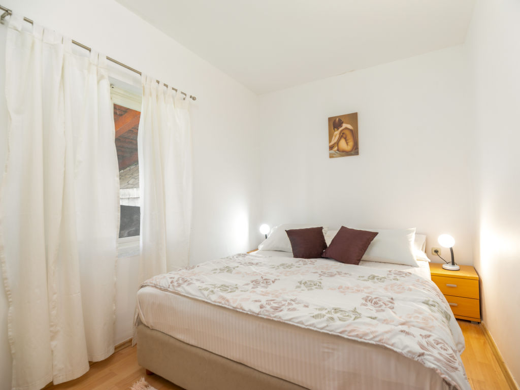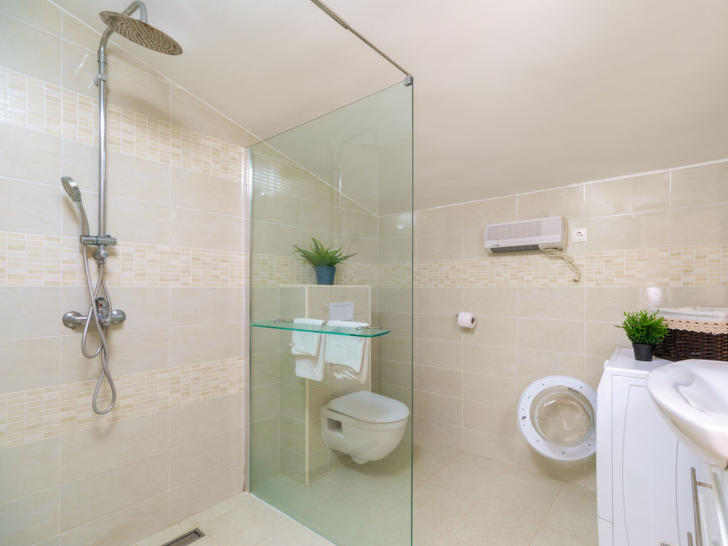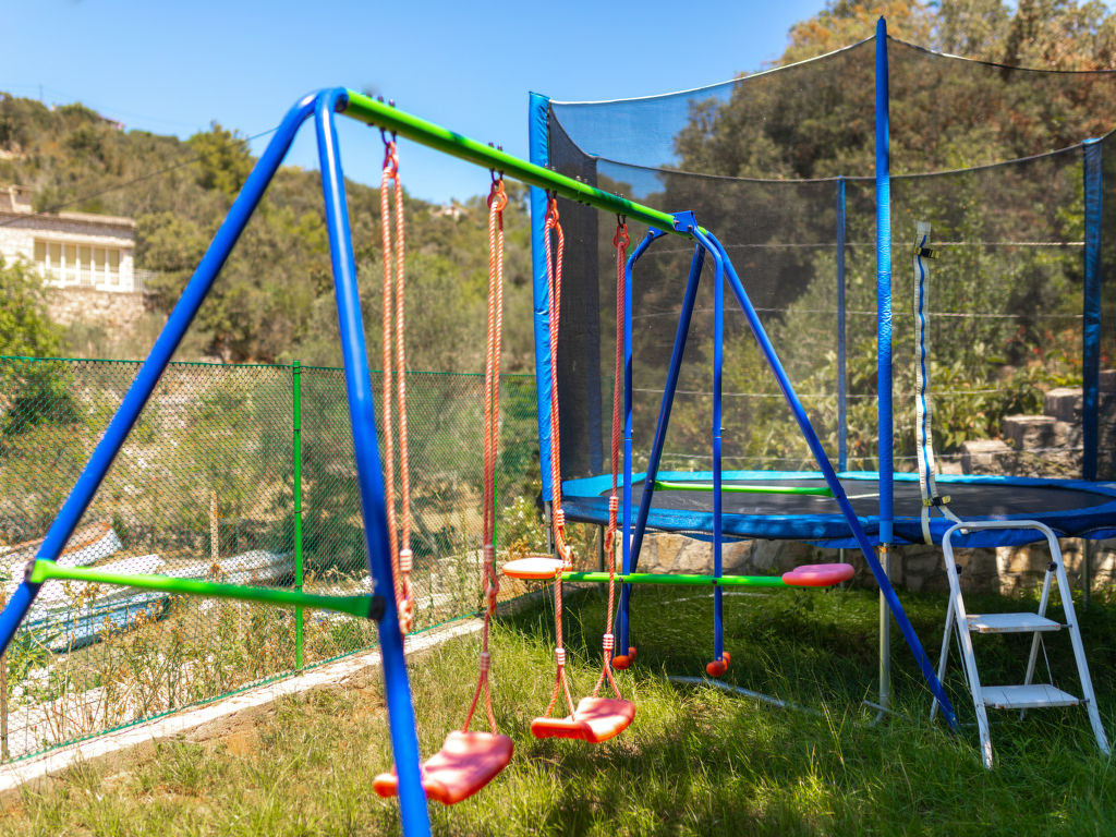 7-Zimmer-Haus 120 m2 auf 2 Stockwerken im 1. Stock. Wohn-/Esszimmer 17 m2 mit offenem Kamin und Sat-TV (Flachbildschirm), Klimaanlage. 1 Zimmer mit 1 franz. Bett (160 cm, Länge 200 cm). 1 Zimmer mit 2 Betten (100 cm, Länge 200 cm). Offene Küche (4 Kochplatten, Backofen, Tiefkühler). Dusche, sep. WC. Obergeschoss: (Aussentreppe) Wohn-/Esszimmer 26 m2 mit Sat-TV (Flachbildschirm), CD, Stereoanlage, DVD und Klimaanlage. Ausgang zur Terrasse. 1 Zimmer mit 1 franz. Bett (160 cm, Länge 200 cm), Klimaanlage. Ausgang zum Balkon. 2 Zimmer, jedes Zimmer mit 1 franz. Bett (160 cm, Länge 190 cm), Klimaanlage. Offene Küche (4 Kochplatten, Backofen, Geschirrspüler, Tiefkühler). 2 Duschen/WC. Terrasse 25 m2 teilweise überdacht, 2 Terrassen 18 m2, überdacht. Terrassenmöbel, Gartengrill, Liegestühle (6). Sicht auf das Meer. Zur Verfügung: Internet (Wireless LAN, gratis).