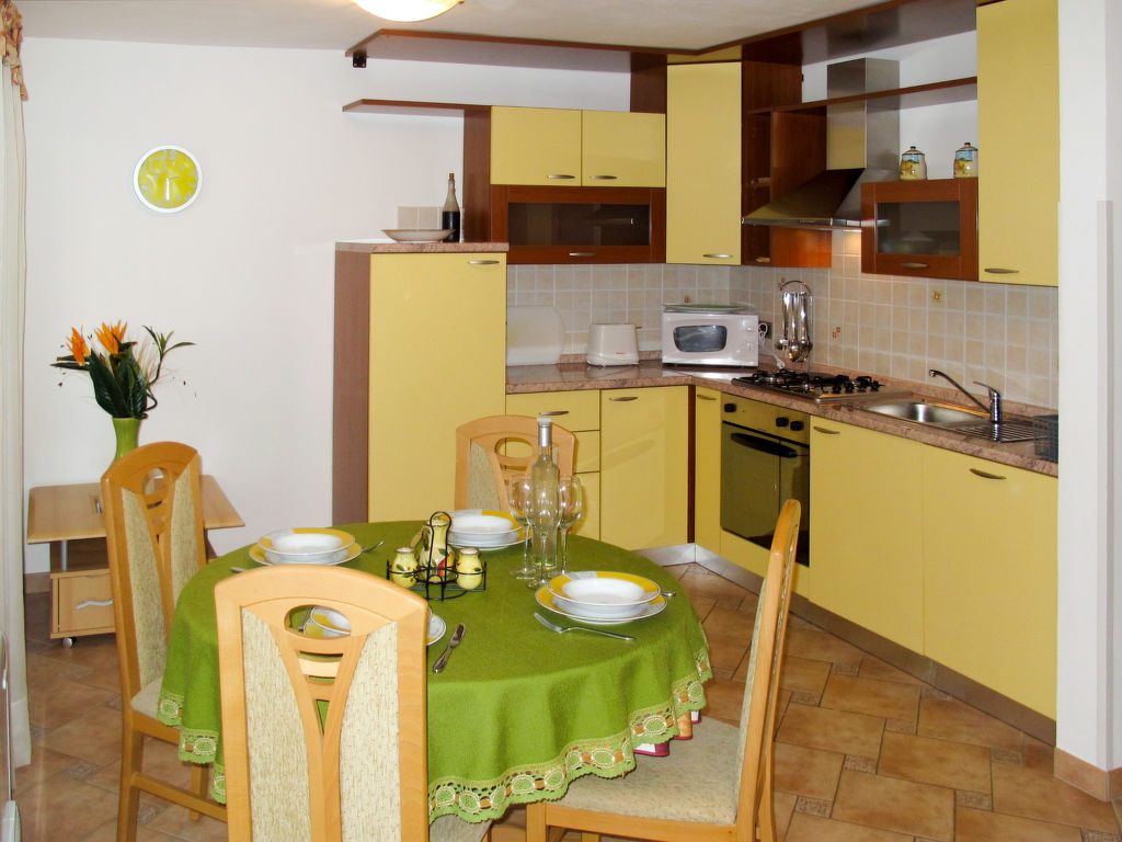 Haus LORY mit insgesamt 7 Wohnungen steht in steiler Hanglage in Rabac, mit Blick auf die Bucht und die Insel Cres. Ortsmitte mit Einkaufsmöglichkeiten, Restaurants und kleinem Hafen ca. 400 m. Kiesstrand ca. 800 m. Zugang zum Haus über 70 Treppenstufen. Teilabgeschlossenes, ca. 800 m² großes Grundstück. Gasgrill zur gemeinsamen Nutzung. Pro Wohnung ein Parkplatz auf dem Grundstück. 2 Garagenplätze (€ 4 pro Tag, je nach Verfügbarkeit). Die Ferienwohnungen haben jeweils einen teilüberdachten Balkon mit Mobiliar und Meerblick. Freundliche, feriengerechte Einrichtung. Fliesen- und Laminatboden. Jeweils Sat-TV (deutsche Programme), Internetzugang (WLAN, inklusive). Waschmaschine beim Vermieter, der im Haus wohnt (Bezahlung). Klimaanlage im Wohnraum und in den Schlafzimmern. Öl-Zentralheizung. Hinweis: Rauchen ist in den Wohnungen nicht gestattet. Videoüberwachung der Einfahrt und des Parkplatzes. .