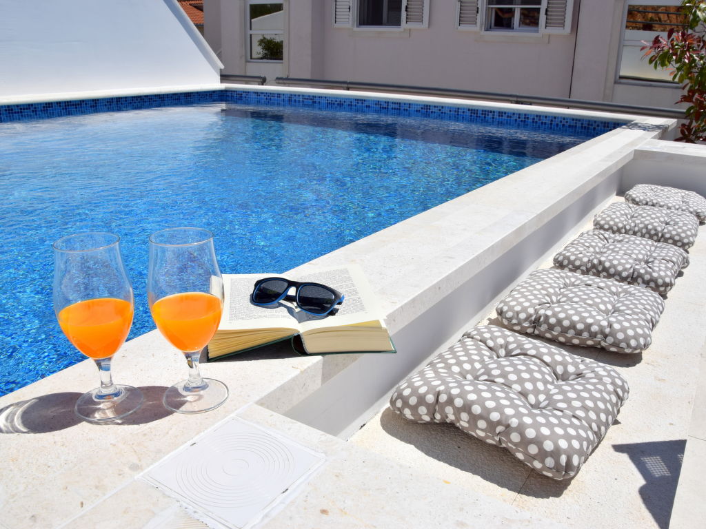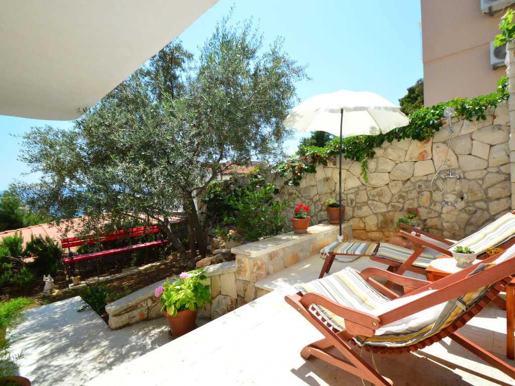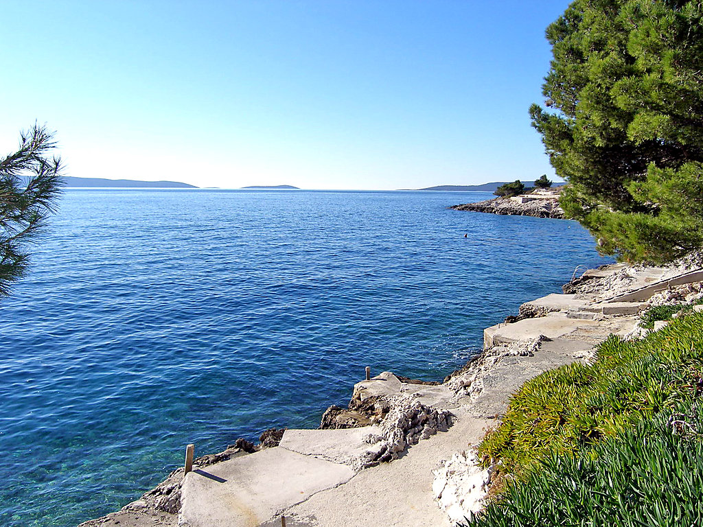 Okrug Gornji (Čiovo) 6 km von Trogir: Mehrfamilienhaus "Villa Meri". 1.5 km vom Zentrum von Okrug Gornji, ruhige, sonnige, erhöhte Lage, 60 m vom Meer, 60 m vom Strand. Zur Mitbenutzung: Schwimmbad eckig (7 x 4 m, 30 m2, 140 cm tief, saisonale Verfügbarkeit: 01.Mai.-15.Okt.) mit Innentreppe. Aussendusche, Terrasse (60 m2), Gartenmöbel, Grill. Im Hause: Internetzugang. Zufahrt bis zum Haus. Parkplatz in 100 m auf dem Grundstück. Einkaufsgeschäft 250 m, Restaurant 200 m, Kieselstrand 150 m, Felsstrand 60 m. Bitte beachten: Flugplatz 6 km vom Haus. In diesem Haus sind weitere Ferienwohnungen mietbar. Ferienwohnung Ref. HR4910.303 befindet sich auf dem gleichen Grundstück.