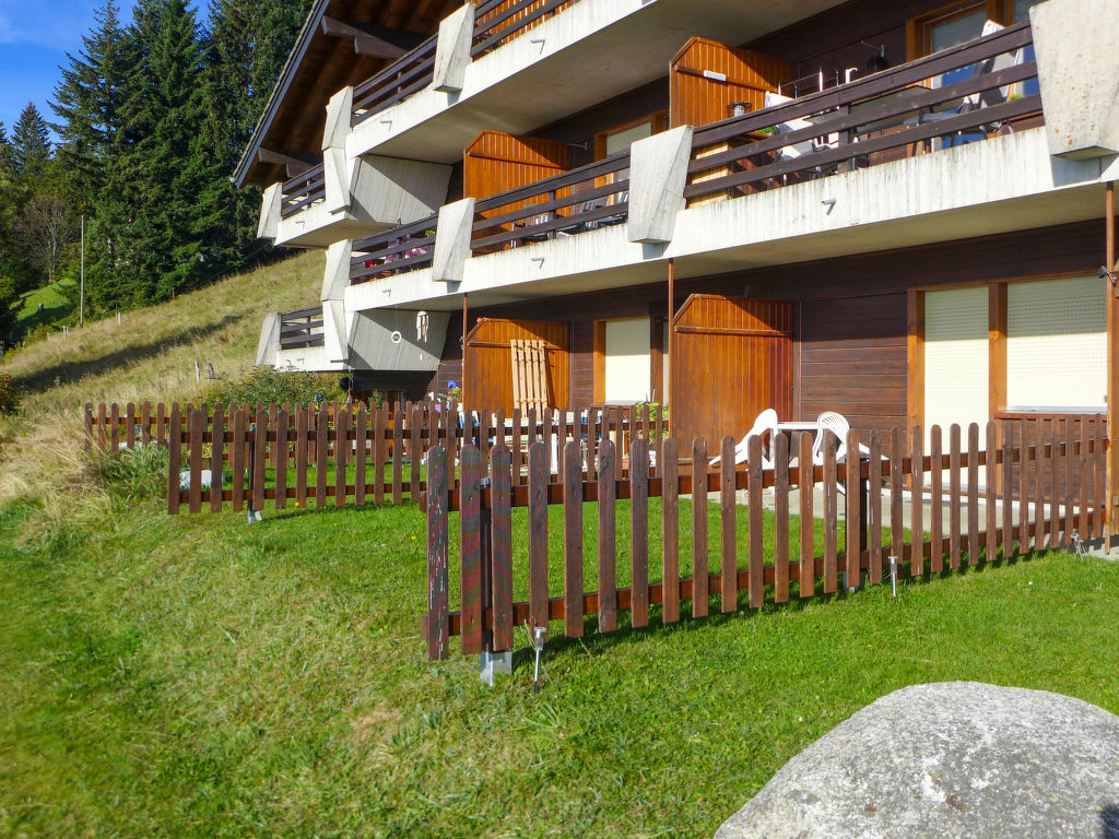 1-Zimmer-Wohnung 25 m2, im Erdgeschoss, Südlage. Zweckmässig eingerichtet: Wohn-/Schlafzimmer mit 2 Ausziehbetten (2 Pers. 2 x 90 cm), offenem Kamin, Esstisch, Digital-TV, Internationale TV-Sender und Flachbildschirm. Ausgang zum Gartensitzplatz. Kochnische (4 Kochplatten, Backofen, Mikrowelle, Fondue Set (Käse)). Bad/WC. Heizung. Südlage, kleiner Gartensitzplatz. Terrassenmöbel. Schöne Sicht auf die Berge und das Tal. Zur Verfügung: Babybett bis 2 Jahre (extra). Internet (Wireless LAN, gratis). Parkplatz.