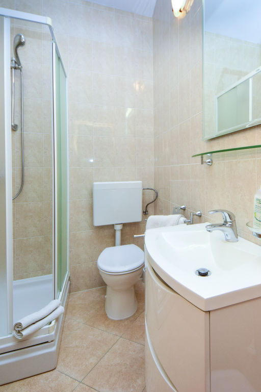 Schönes Mehrfamilienhaus "Mare". 200 m vom Zentrum von Trogir, ruhige, sonnige Lage, 300 m vom Meer. Zur Mitbenutzung: Grundstück 1'600 m2 (eingezäunt) mit Rasen 600 m2, Schwimmbad eckig beheizt (10 x 5 m, 140 cm tief, saisonale Verfügbarkeit: 02.Apr.-15.Okt.) mit Innentreppe. Aussendusche, Terrasse, Gartenmöbel, Grill, Kinderspielplatz (Schaukel). Im Hause: Internetzugang, Tischtennis. Parkplatz beim Haus auf dem Grundstück. Einkaufsgeschäft 50 m, Restaurant 300 m, Kieselstrand 1.5 km. Bitte beachten: In diesem Haus sind weitere Ferienwohnungen mietbar. Schwimmbad mit Gegenstromanlage.