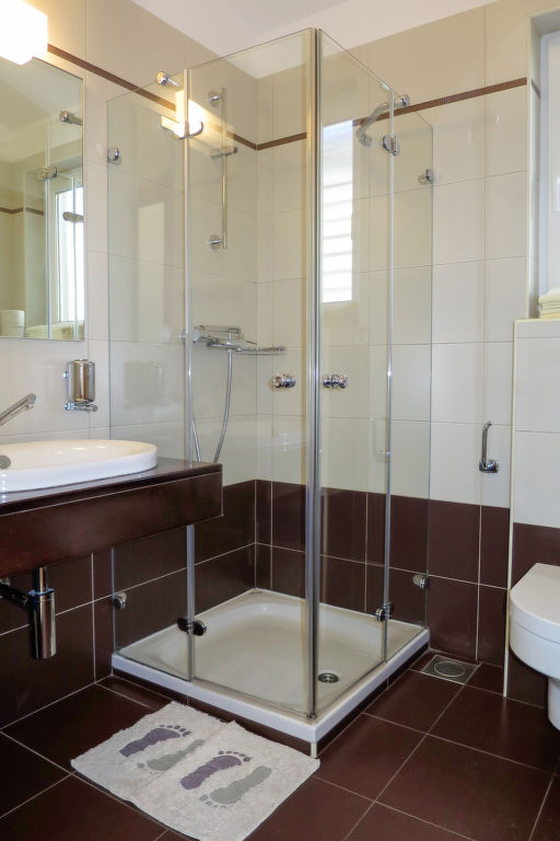 "Milevoj (RAC143)", 2-Zimmer-Wohnung 30 m2 im 2. Stock. Modern eingerichtet: Wohn-/Esszimmer mit 1 Diwanbett, Esstisch, Sat-TV und Klimaanlage. 1 Zimmer mit 1 franz. Bett. Offene Küche (Backofen, 4 Glaskeramikherd Platten, elektrische Kaffeemaschine). Ausgang zur Terrasse. Dusche/WC. Terrasse 10 m2. Terrassenmöbel. Sicht auf das Meer. Zur Verfügung: Internet (Wireless LAN, gratis). Parkplatz (1 Auto). Bitte beachten: Kühlschrank ohne Gefrierfach, Nichtraucher-Unterkunft.
