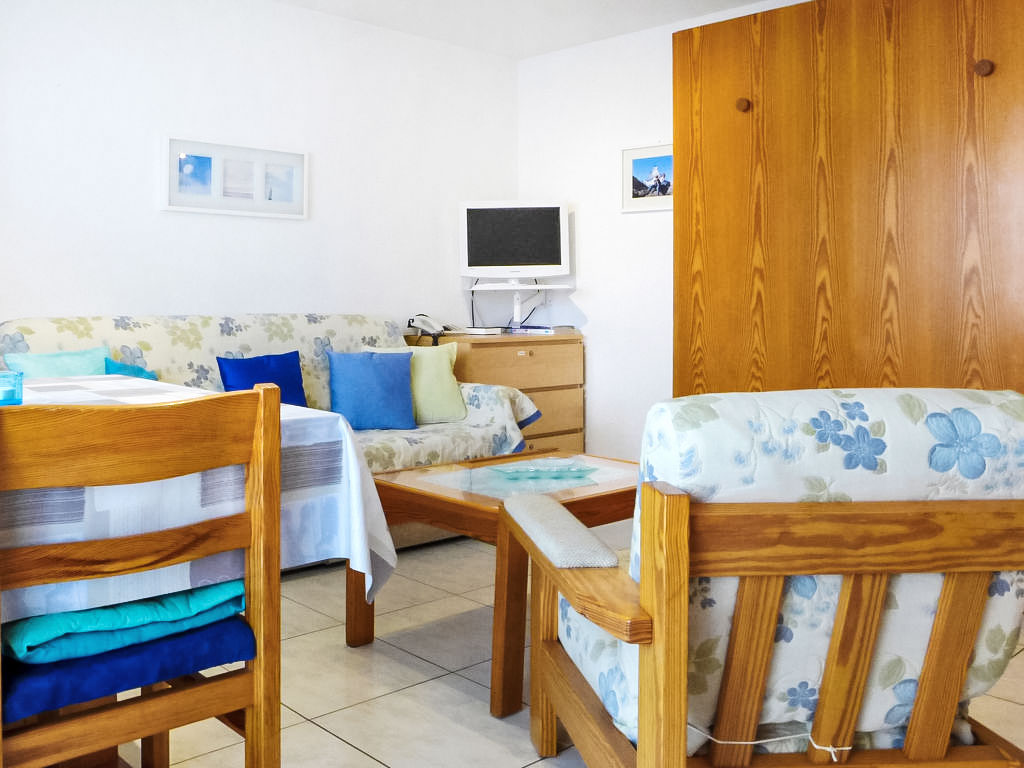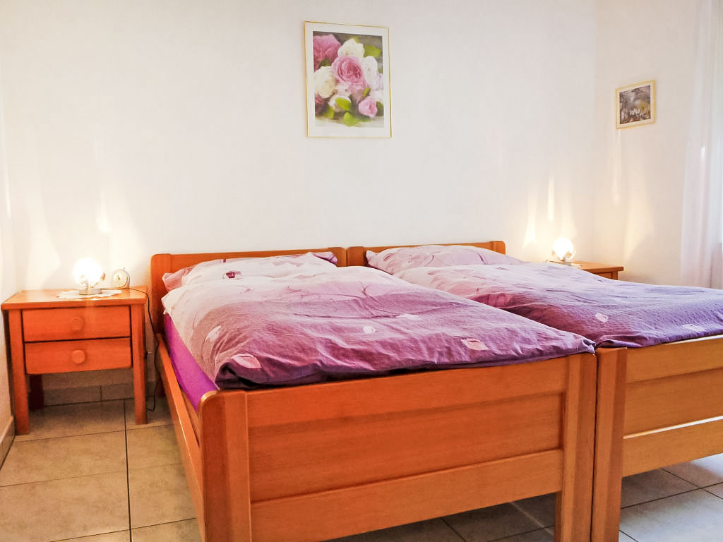 2-Zimmer-Wohnung 65 m2, im Erdgeschoss. Komfortabel und schön eingerichtet: Wohn-/Schlafzimmer mit 1 Doppelwandklappbett (140 cm, Länge 200 cm), offenem Kamin, Esstisch und TV. Ausgang zur Terrasse. 1 Doppelzimmer mit 2 Betten (90 cm, Länge 200 cm). Küche (3 Kochplatten, Backofen, Geschirrspüler, Toaster, Wasserkocher, Tiefkühler, elektrische Kaffeemaschine, Racletteofen, Fondue Set (Käse)). Dusche/WC. Terrasse 15 m2 teilweise überdacht, Südlage und Westlage. Terrassenmöbel. Seitliche Sicht auf die Berge. Zur Verfügung: Haartrockner. Internet (Wireless LAN, gratis). Bitte beachten: Nichtraucher-Unterkunft. Maximal 1 Haustier/Hund erlaubt.