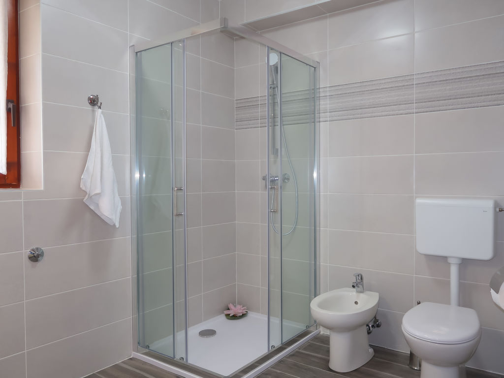 Haus ANIVIJA mit insgesamt 4 Wohnungen steht in guter Lage in einem Wohn- und Ferienhausgebiet von Njivice auf der Insel Krk. Fels-/Kiesstrand mit Badeplatten ca. 250 m. Ortsmitte mit Einkaufsmöglichkeit ca. 500 m. Malinska 6 km. Krk Stadt 18 km. Punat 23 km. Von Mauer und Hecken umgebenes, ca. 1000 m² großes Grundstück mit abschließbarem Einfahrtstor, Rasen, Obstbäumen und Weinreben. Gemauerter Grill zur gemeinsamen Nutzung der Gäste mit den Vermietern, die in der 1. Etage wohnen. Zur Wohnung gehört eine große, teilüberdachte Terrasse mit Mobiliar, Markise und Meerblick sowie eine überdachte Terrasse und 2 Liegestühle. 2 Fahrräder (Anfrage/Bezahlung). 2 Parkmöglichkeiten auf dem Grundstück. Gute, ansprechende Einrichtung. Fliesen- und Holzdielenböden. Sat-TV (deutsche Programme), DVD. Internetzugang (WLAN, inklusive). Klimaanlage mit Kühl-/Heizfunktion im Wohnraum. Elektro-Zustellheizung. Waschmaschine beim Vermieter (€ 5,-/Waschgang). Hinweis: Rauchen ist im Objekt nicht gestattet.