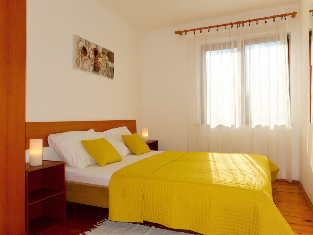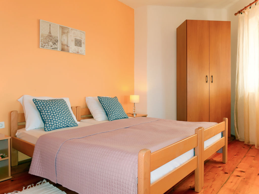 "Anivija (NJI120)", 3-Zimmer-Wohnung 70 m2, im Erdgeschoss. Wohn-/Schlafzimmer mit 1 Diwanbett (110 cm, Länge 180 cm), Esstisch, Sat-TV, DVD und Klimaanlage. 1 Zimmer mit 1 Doppelbett (2 x 90 cm, Länge 200 cm). 1 Zimmer mit 1 Doppelbett (2 x 80 cm, Länge 200 cm). Offene Küche (4 Kochplatten, Backofen, Toaster, Wasserkocher, Tiefkühler, elektrische Kaffeemaschine). Dusche/WC, sep. WC. Terrasse 20 m2 teilweise überdacht Terrasse 12 m2, überdacht. Terrassenmöbel, Liegestühle (2). Sicht auf das Meer. Zur Verfügung: Internet (Wireless LAN, gratis). Parkplatz (2 Autos). Bitte beachten: Nichtraucher-Haus. 1 kleines Haustier/Hund erlaubt. Eigener Eingang.
