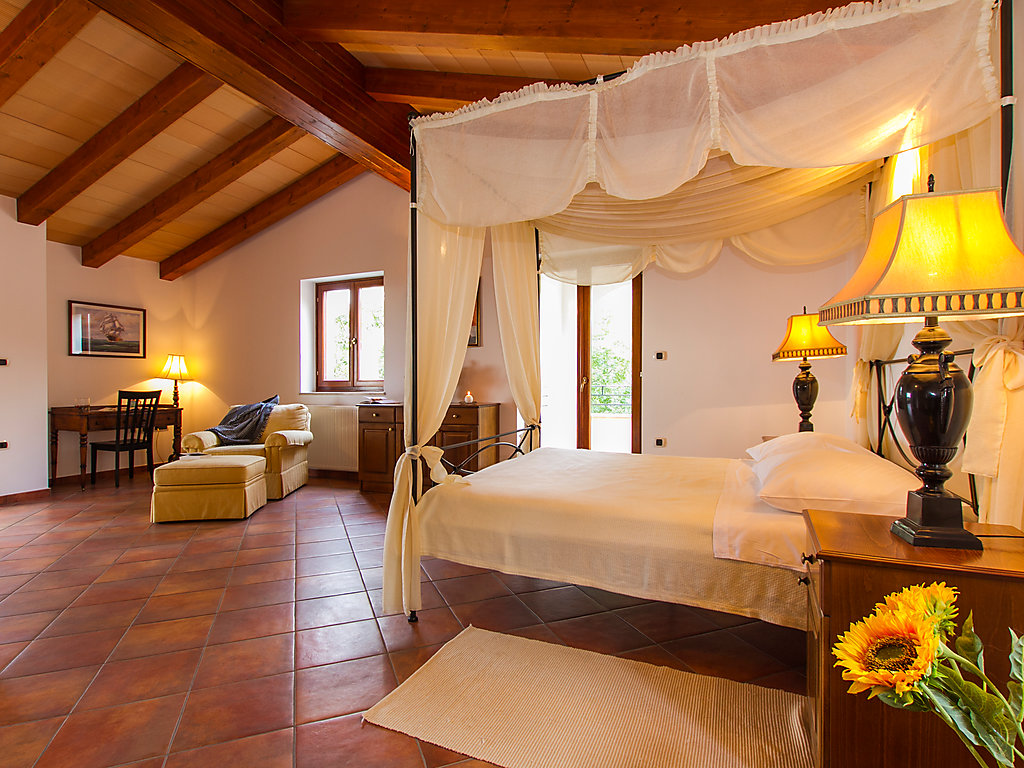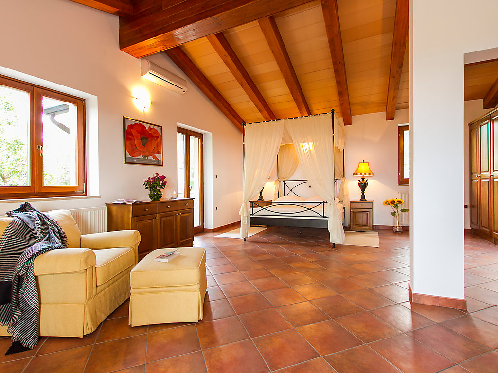 5-Zimmer-Villa 220 m2 auf 2 Stockwerken. Schön und geschmackvoll eingerichtet: grosses Wohn-/Esszimmer 55 m2 mit offenem Kamin und Sat-TV (Flachbildschirm), DVD und Klimaanlage. Ausgang zur Terrasse. 1 Zimmer mit 2 Betten (80 cm, Länge 190 cm), Klimaanlage. Offene Küche (4 Kochplatten, Backofen, Geschirrspüler, Mikrowelle, Tiefkühler). Bad/Dusche/WC. Obergeschoss: 1 grosses Zimmer 34 m2 mit 1 franz. Bett (160 cm, Länge 190 cm), Bad/Bidet/WC und Klimaanlage. Ausgang zur Terrasse. 1 Zimmer mit 1 franz. Bett (160 cm, Länge 190 cm), Bad/Bidet/WC und Klimaanlage. Ausgang zur Terrasse. 1 Zimmer mit 1 franz. Bett (160 cm, Länge 190 cm), Dusche/Bidet/WC und Klimaanlage. Ausgang zur Terrasse. Grosse Terrasse 30 m2, überdacht, 3 Terrassen 4 m2. Terrassenmöbel, Gartengrill (mobil). Fernsicht auf das Meer. Zur Verfügung: Waschmaschine, Babybett. Internet (Wireless LAN, gratis).