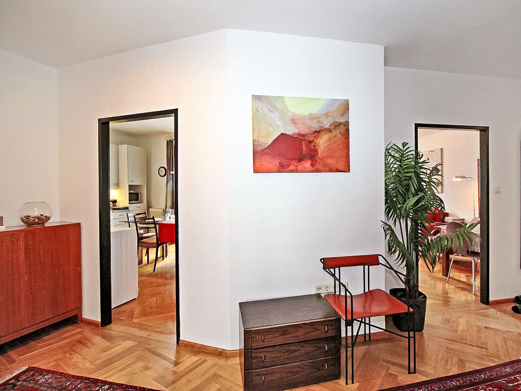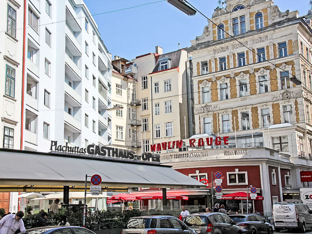 1.Bezirk: Appartementhaus "Opera". Zentrale Lage, im Herzen der Stadt. Im Hause: Fahrstuhl, Zentralheizung. Zufahrt bis zum Haus. Öffentliches Parkhaus in 50 m. Gebührenpflichtige Kurzparkzone, Zeit: 09:00 - 22:00, Montag - Freitag. Supermarkt 100 m, Restaurant 10 m, Bäckerei 50 m, Café 10 m, Fußgängerzone 50 m, Zentrum zu Fuss in 1 Minuten erreichbar, Straßenbahn "1,2,71,D Oper" 200 m, U-Bahnstation "U4, U1 Karlsplatz" 150 m, Park "Burggarten" 350 m. Nahe gelegene Sehenswürdigkeiten: Oper 100 m, Stephansdom 700 m, Karlskirche 600 m, Kärtnerstrasse 50 m. Es kann auf Anfrage ein Transfer ab Flughafen zum Ferienobjekt organisiert werden.