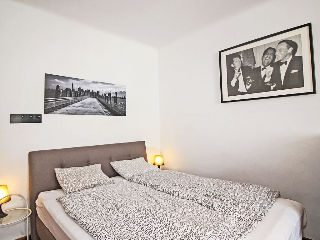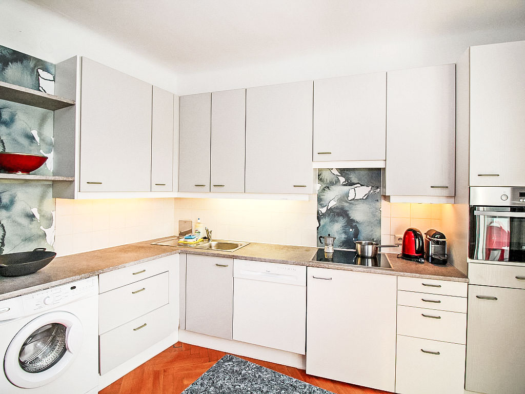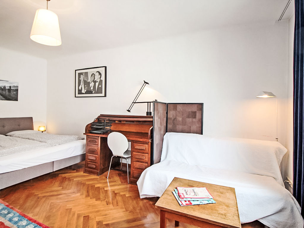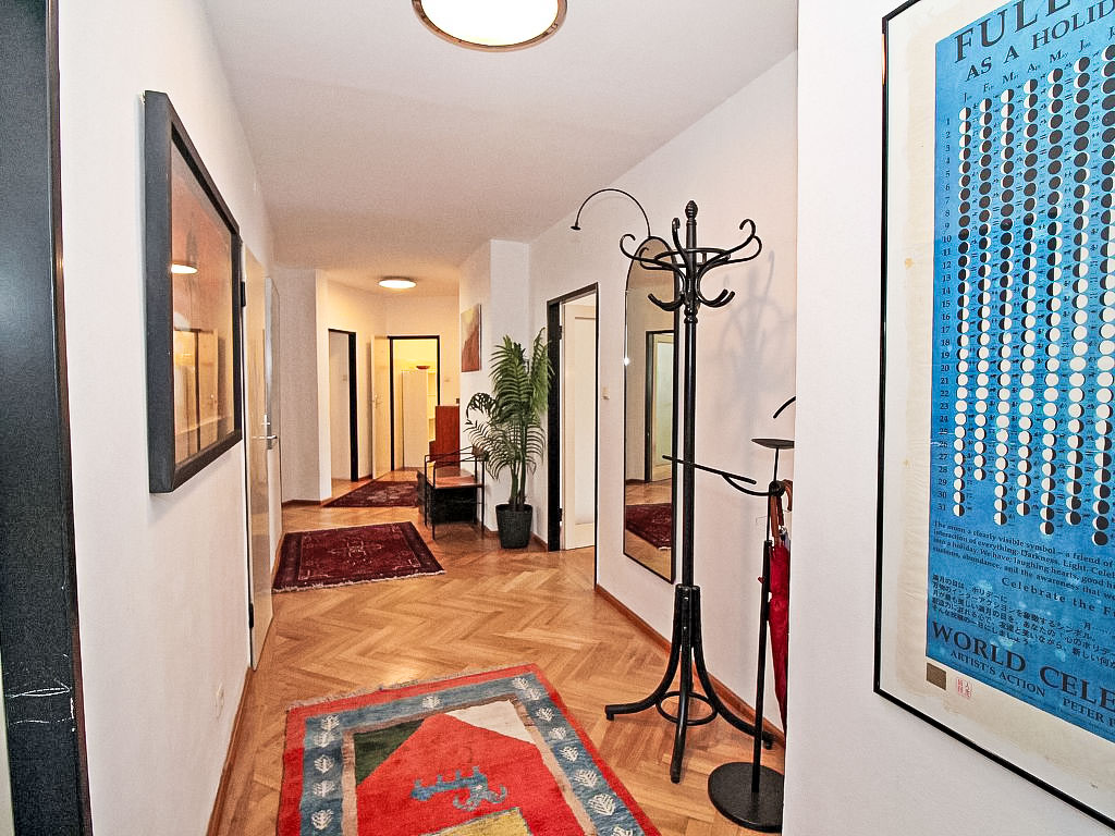 4-Zimmer-Wohnung 114 m2 im 7. Stock. Geräumig und hell, stilvoll und gemütlich eingerichtet: grosser Eingang. Grosses Wohnzimmer mit Kabel-TV, Internationale TV-Sender, Flachbildschirm, Stereoanlage, DVD und Ventilator. 1 grosses Doppelzimmer mit begehbarer Kleiderschrank mit Kabel-TV, Internationale TV-Sender, Flachbildschirm und Ventilator. 1 grosses Zimmer mit 2 Doppelbetten und Stereoanlage. Grosse, offene Küche (Backofen, Geschirrspüler, 4 Glaskeramikherd Platten, Mikrowelle, elektrische Kaffeemaschine) mit Esstisch. Ausgang zum Balkon. Bad/WC, Dusche/WC. Parkettböden. Kleiner Balkon. Balkonmöbel. Seitliche Sicht auf die Stadt. Zur Verfügung: Bügeleisen, Haartrockner. Internet (Wireless LAN, gratis). Bitte beachten: geeignet für Familien. Nichtraucher-Unterkunft. 1 Haustier/Hund erlaubt.