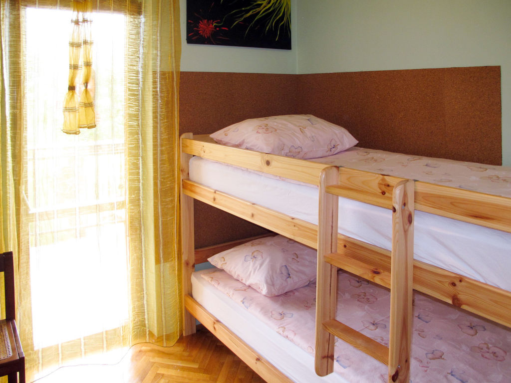 "Ornela (LBN321)", 4-Zimmer-Wohnung 100 m2 auf 2 Stockwerken. Wohn-/Esszimmer mit 1 Doppeldiwanbett (150 cm), Sat-TV (Flachbildschirm), Klimaanlage. Ausgang zur Terrasse. Offene Küche (1 Kochplatte, Geschirrspüler, 3 Flammen, Toaster, Wasserkocher, Mikrowelle, Tiefkühler, elektrische Kaffeemaschine). Dusche/WC. Obergeschoss: 1 Zimmer mit 2 Betten. Ausgang zum Balkon. 1 Zimmer mit 1 franz. Bett (180 cm). Ausgang zum Balkon. 1 Zimmer mit 1 x 2 Etagenbetten. Ausgang zum Balkon. Bad/Bidet/WC. Heizung. 2 Balkone, Terrasse. Balkonmöbel, Liegestühle. Zur Verfügung: Waschmaschine, Bügeleisen, Babybett. Internet (Wireless LAN, gratis). Bitte beachten: Nichtraucher-Unterkunft. Maximal 2 Haustiere/Hunde erlaubt.