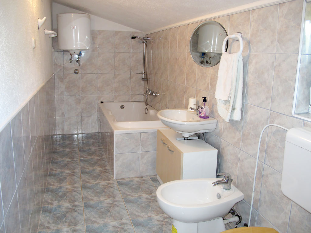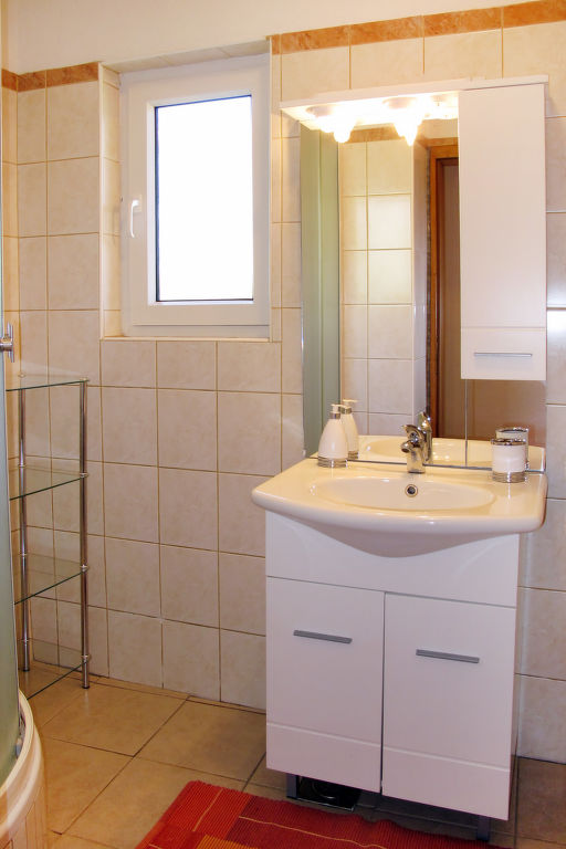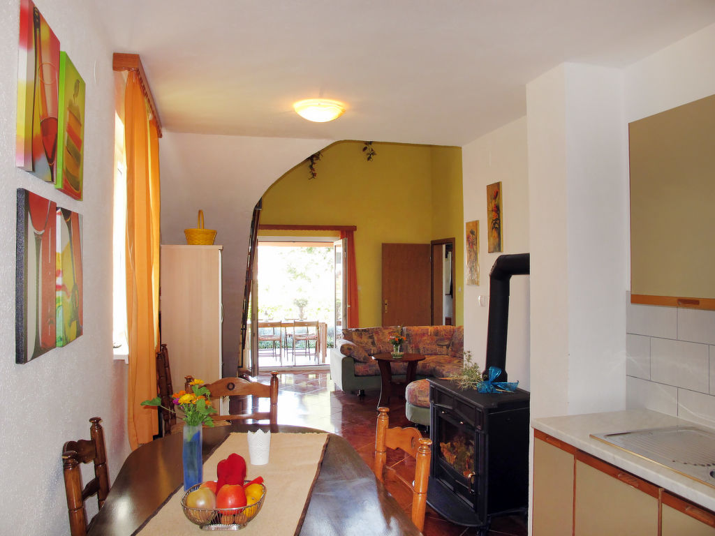Haus PARADISO steht im Weiler Kampelje auf der Insel Krk. Nächste Einkaufsmöglichkeit in Garica 3,4 km. Vrbnik 5,5 km. Fels-/Kiesstrand 7 km. Krk Stadt 13 km. Malinska 14 km. Zufahrt zum Haus 3,7 km über schmale Straße. Gepflegtes, eingezäuntes, ca. 630 m² großes Grundstück mit Rasen. 2 überdachte Terrassen mit Mobiliar. Gemauerter Grill. Außendusche. 2 Parkmöglichkeiten auf dem Grundstück. Der Vermieter bewohnt zeitweise ein separates Nebengebäude zur Grundstückspflege. Gemütliche, gute Einrichtung. Fliesen- und Laminatboden. Sat-TV (deutsche Programme). Waschmaschine. Bügeleisen/-brett. Elektro-Zustellheizung.