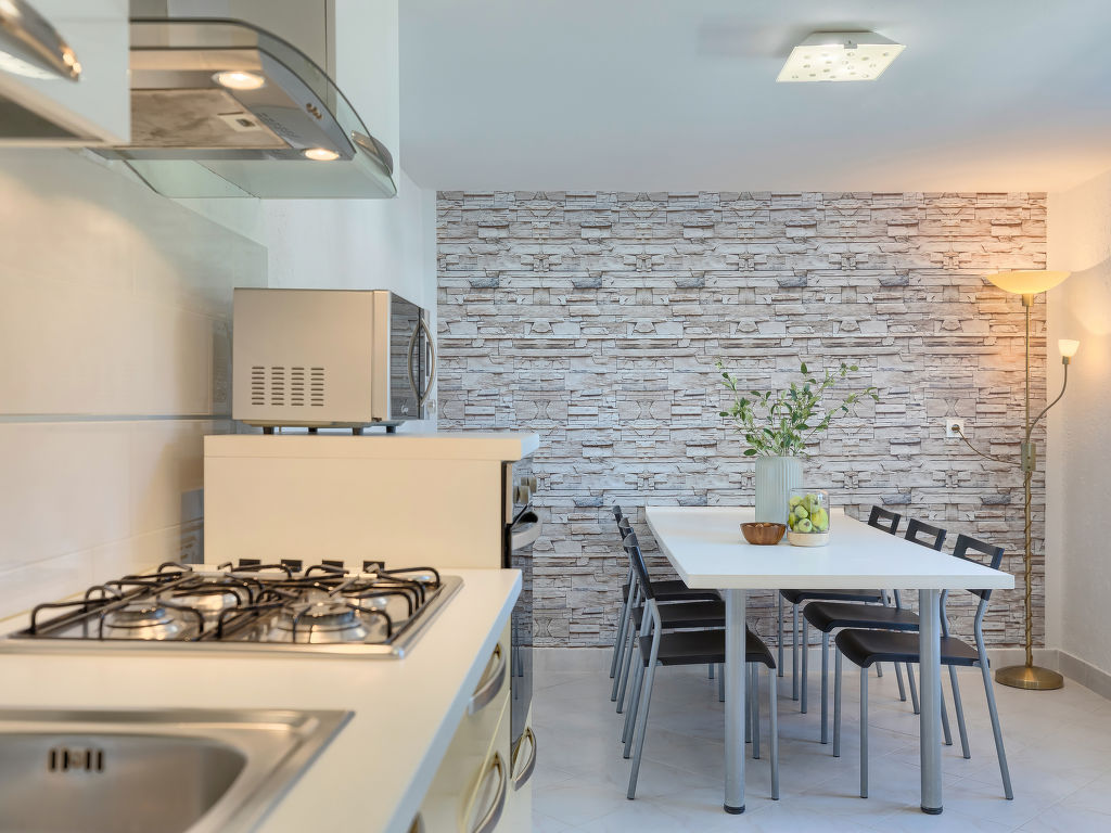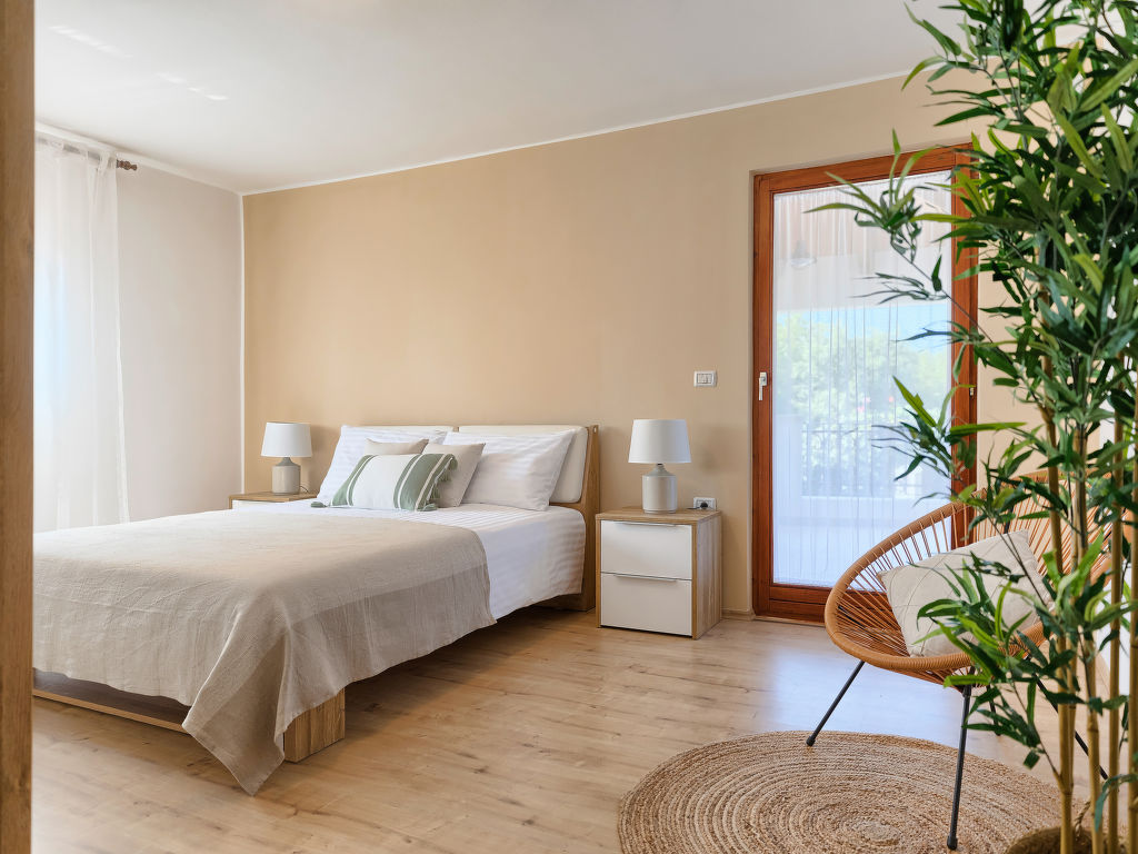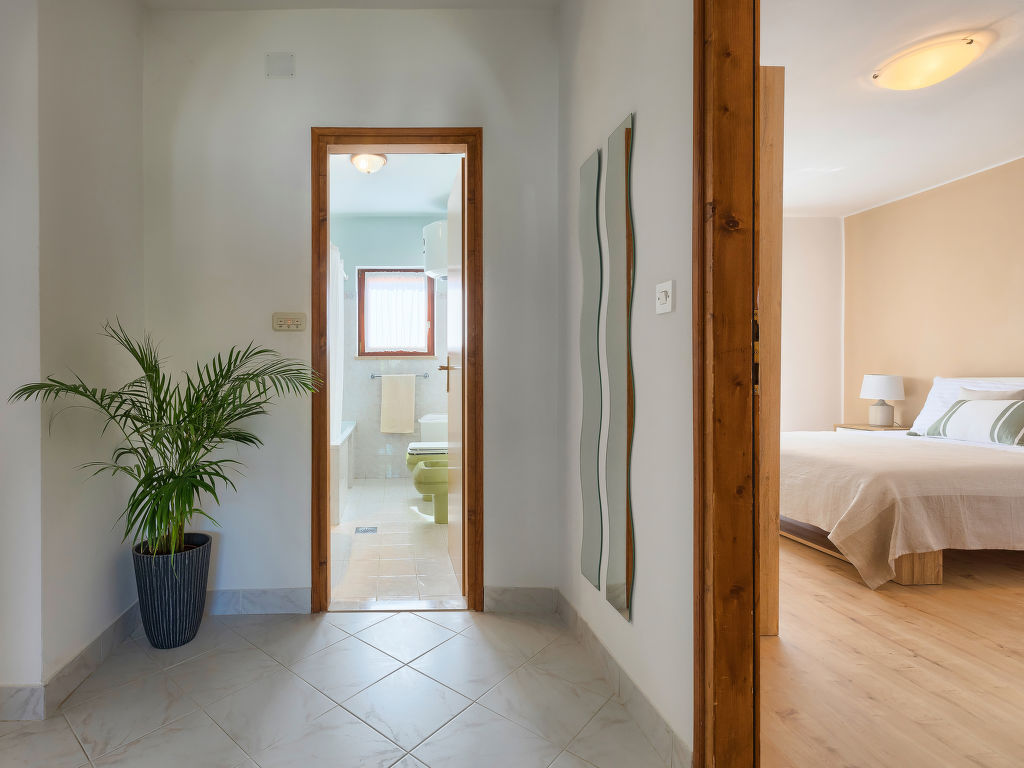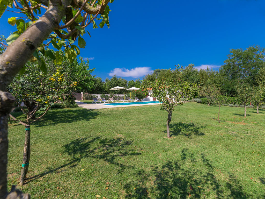 Doppelhaus "Tijan (ROJ411)", auf 2 Stockwerken. Im Weiler Tomišići, 3.5 km vom Zentrum von Žminj, 21 km vom Zentrum von Rovinj, 21 km vom Meer. Zur Alleinbenutzung: Grundstück 800 m2 (eingezäunt) mit Rasen und Bäumen, Schwimmbad eckig (10 x 5 m, 130 cm tief, 14.05.-24.09.). Aussendusche, Tischtennis, Terrasse, Grill (Schaukel). Im Hause: Internetzugang, Klimaanlage, Waschmaschine. Parkplatz (für 3 Autos) auf dem Grundstück. Einkaufsgeschäft 3.5 km, Restaurant 3.5 km, Felsstrand 21 km. Bitte beachten: Flugplatz 35 km vom Haus.