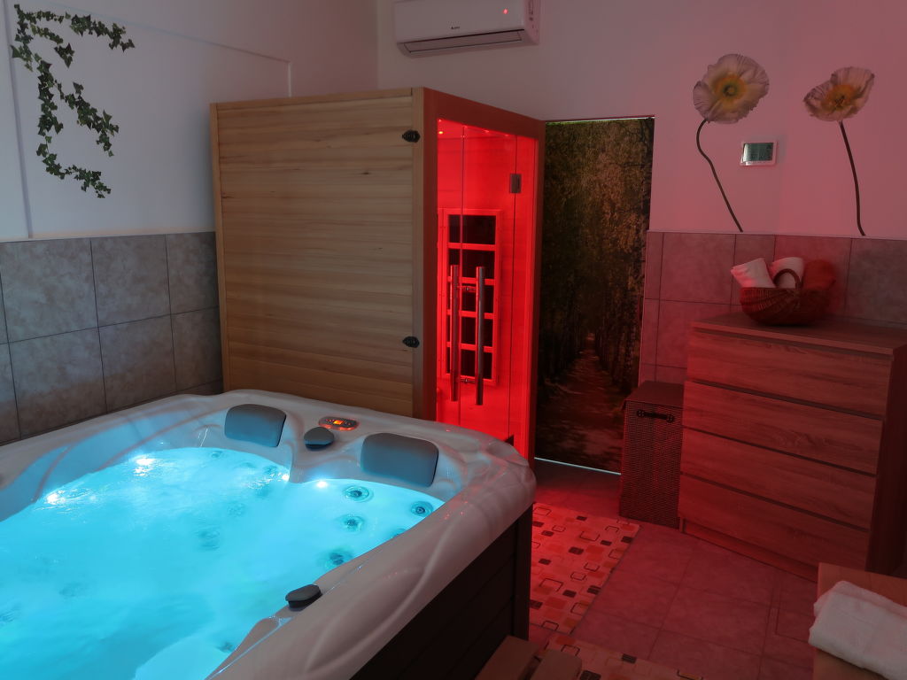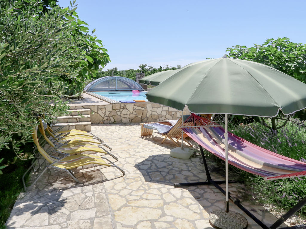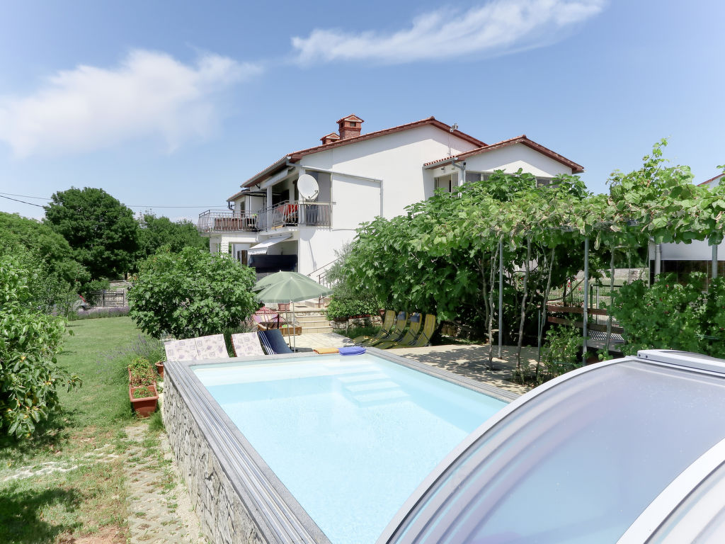 Zweifamilienhaus "Laura". Im Weiler Kapelica, 2 km vom Zentrum von Labin, 7 km vom Meer. Zur Mitbenutzung: Grundstück 1'000 m2 mit Bäumen, Wiese. Zur Alleinbenutzung: Schwimmbad eckig, beheizt (7 x 3 m, 24 m2, 130 cm tief, 04.04.-06.11.) mit Innentreppe und Rollladenabdeckung. WC im Poolbereich, Aussendusche, Terrasse, Gartenmöbel, Grill. Im Hause: Internetzugang, Sauna, Sprudelbad. Parkplatz (für 2 Autos, überdacht) beim Haus auf dem Grundstück. Einkaufsgeschäft 2.5 km, Kieselstrand 7 km, Felsstrand 7 km. Jacht-Hafen 7 km. Bitte beachten: Flugplatz 45 km vom Haus. Zur Alleinbenutzung: Sommerküche (Kochfelder, Backofen, Geschirrspüler, Kühlschrank).