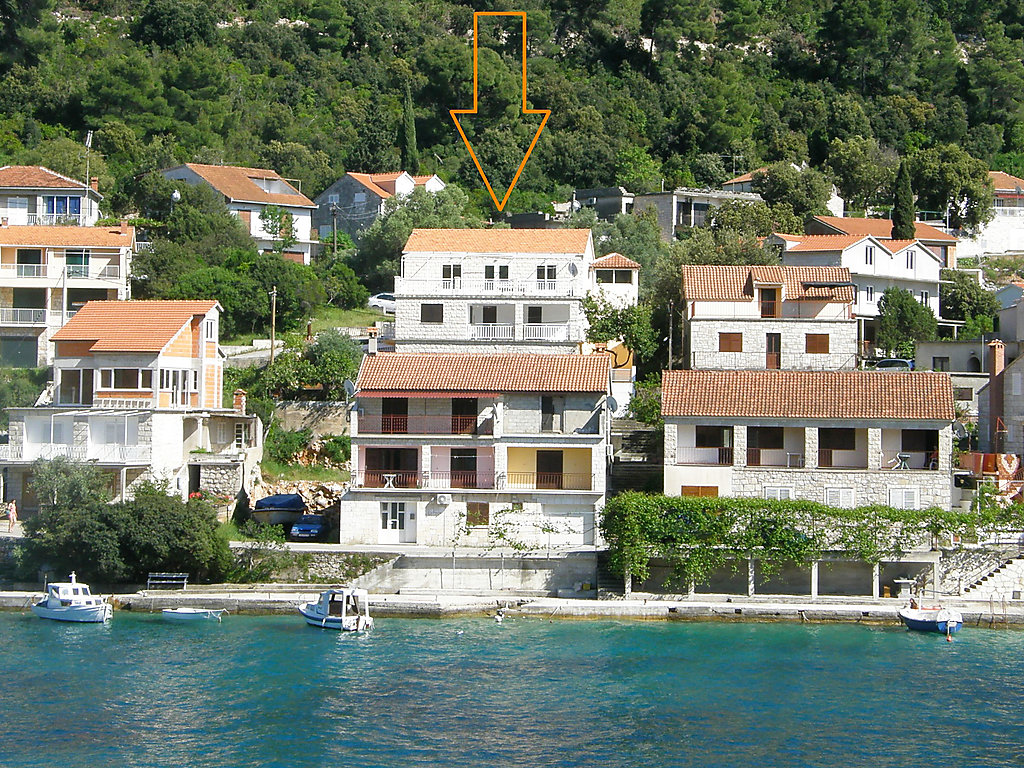 Dreifamilienhaus "Repak". Sonnige Lage, 40 m vom Meer, 90 m vom Strand. Zur Mitbenutzung: Aussendusche, Grill, Parkplatz beim Haus auf dem Grundstück. Einkaufsgeschäft 100 m, Restaurant 400 m, Kieselstrand 90 m.