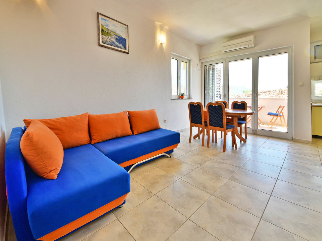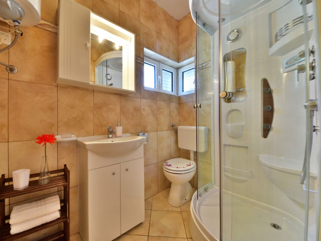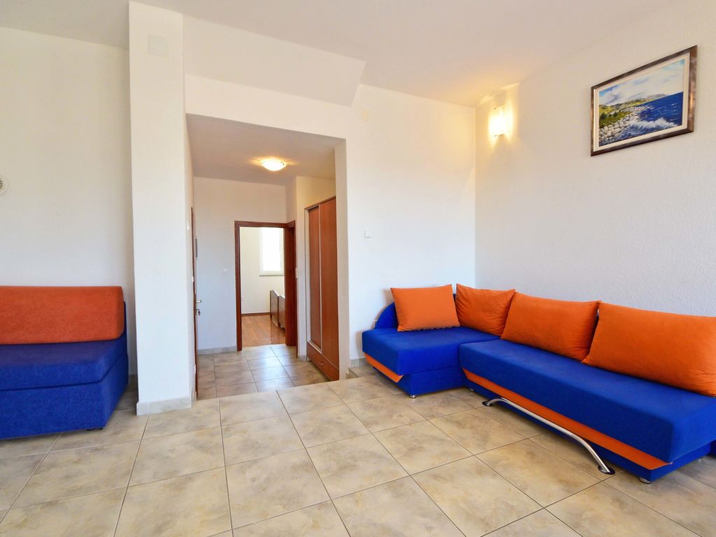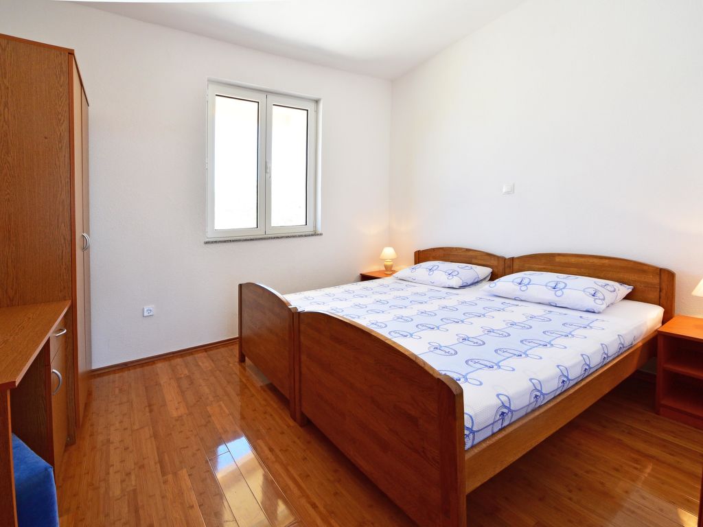 2-Zimmer-Wohnung 40 m2, im erhöhten Erdgeschoss, Südostlage. Wohn-/Esszimmer 20 m2 mit 1 Doppeldiwanbett (140 cm, Länge 200 cm), Sat-TV (Flachbildschirm), Klimaanlage. Ausgang zur Terrasse. 1 Zimmer mit 2 Betten (90 cm, Länge 200 cm). Offene Küche (4 Kochplatten, Backofen). Dusche/WC, Hydromassage-Dusche. Klimaanlage (extra). Terrasse 6 m2, überdacht. Terrassenmöbel. Zur Verfügung: Internet (Wireless LAN, gratis). Parkplatz (1 Auto).