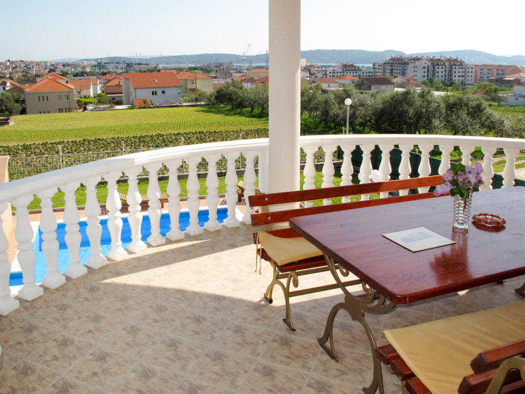 Dreifamilienhaus "Villa Saba". 800 m vom Zentrum von Trogir, 900 m vom Meer, 2.5 km vom Strand. Zur Mitbenutzung: Grundstück 700 m2 (eingezäunt) mit Rasen und Bäumen, Schwimmbad (6 x 4 m, 150 cm tief, saisonale Verfügbarkeit: 03.Apr.-06.Nov.) mit Innentreppe. Aussendusche, Terrasse. Im Hause: Internetzugang. Parkplatz beim Haus auf dem Grundstück. Supermarkt 800 m, Felsstrand 2.5 km. Keine Vermietung an Jugendgruppen.