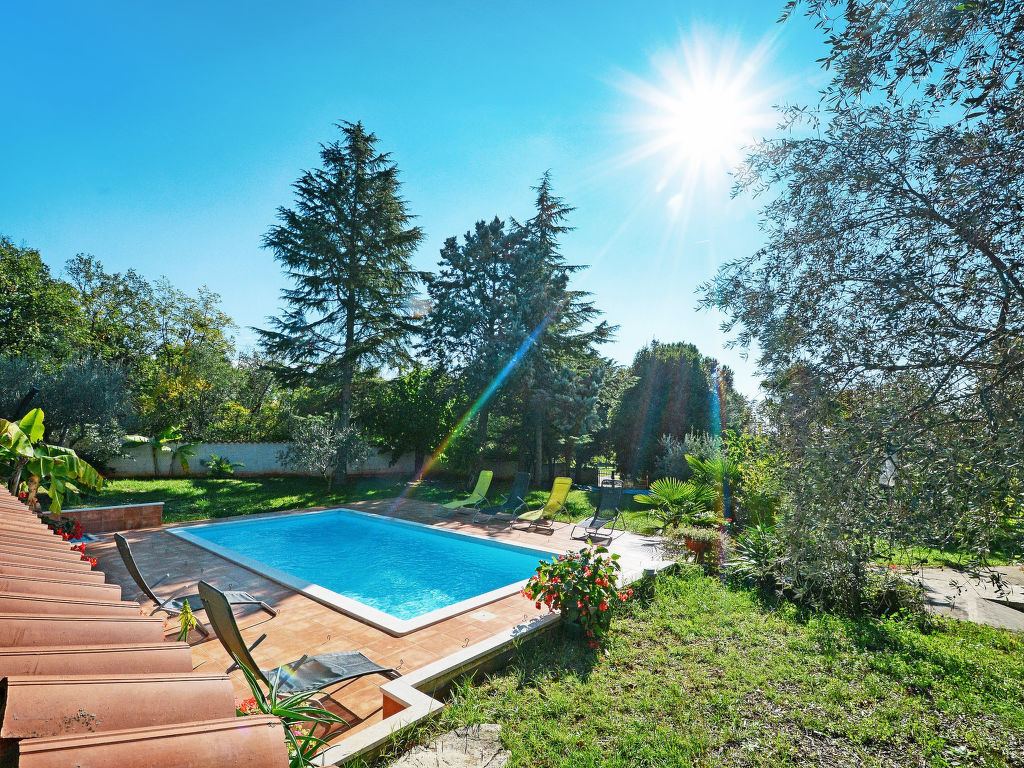 Mehrfamilienhaus "Albina". Im Weiler Valica, 6 km vom Zentrum von Umag, 1.2 km vom Meer, 1.2 km vom Strand, im Grünen. Zur Mitbenutzung: Grundstück 4'500 m2, Garten mit Rasen und Bäumen, Schwimmbad eckig (7 x 3 m, 23 m2, 120 cm tief, saisonale Verfügbarkeit: 01.Mai.-25.Sep.). Aussendusche, Grill (Schaukel). Im Hause: Internetzugang, Waschmaschine (zur Mitbenutzung, extra). Parkplatz auf dem Grundstück. Einkaufsgeschäft 1.2 km, Restaurant 150 m, Kieselstrand 1.2 km, Felsstrand 1.2 km.