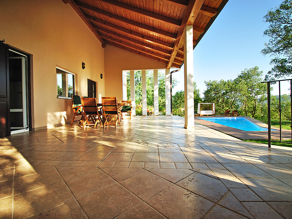 Moderne, schöne Villa "Vesna", auf 2 Stockwerken. 2.5 km vom Zentrum von Buzet, 35 km vom Zentrum von Novigrad, ausserhalb des Ortes, ruhige Lage auf einem Hügel, 35 km vom Meer, im Grünen. Zur Alleinbenutzung: Grundstück 3'000 m2 (eingezäunt), Garten mit Rasen und Blumen, Schwimmbad (40 m2, 140 cm tief, 01.05.-18.09.) mit Innentreppe. Aussendusche. Im Hause: Internetzugang, Waschmaschine, Wäschetrockner. Parkplatz beim Haus auf dem Grundstück. Einkaufsgeschäft 2.5 km, Restaurant 2.5 km, Kieselstrand 35 km. Tennis 2.5 km, Wanderwege ab Haus, Radweg 50 m. Nahe gelegene Sehenswürdigkeiten: park prirode Učka 25 km.